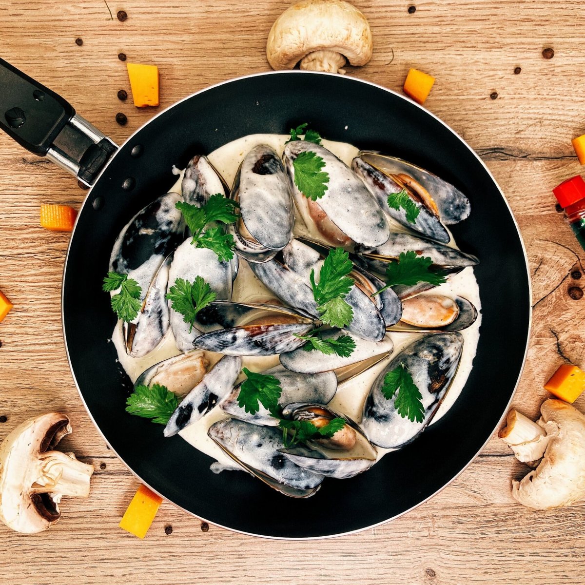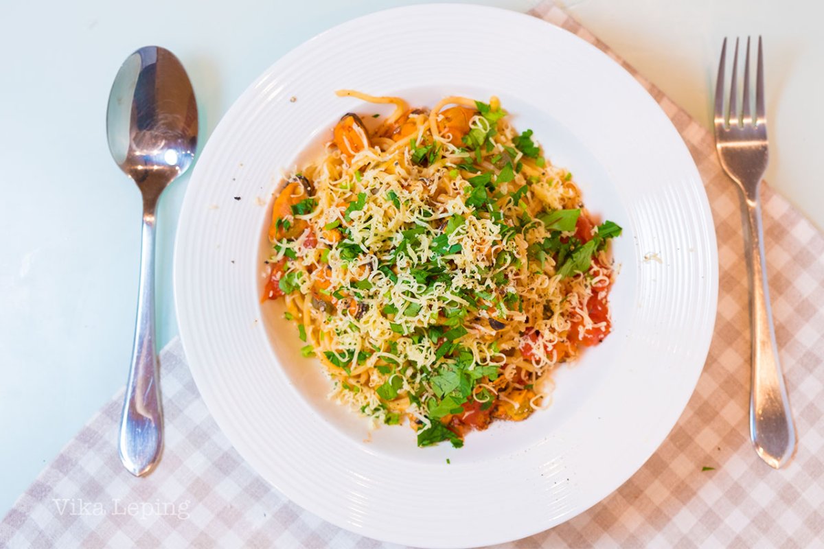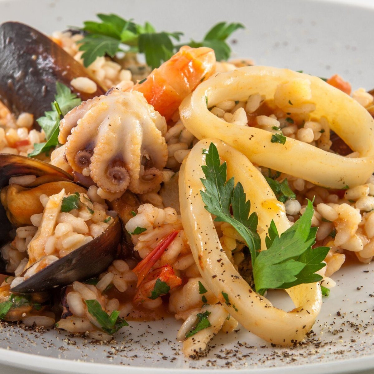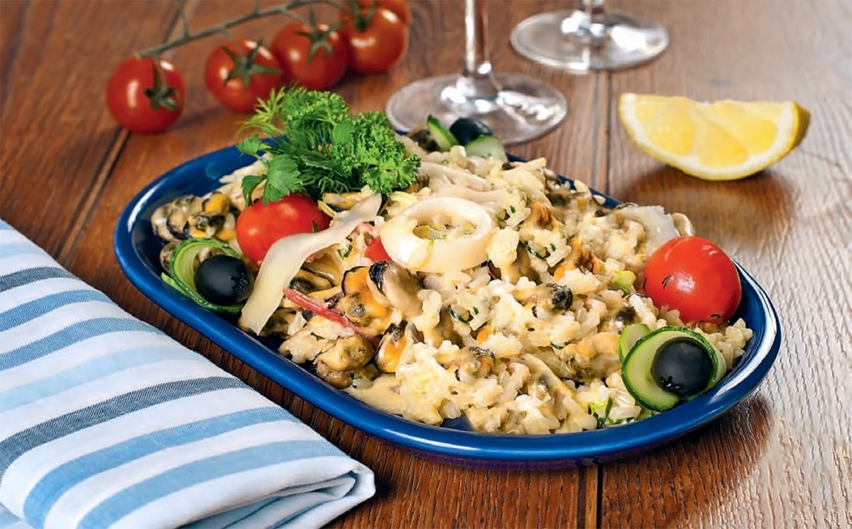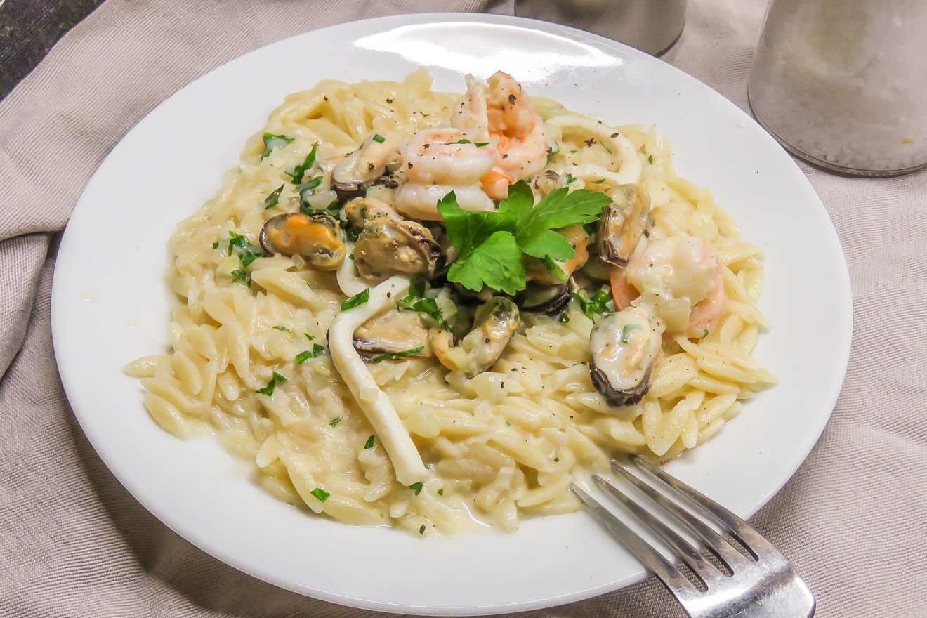 Феттуччине с креветками, кальмарами, мидиями и вонголе