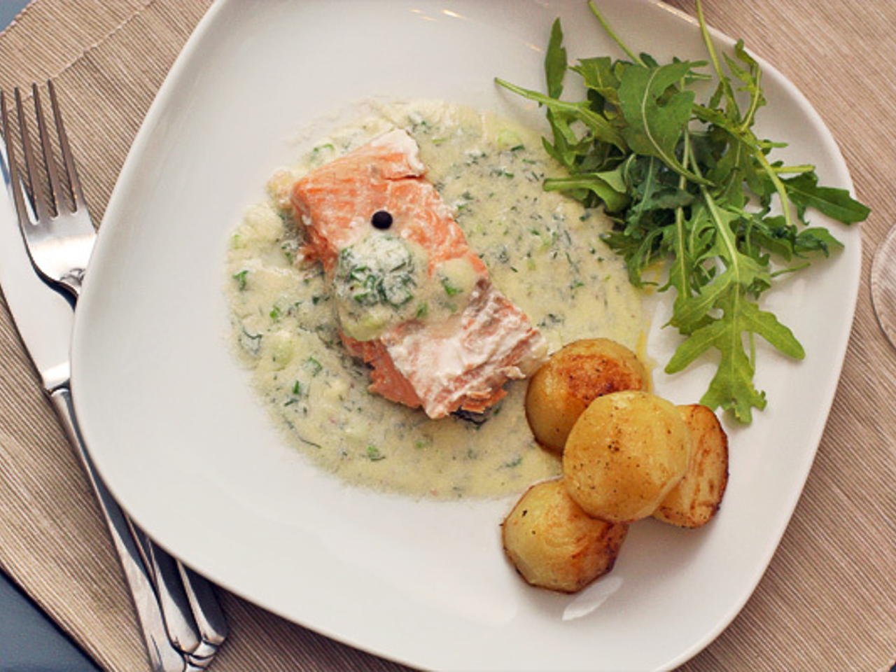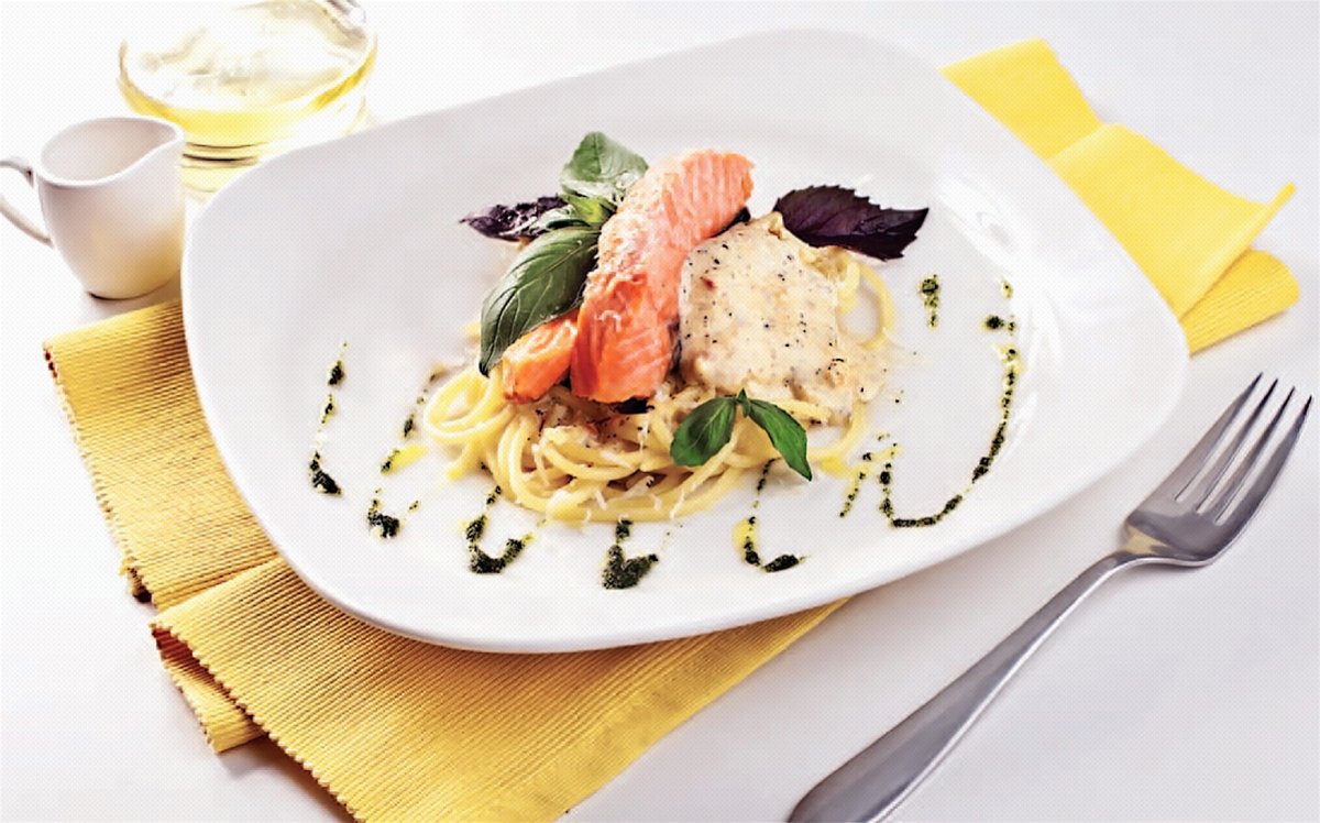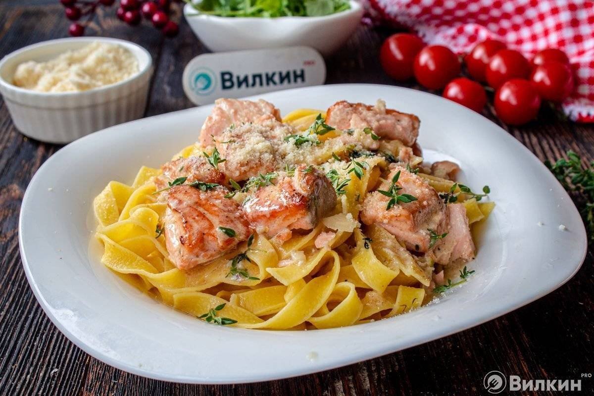 Тальятелле с лососем и шпинатом в сливочном соусе