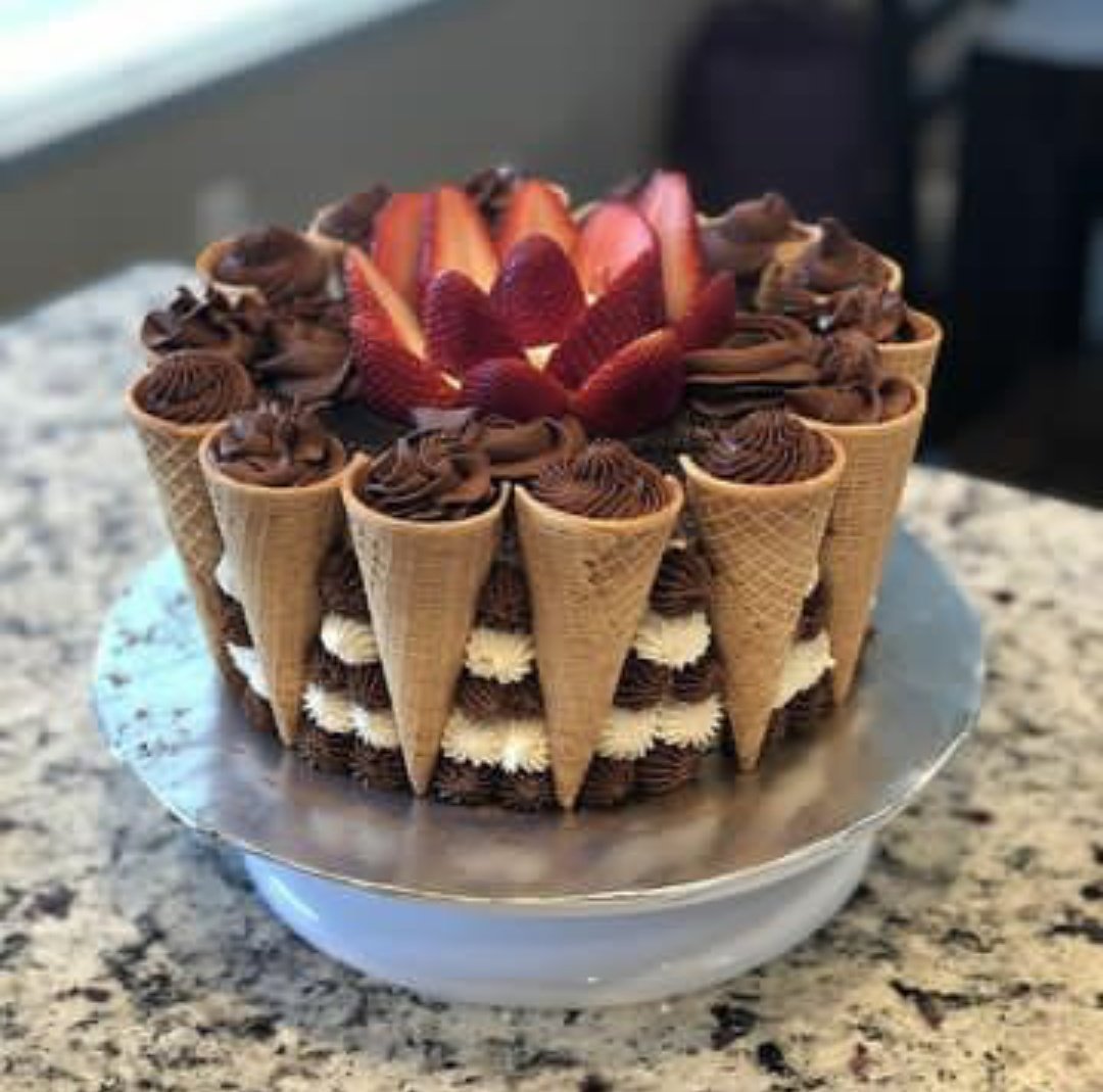 Украшение торта рожками вафельными