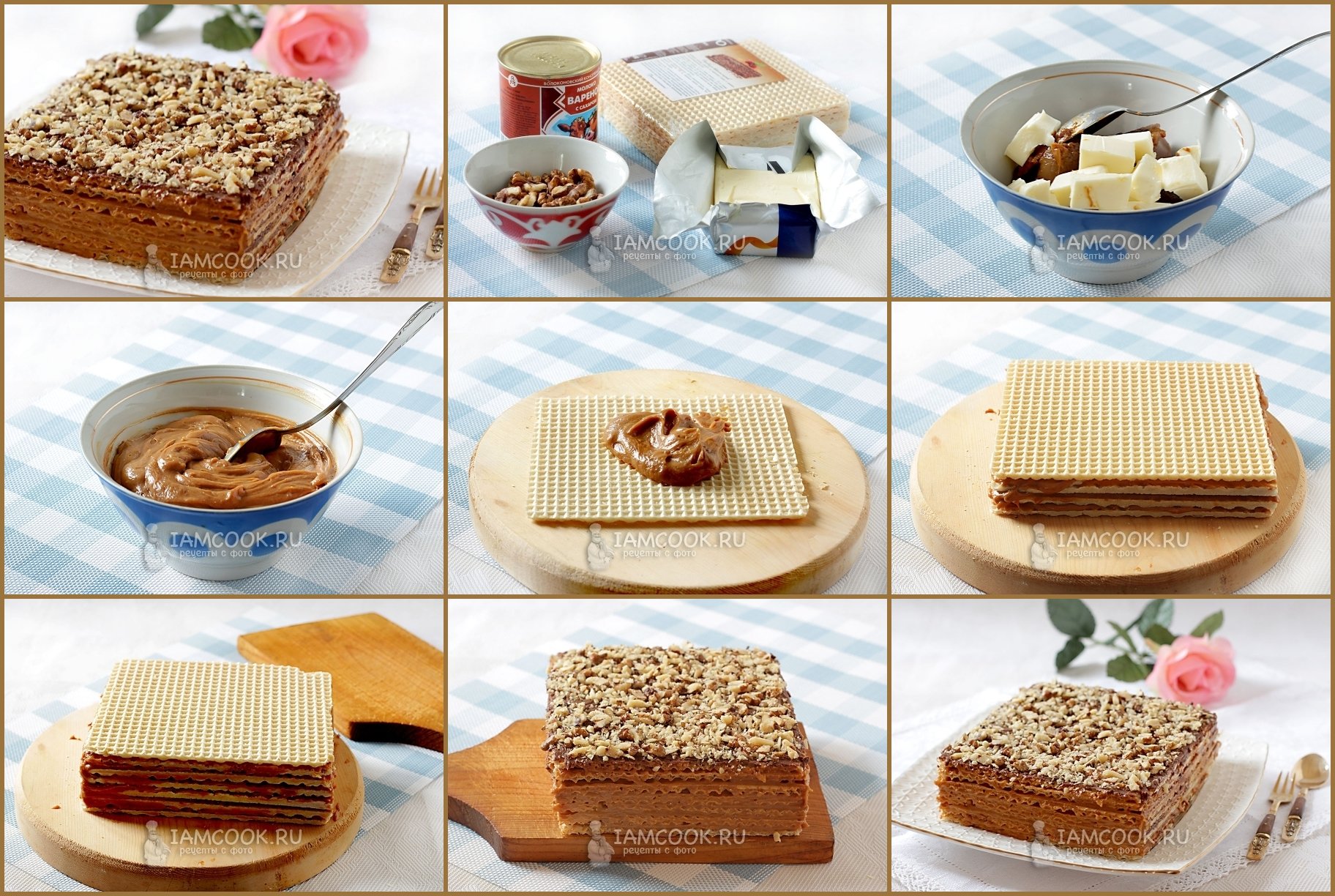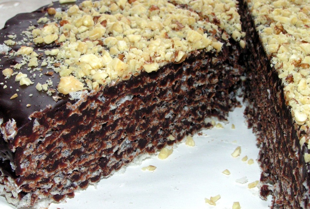 Вафельный торт с грецким орехом