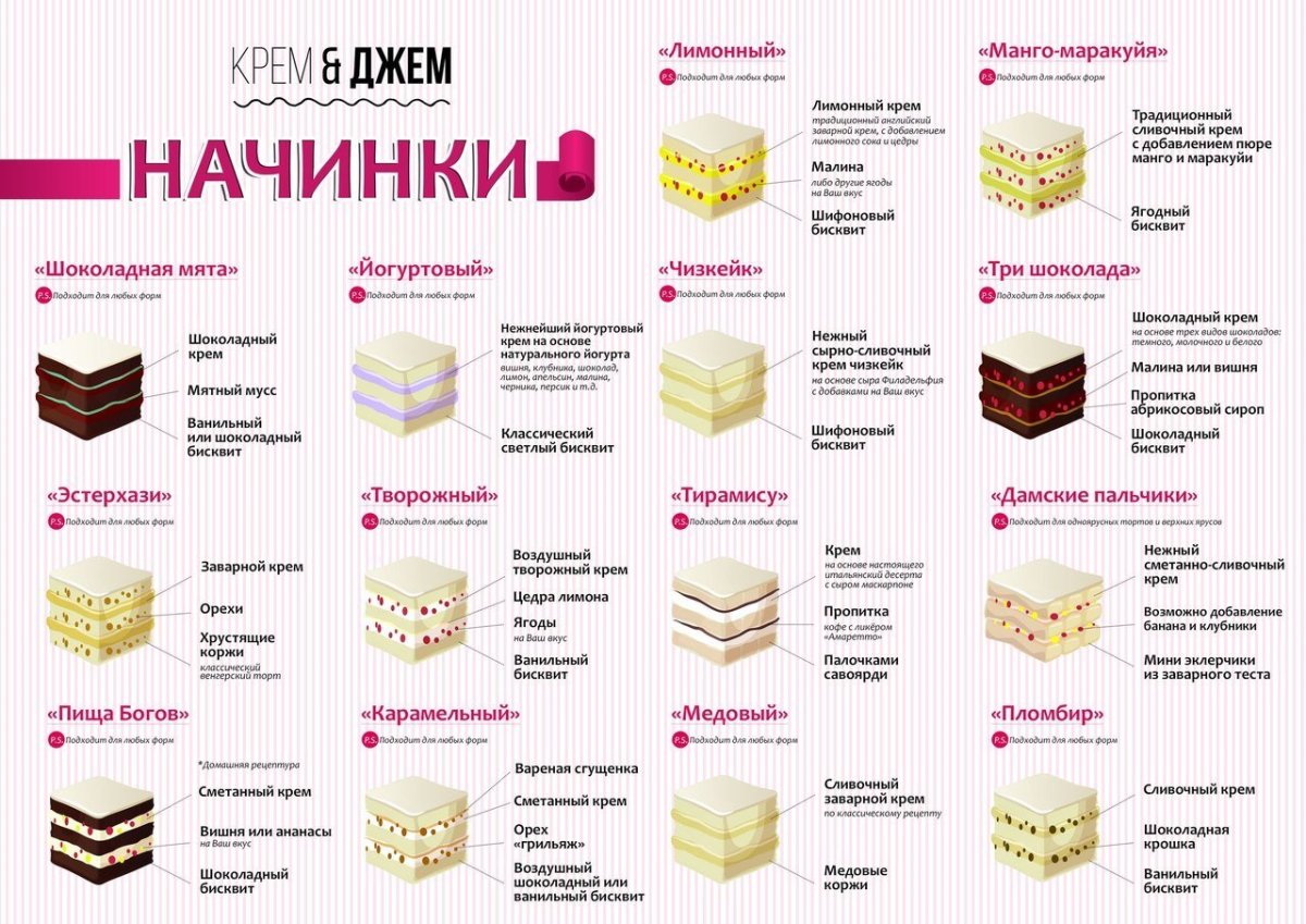 Виды начинок для тортов