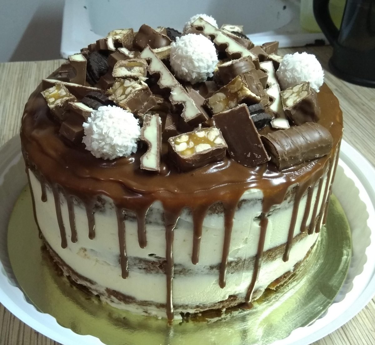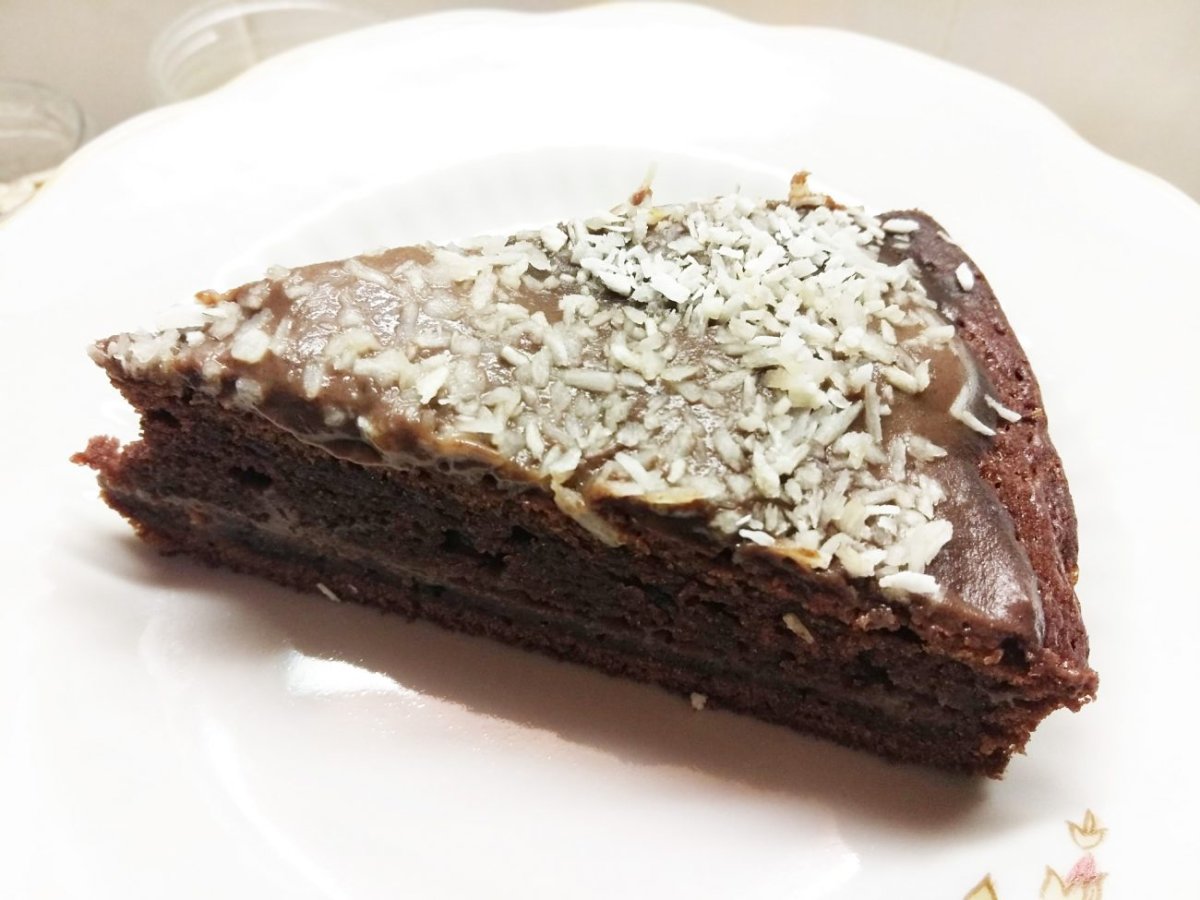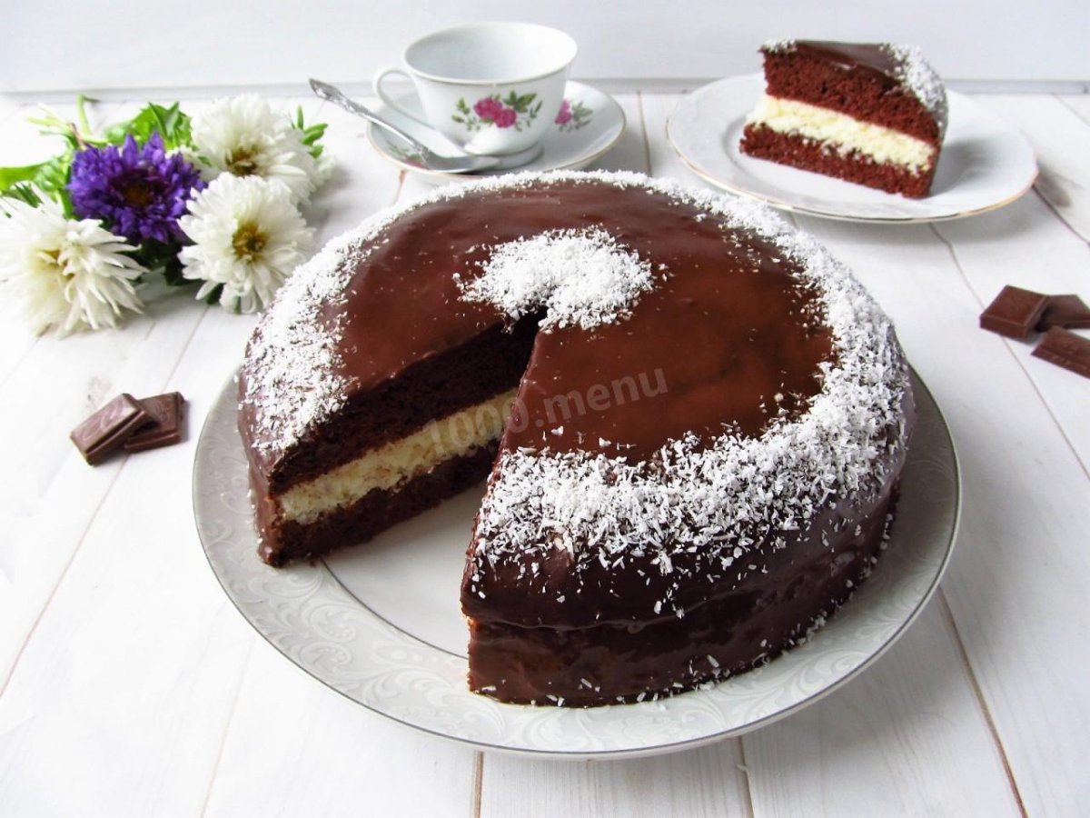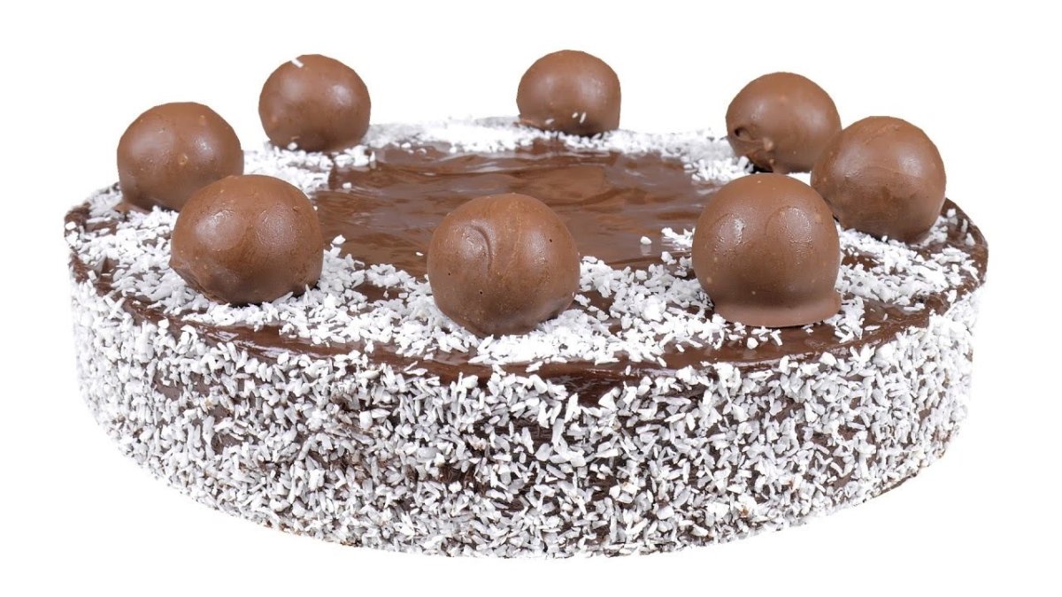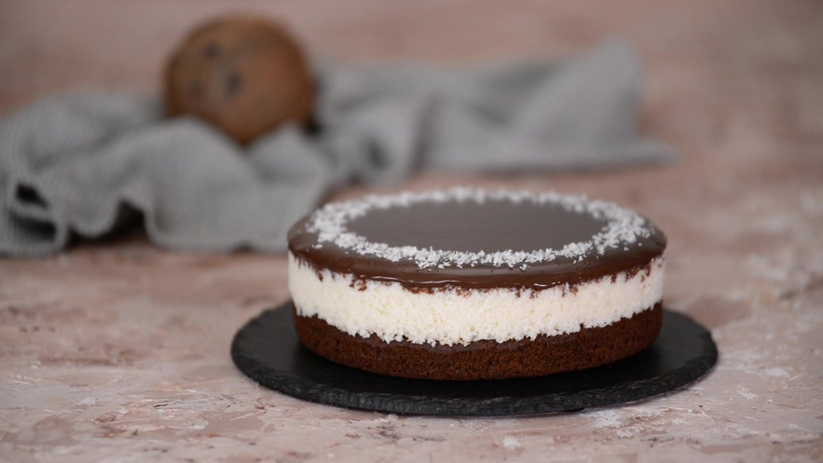 Украшение торта цветной кокосовой стружкой и шоколадом