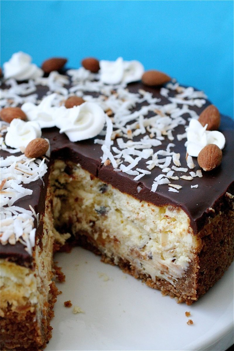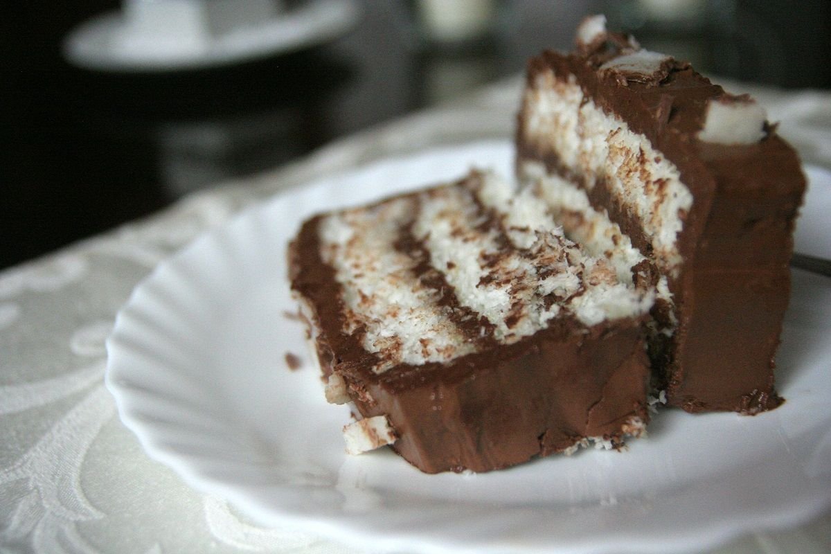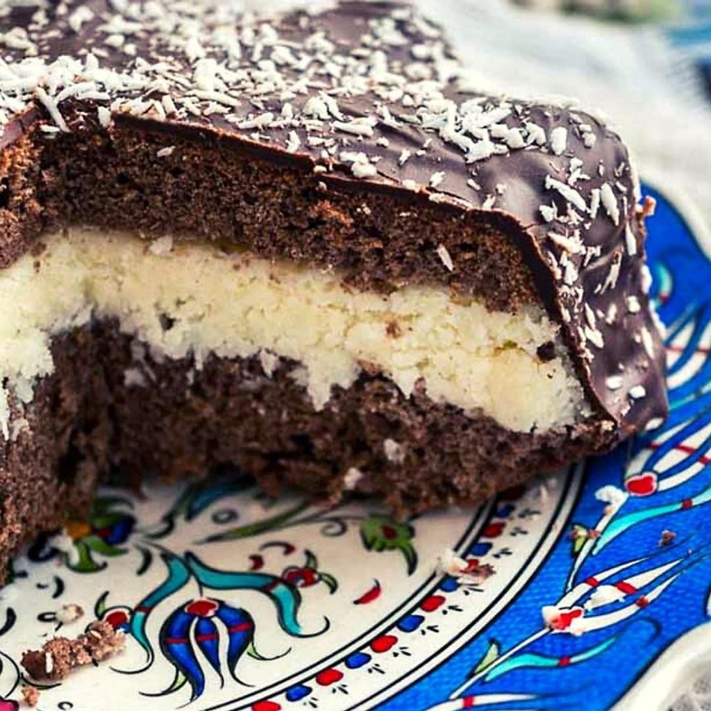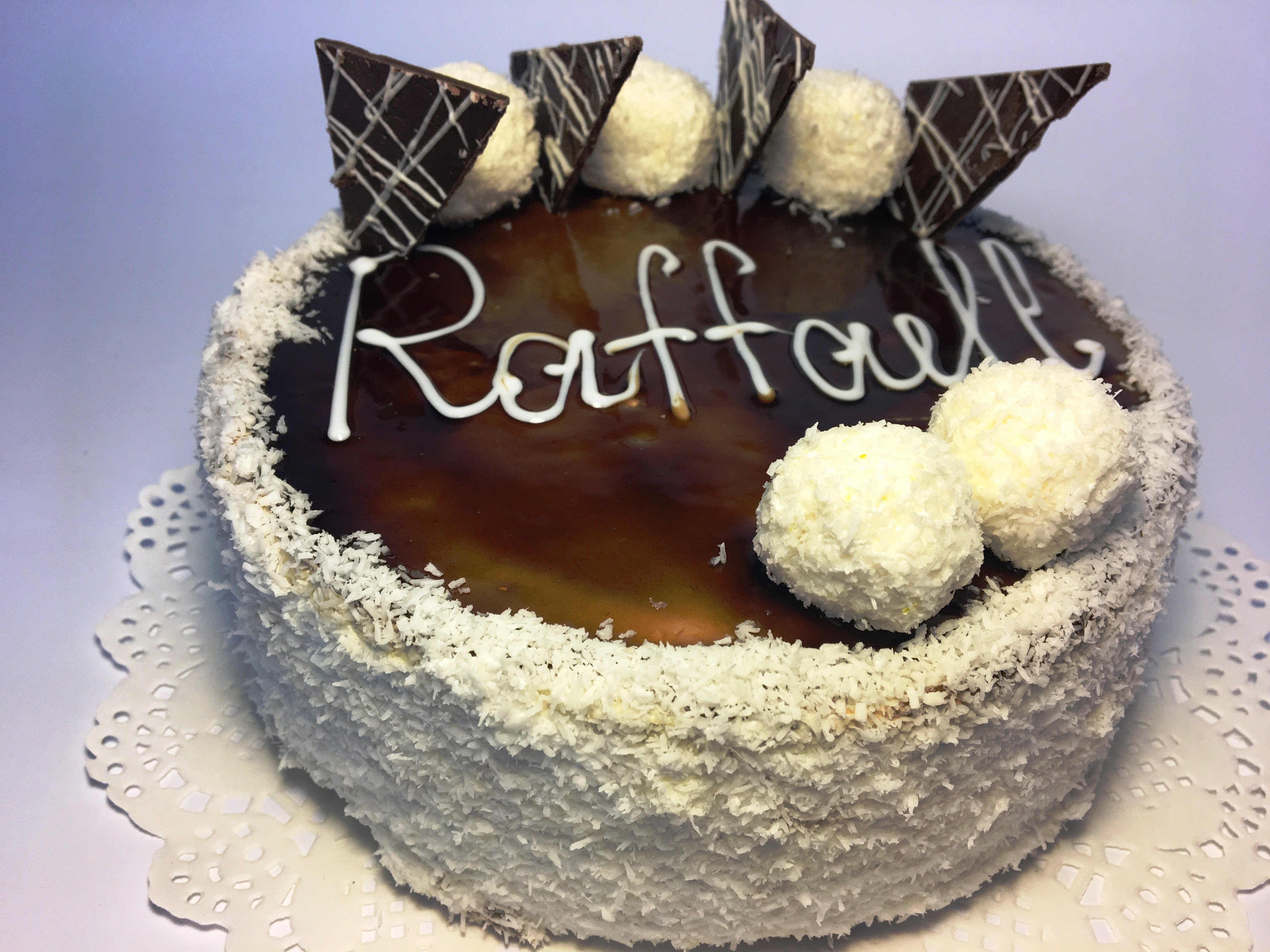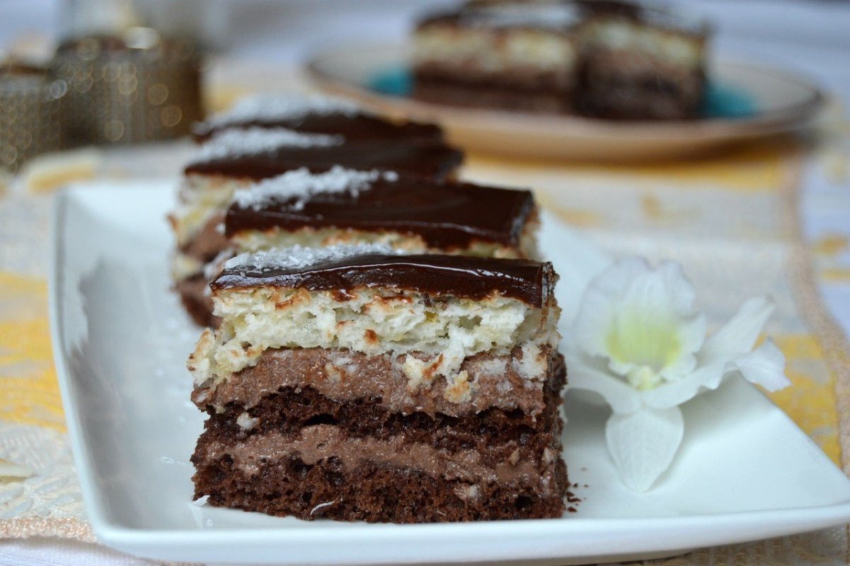 Украшение торта цветной кокосовой стружкой и шоколадом