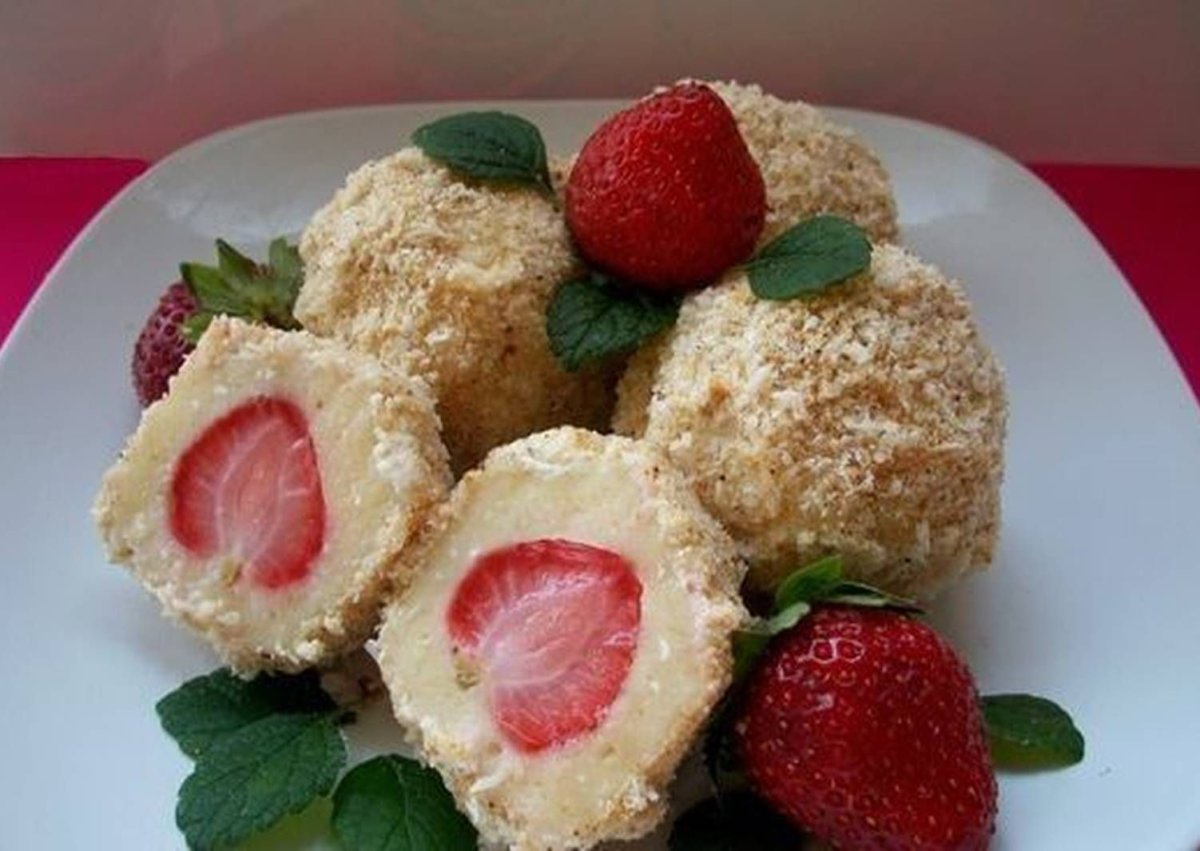 Творожные шарики с клубникой