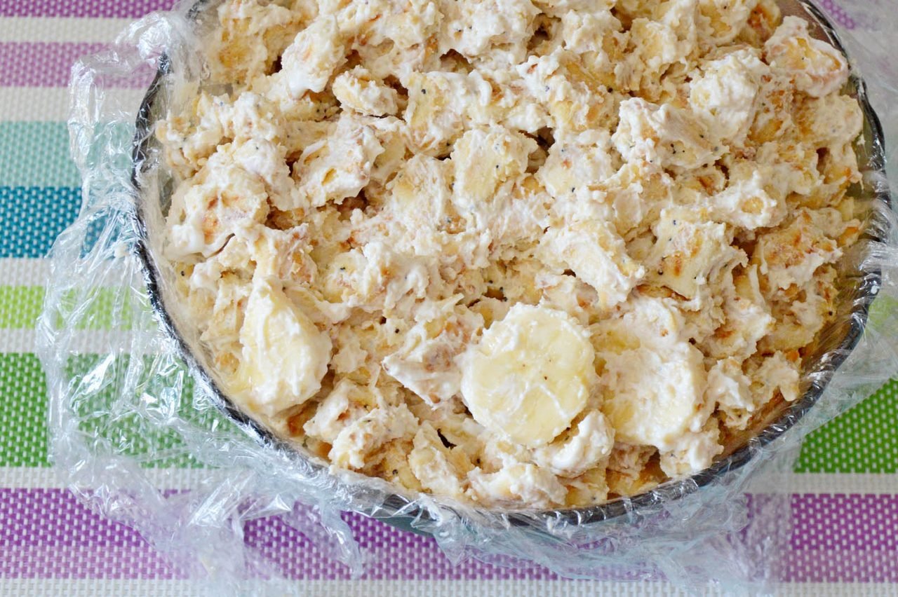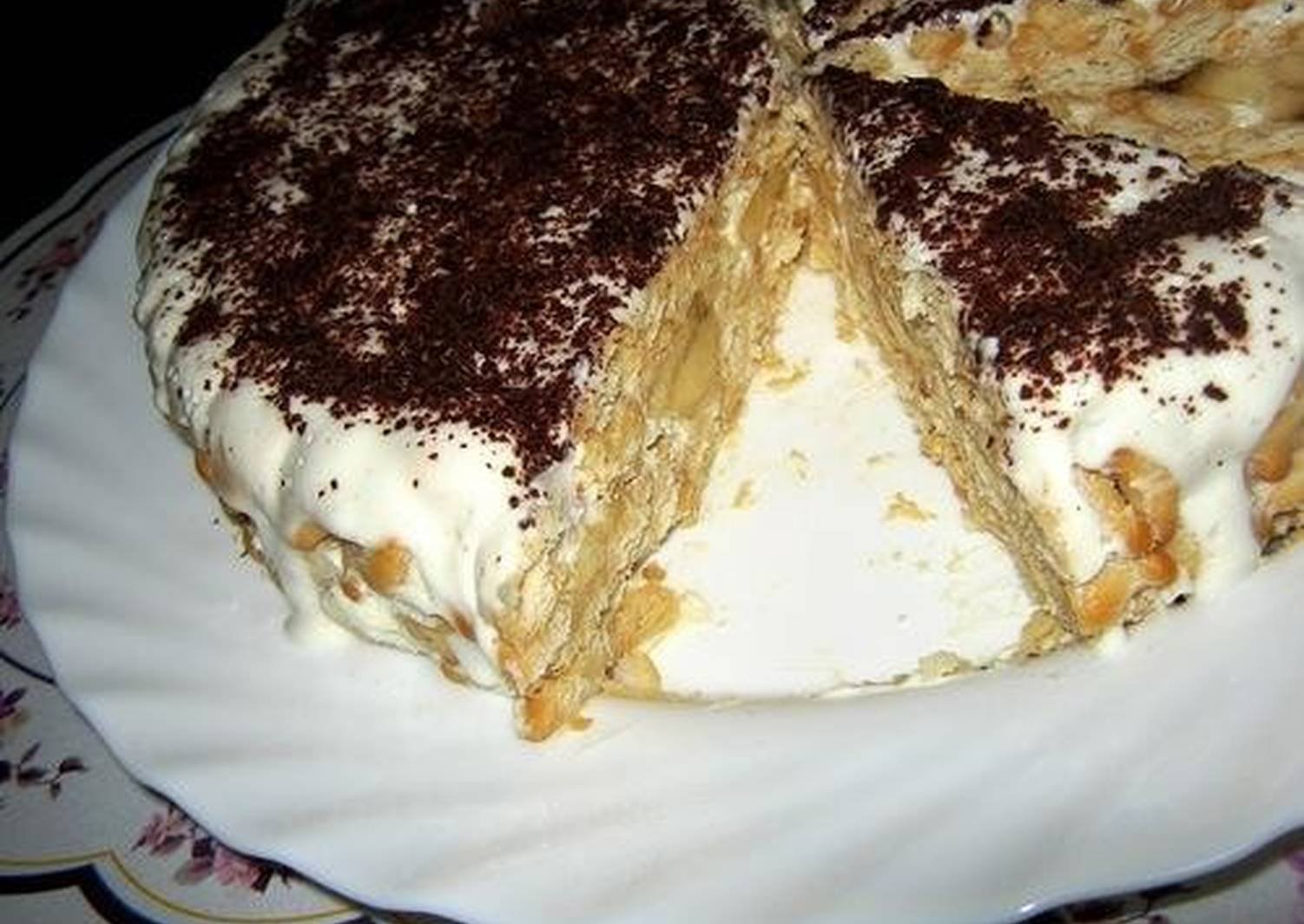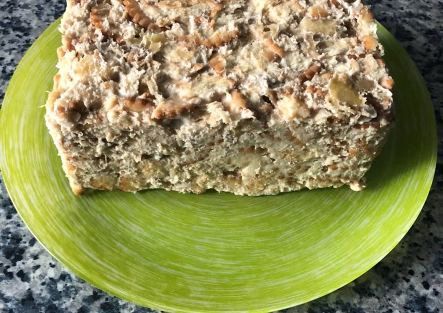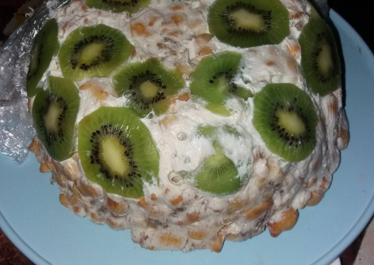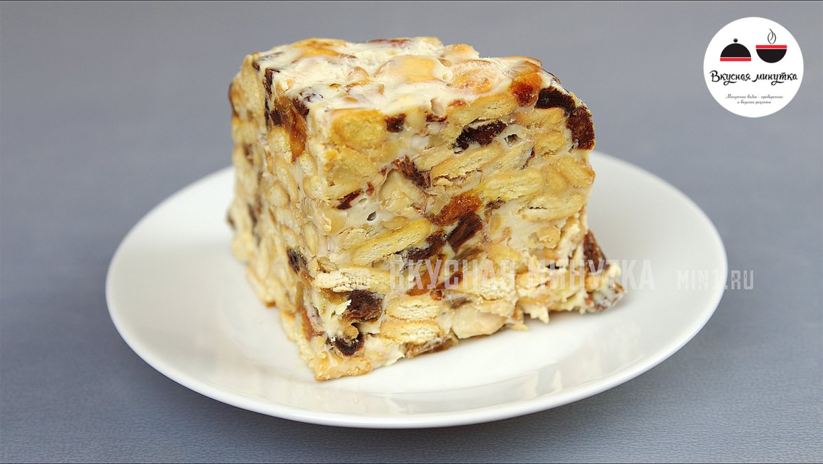 Торт с крекерами рыбки без выпечки со сметаной и бананами