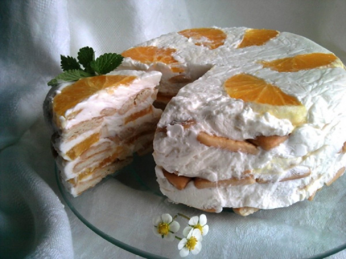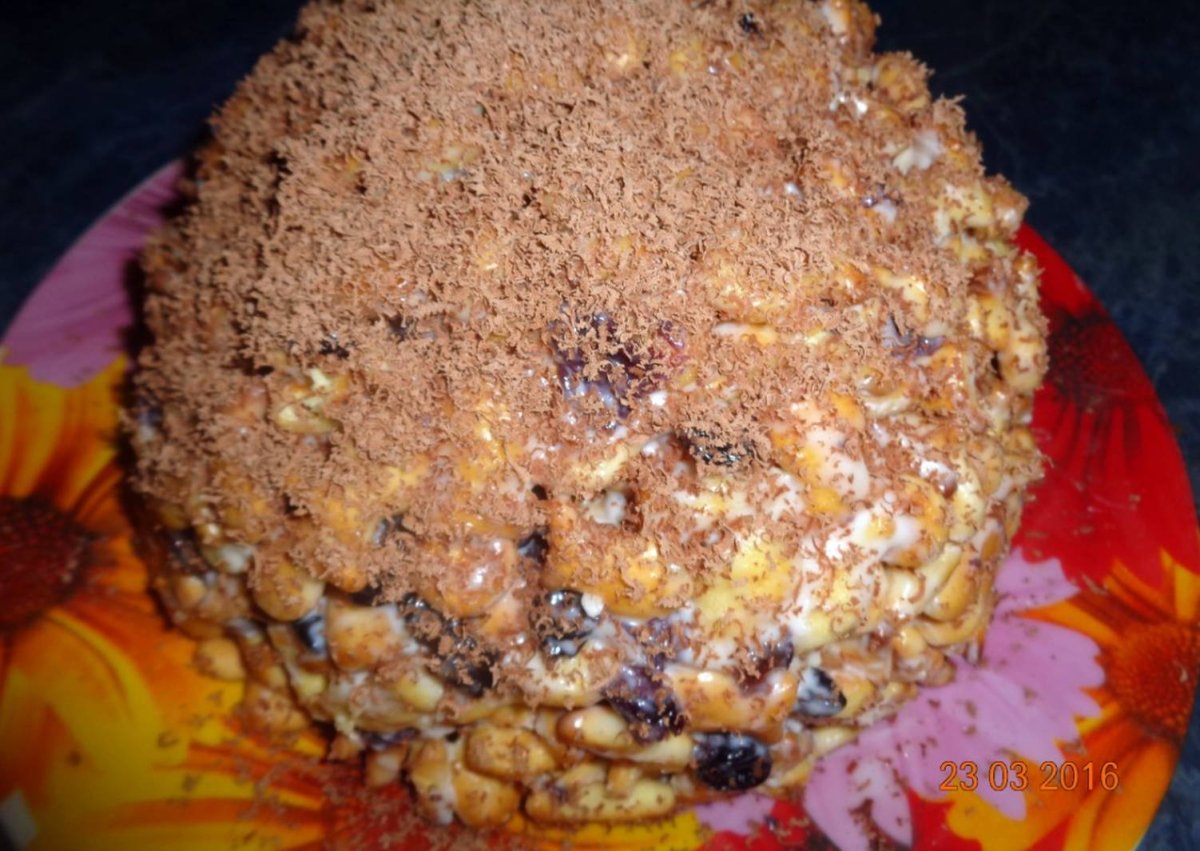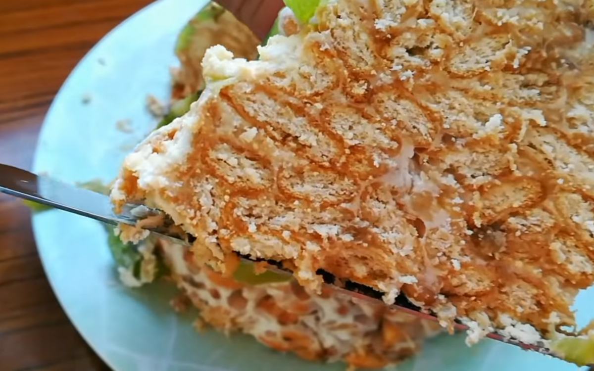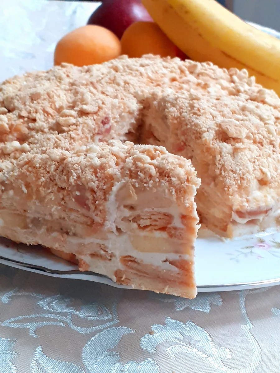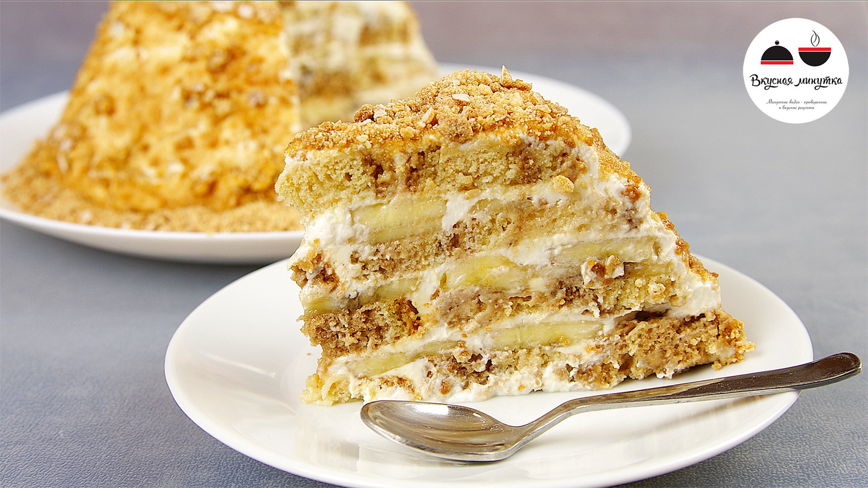 Торт с крекерами рыбки без выпечки со сметаной и бананами