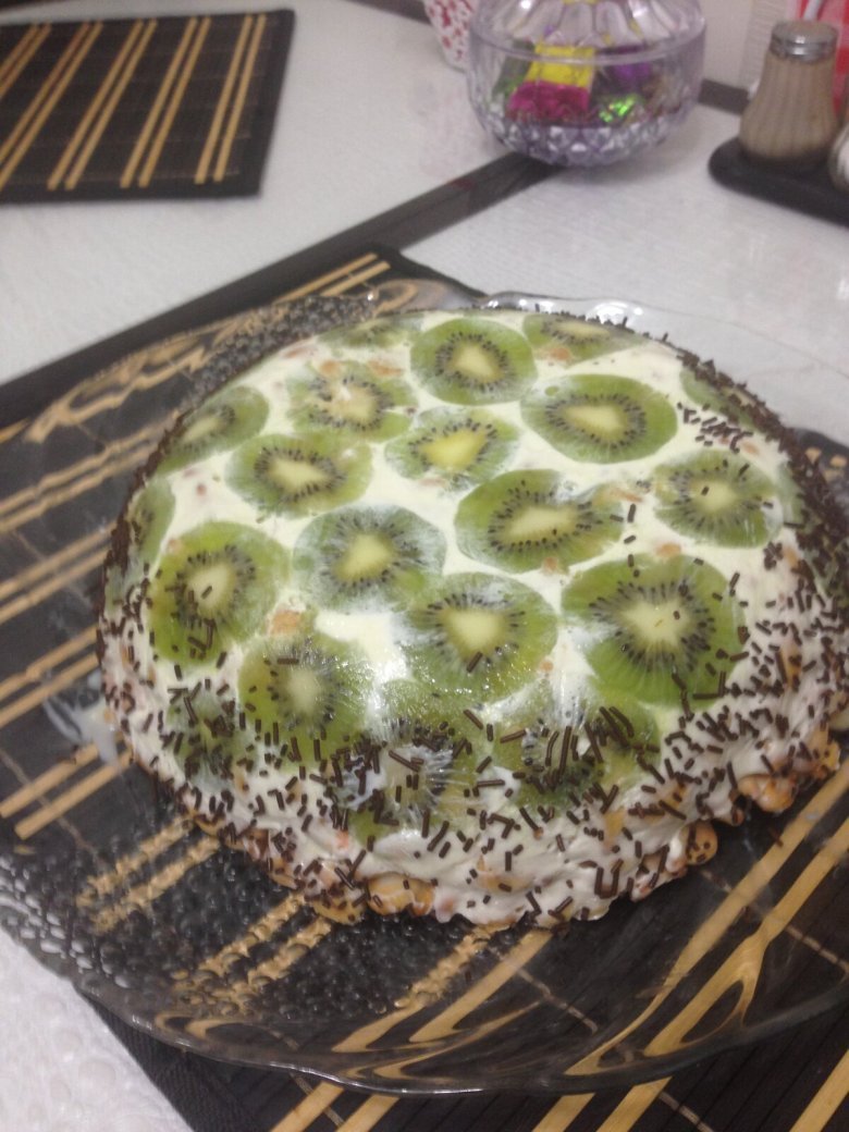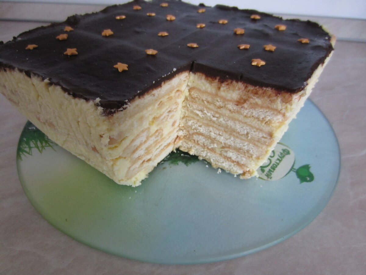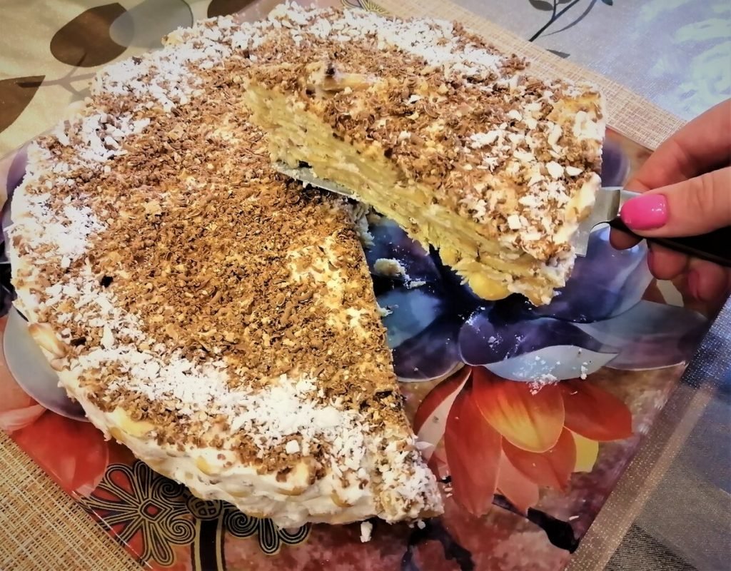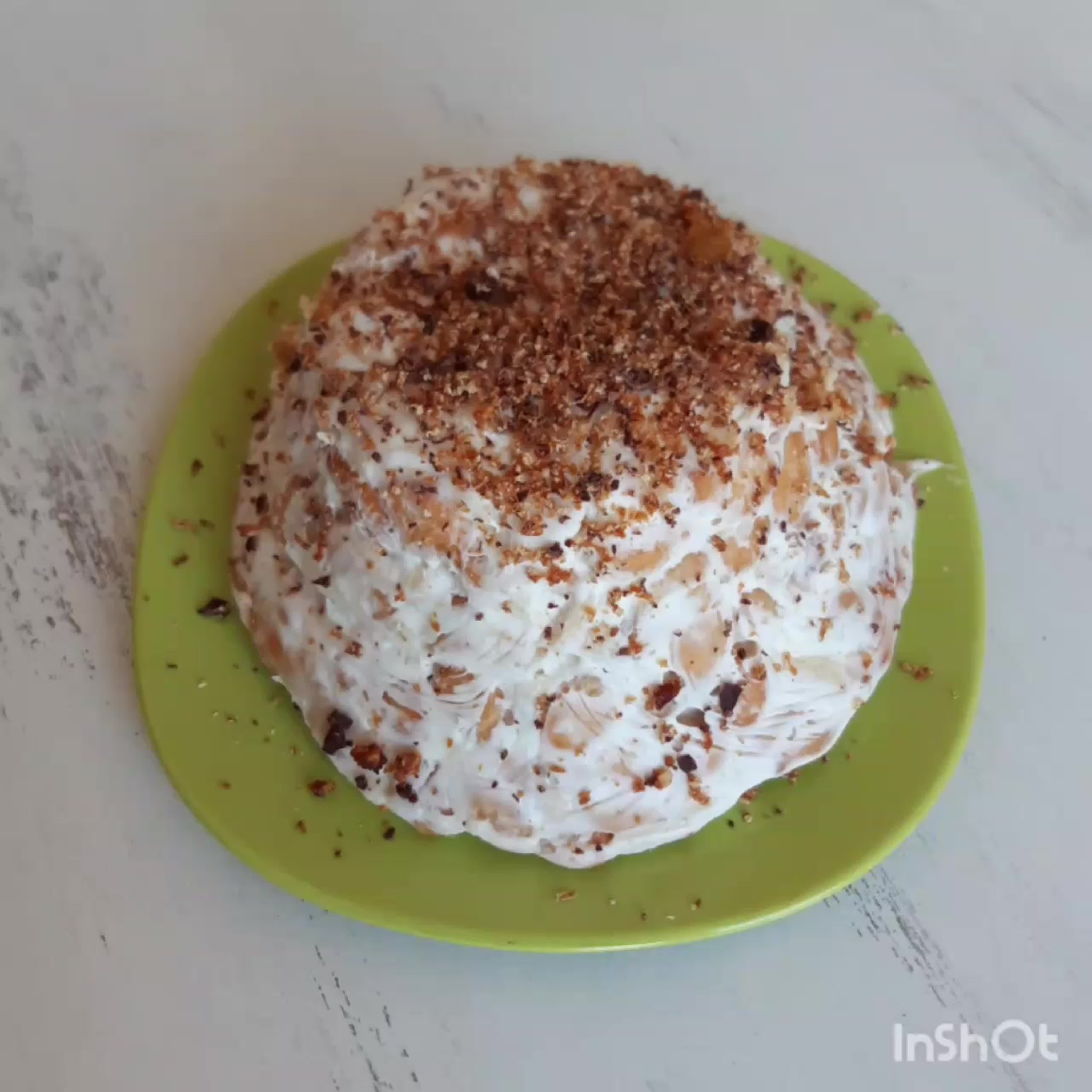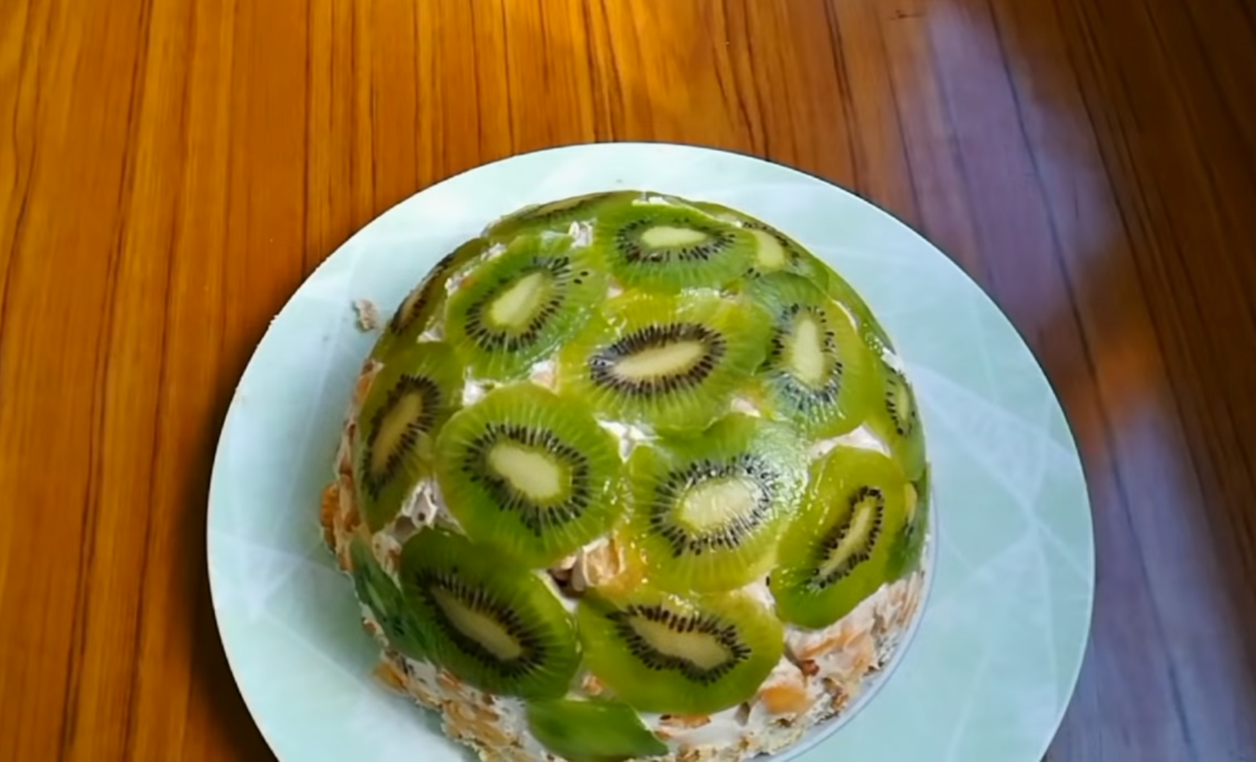 Торт с крекерами рыбки без выпечки со сметаной и бананами