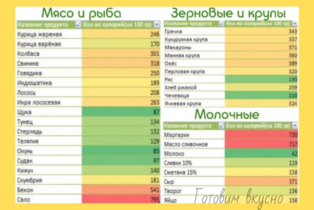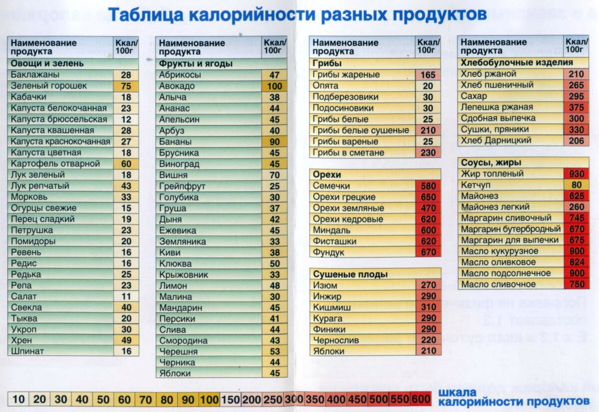 Сколько продукта в 100 ккал