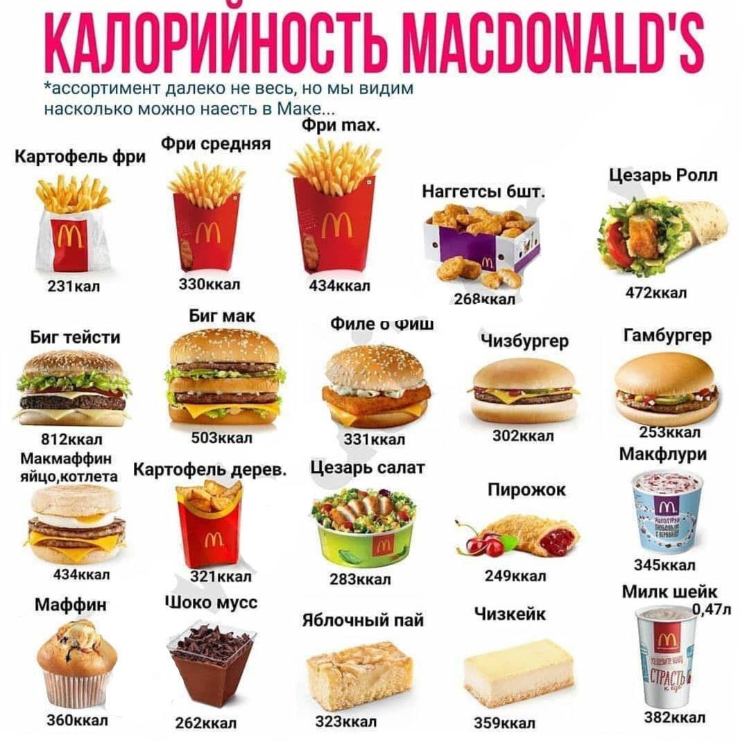 Калорийность макдональдс меню