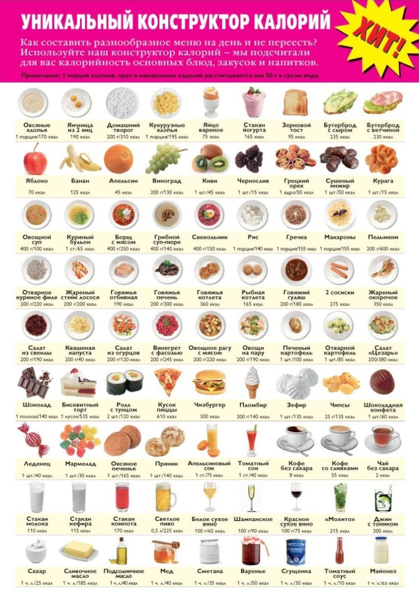Таблица калорий продуктов для набора веса