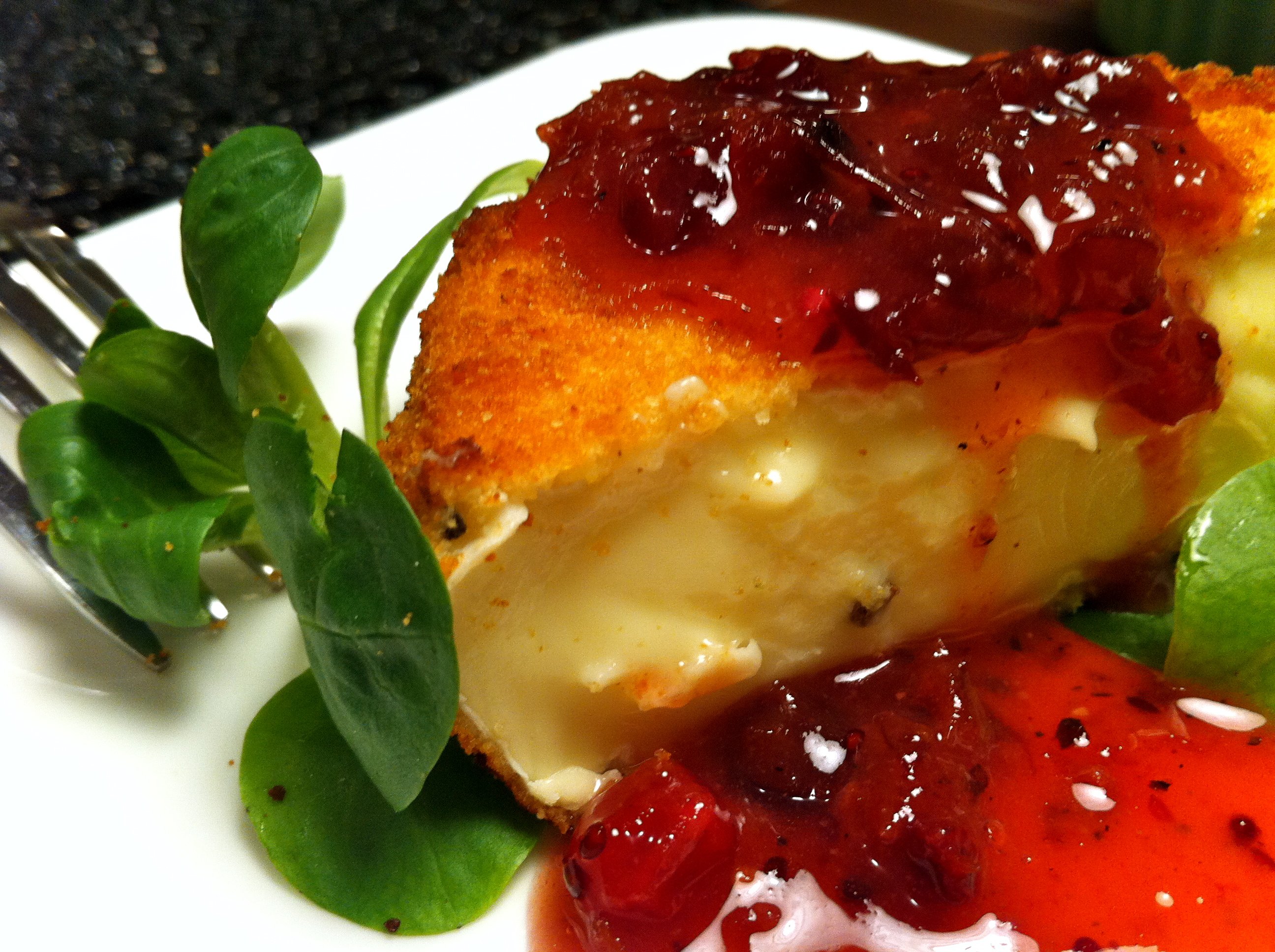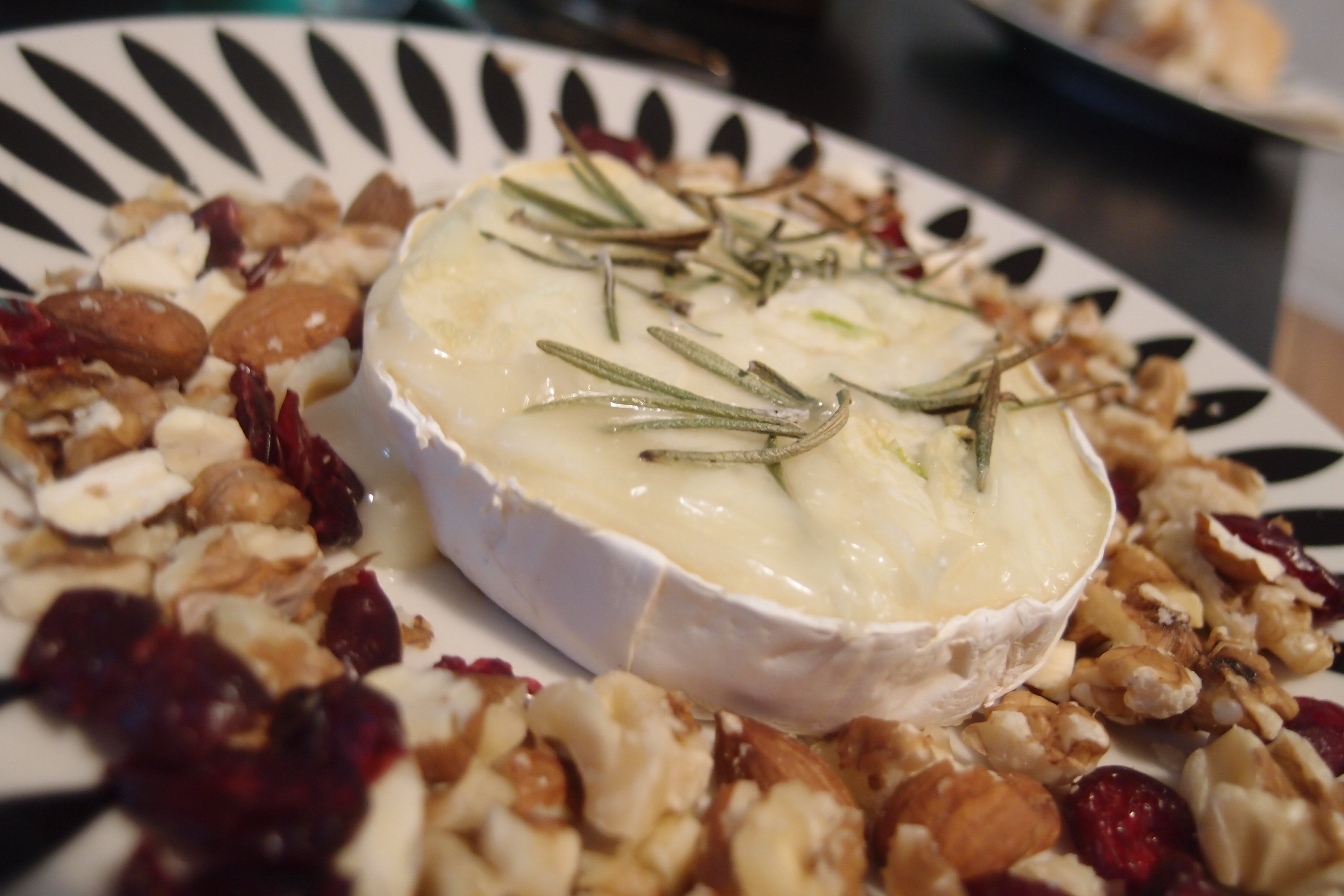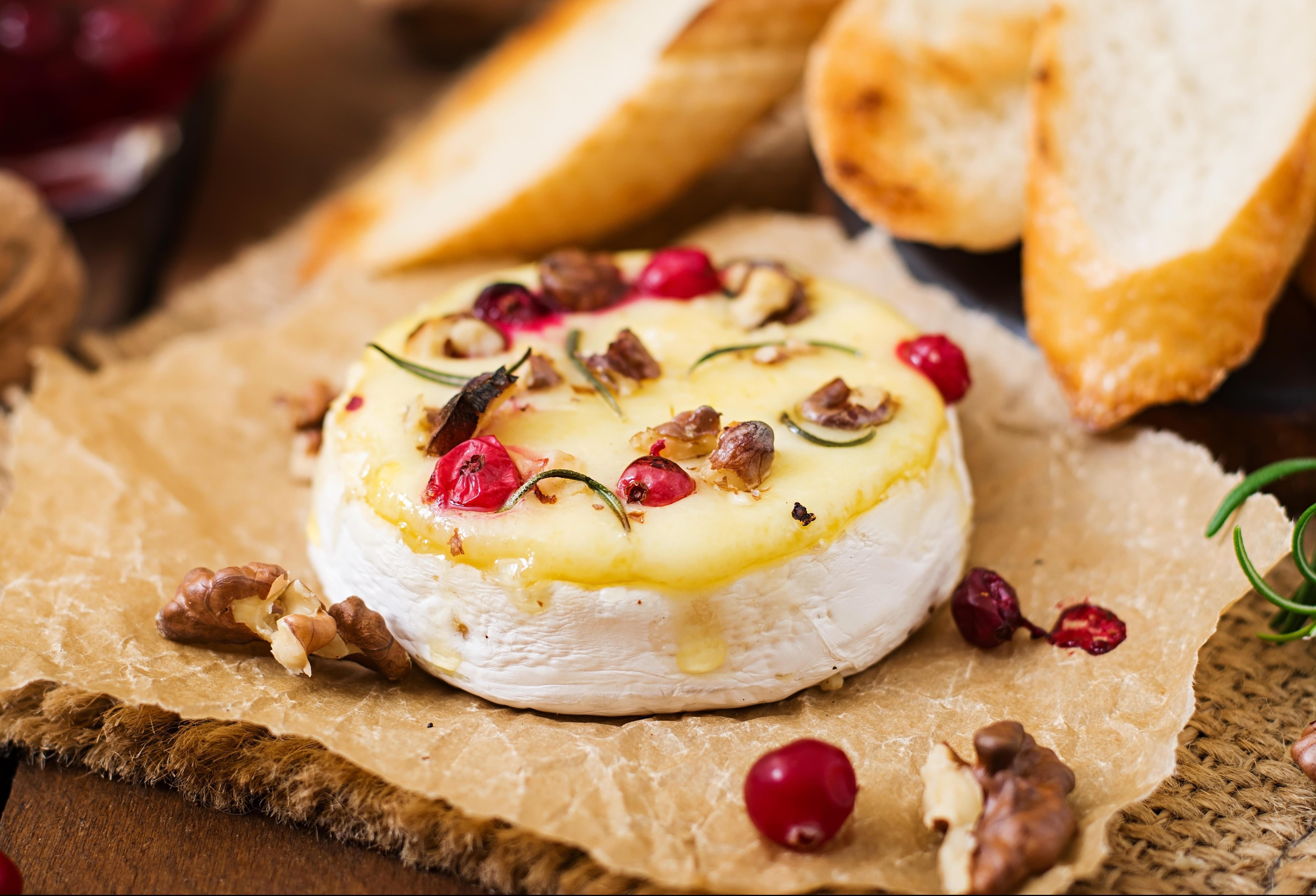 Камамбер в слоеном тесте с сушеной клюквой и орехами