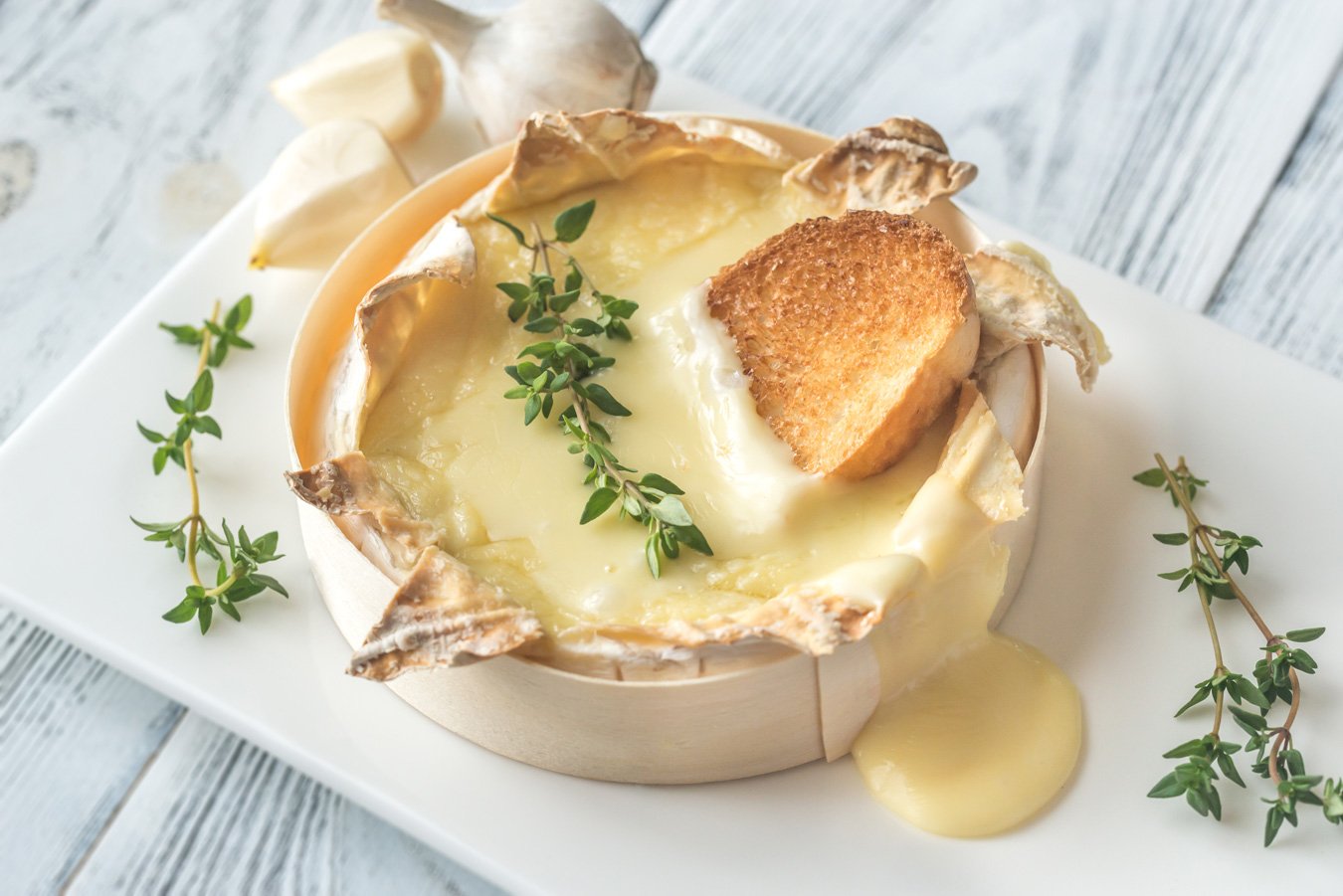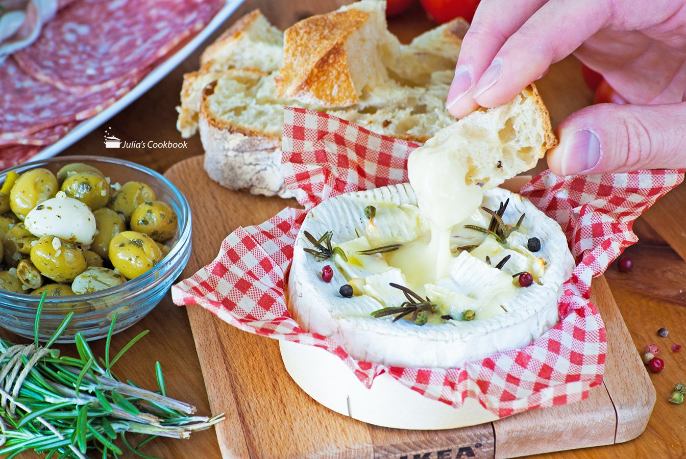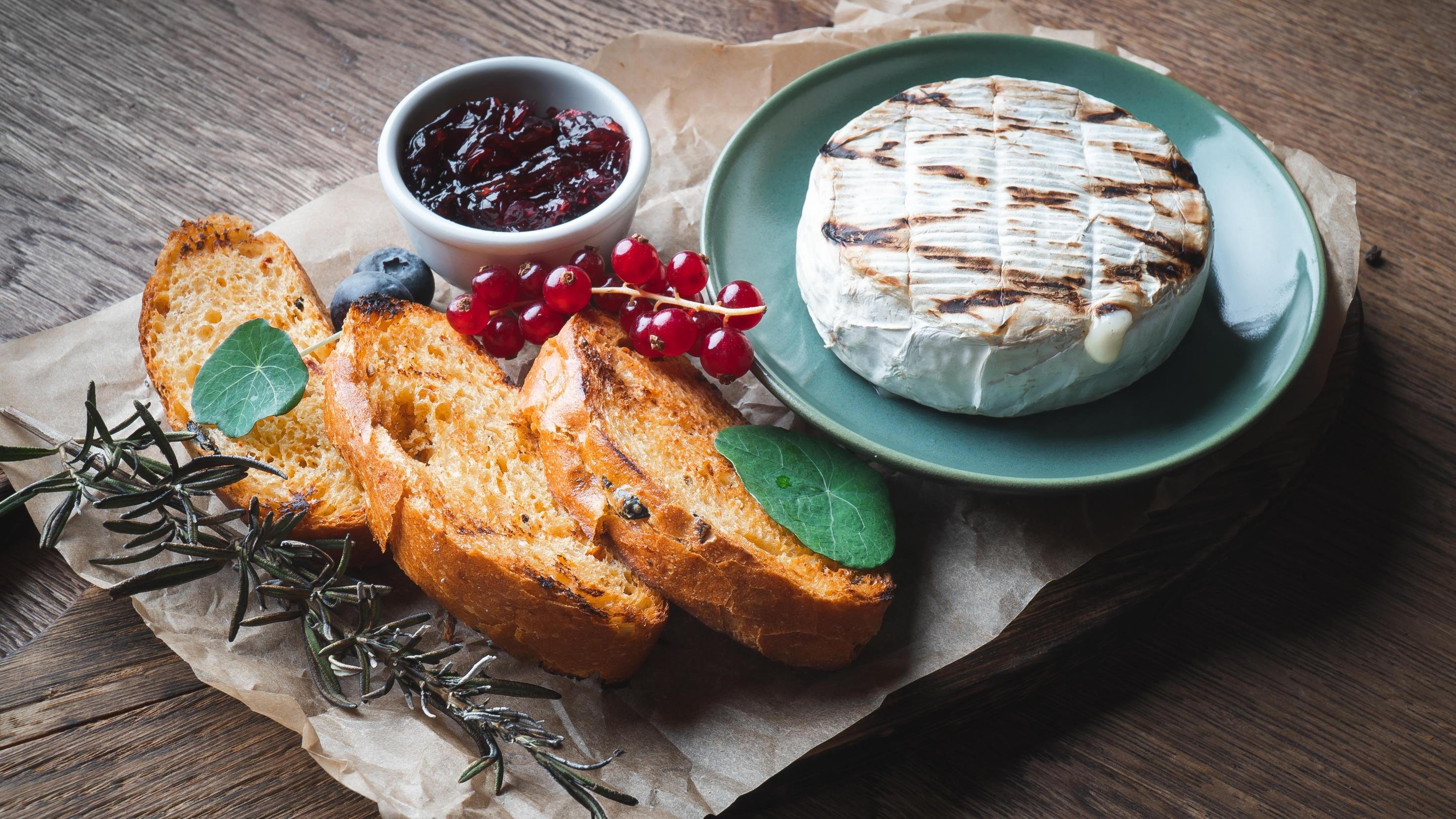 Камамбер в слоеном тесте с сушеной клюквой и орехами