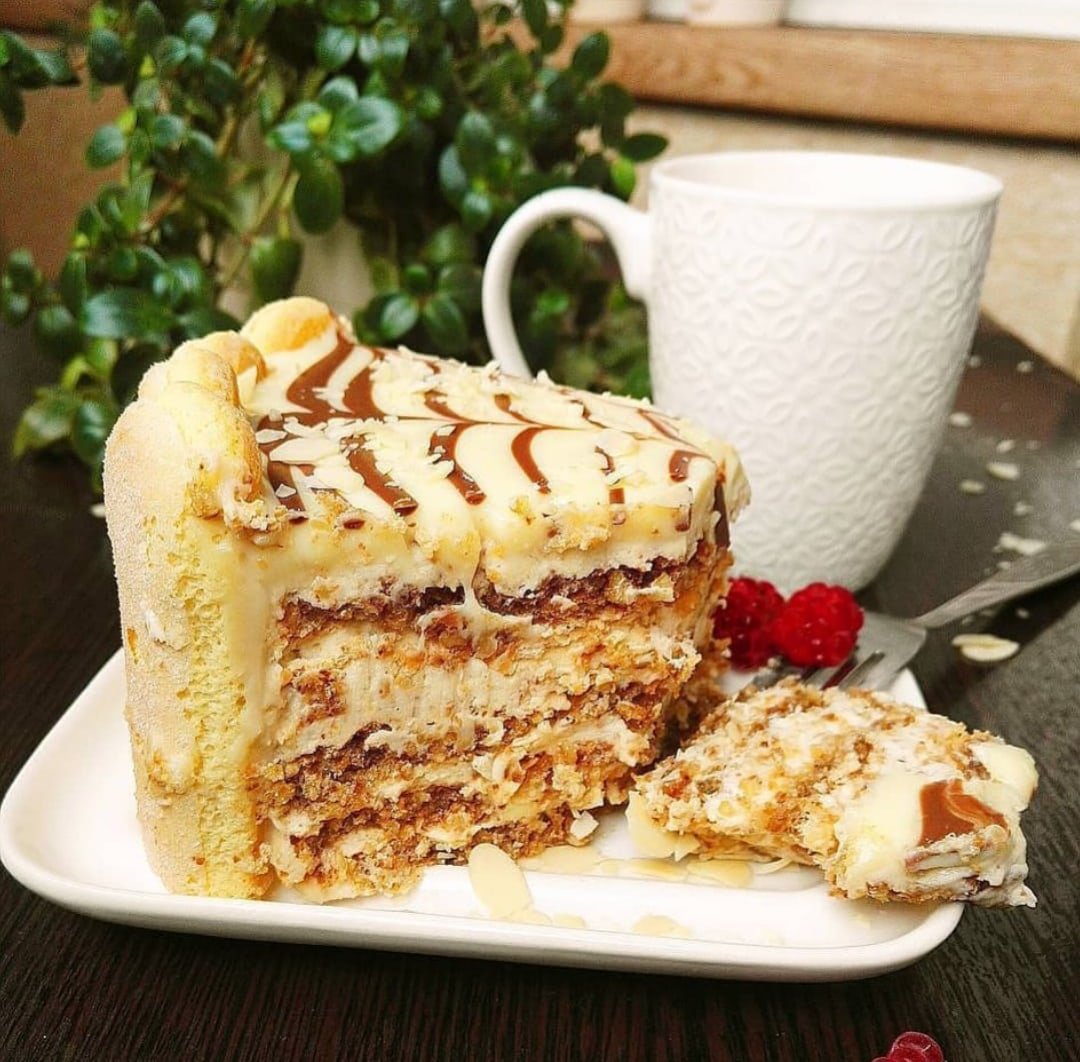 Торт ванильный: ванильный бисквит, крем-чиз,