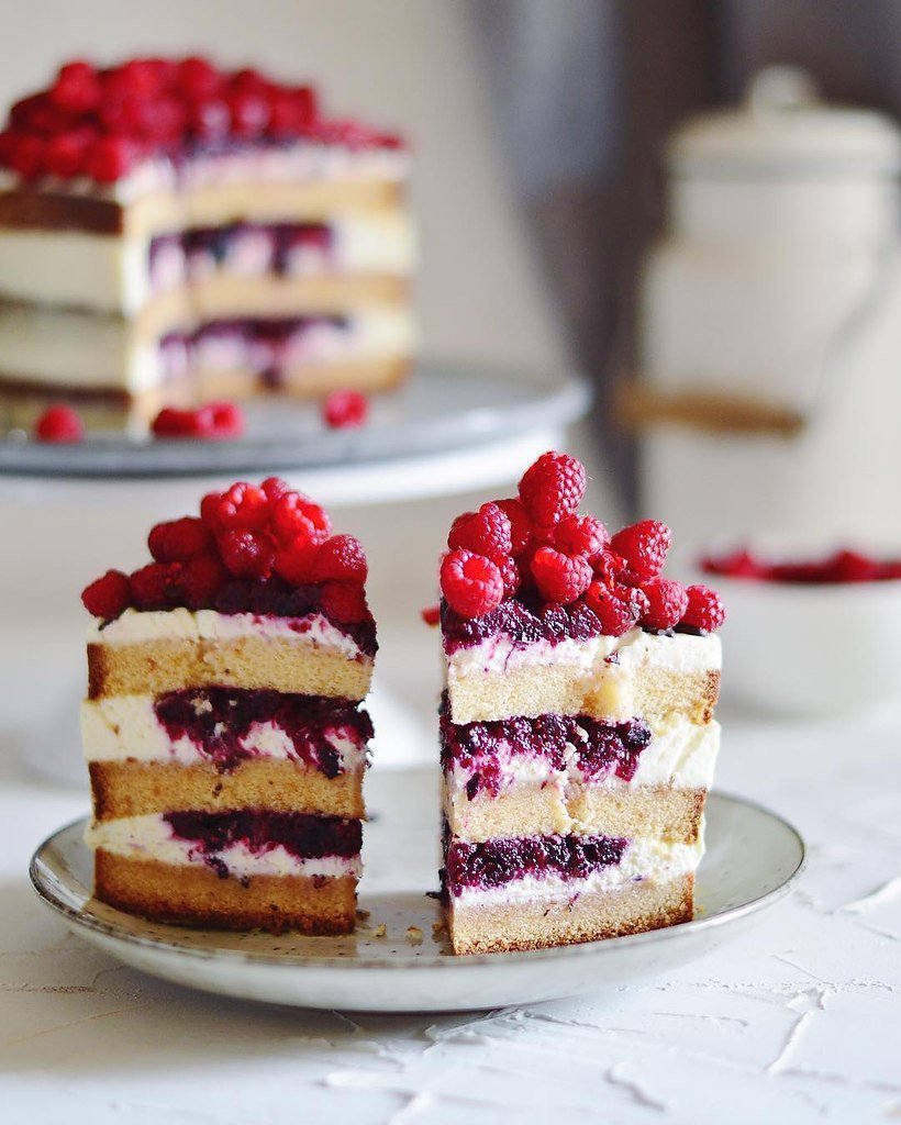 Торт крем чиз украшение малина