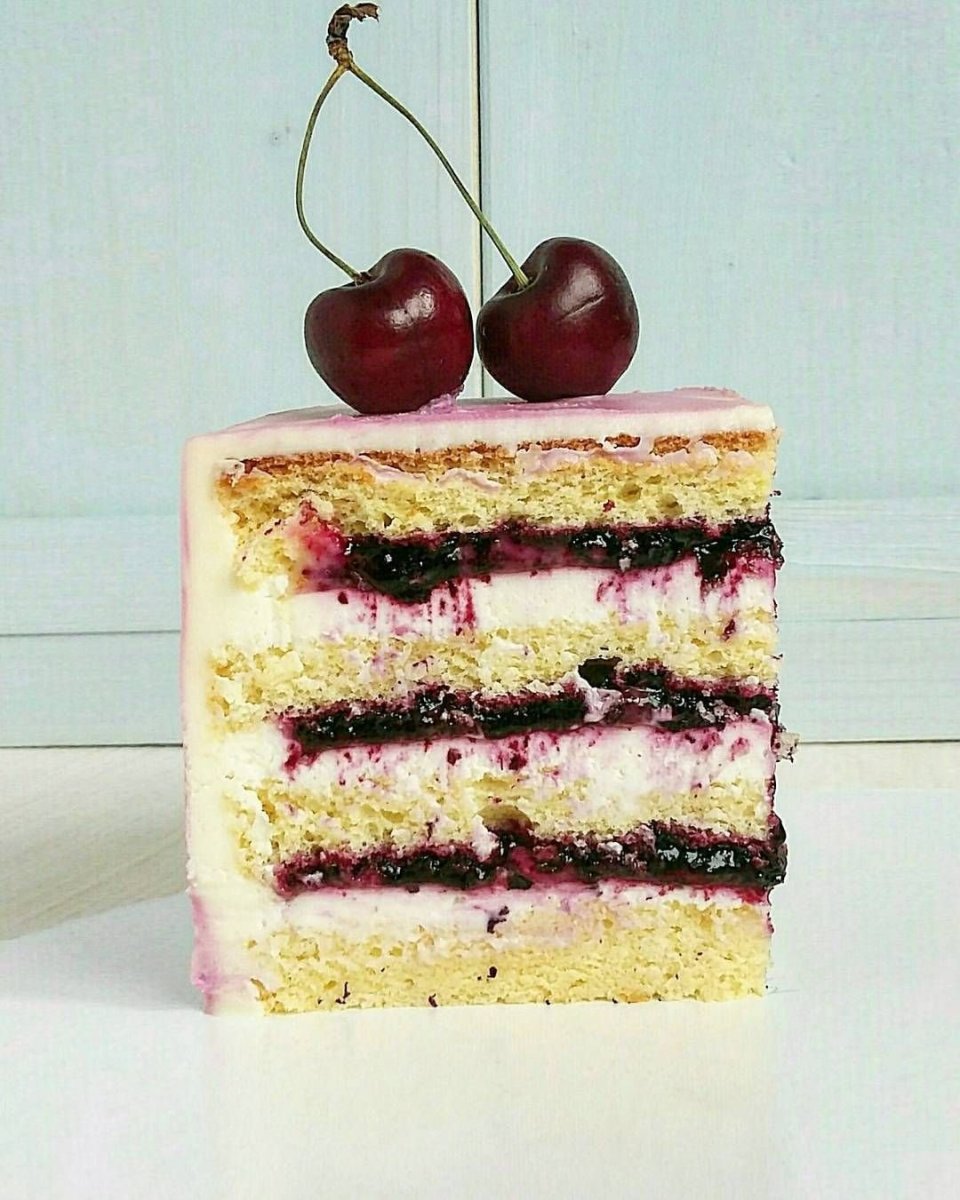 Творожно вишневый торт