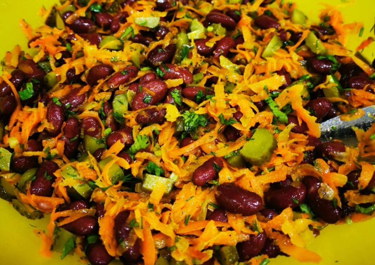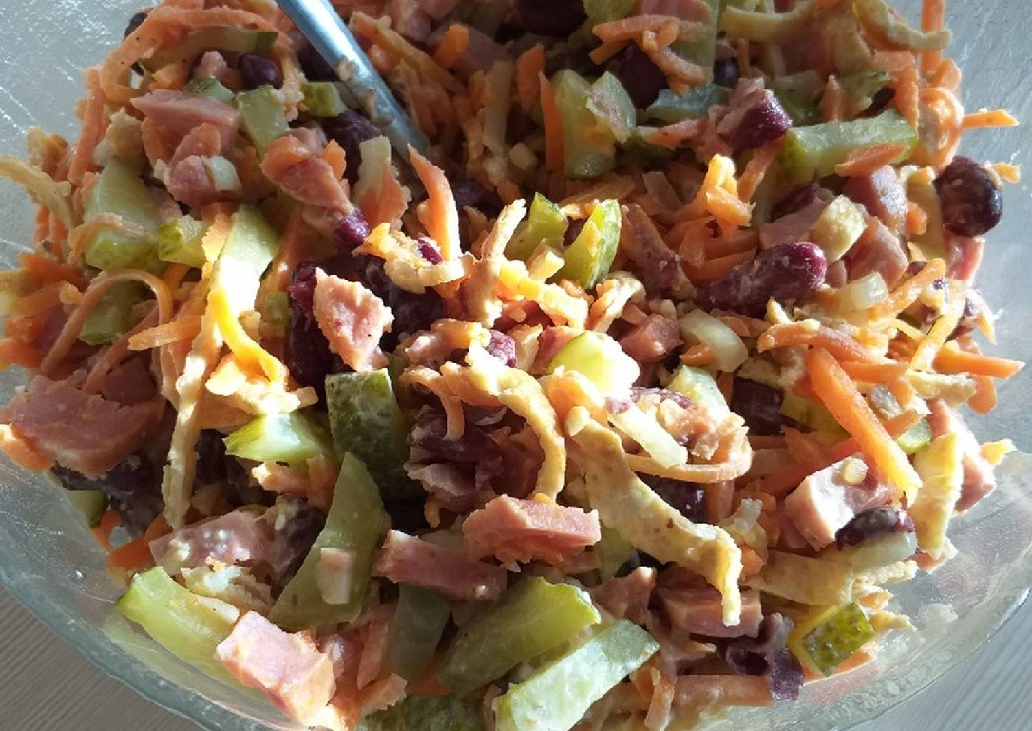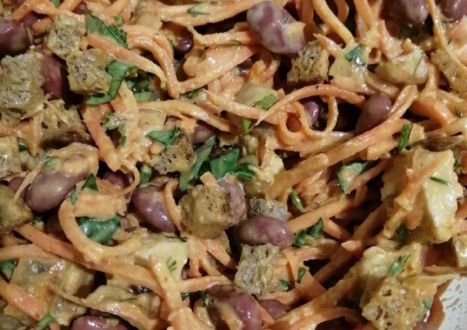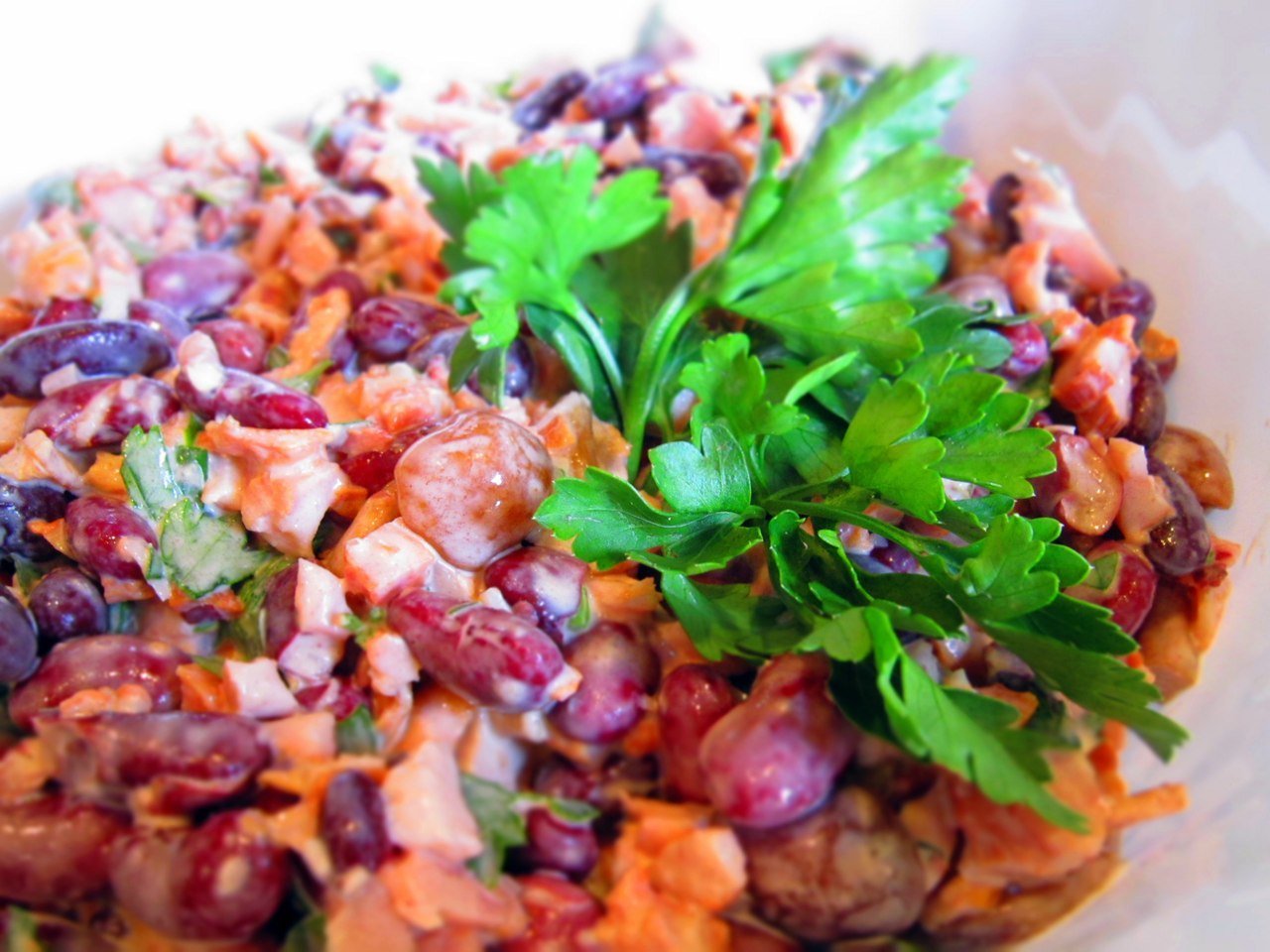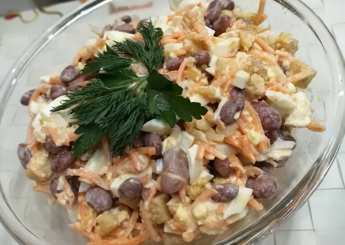 Салат с красной фасолью и куриной грудкой и корейской морковью