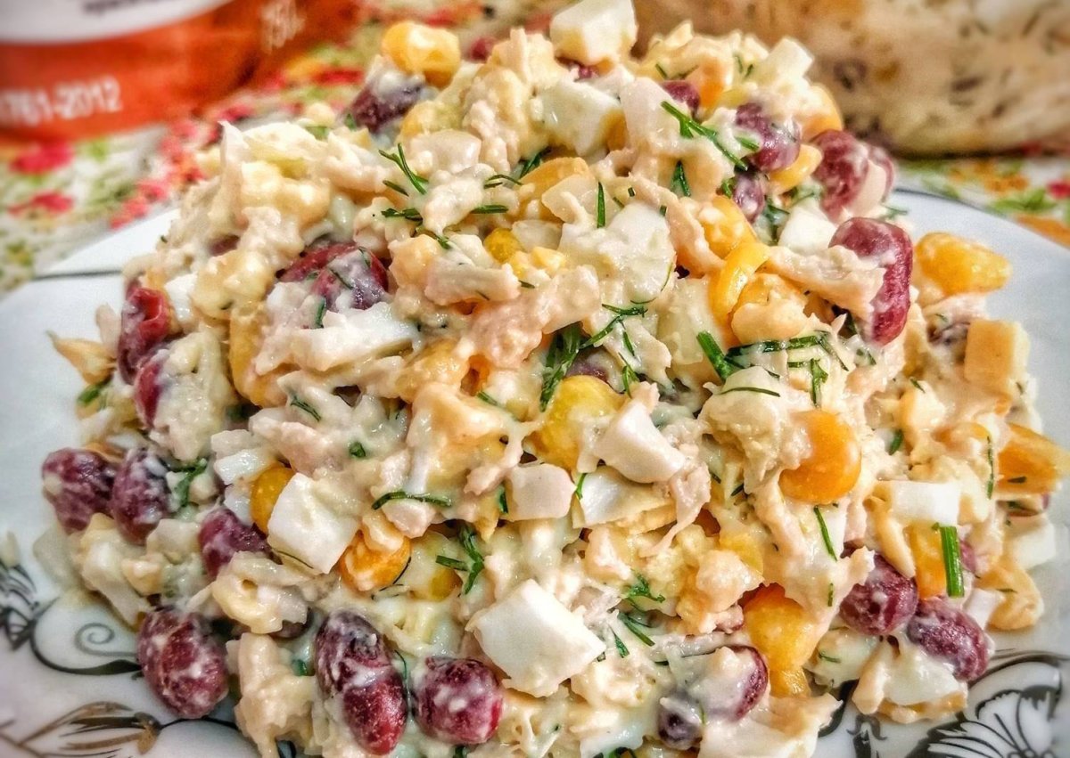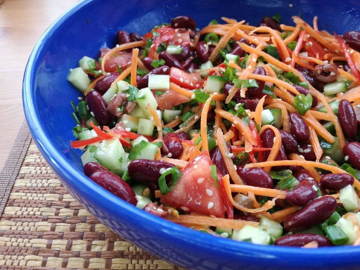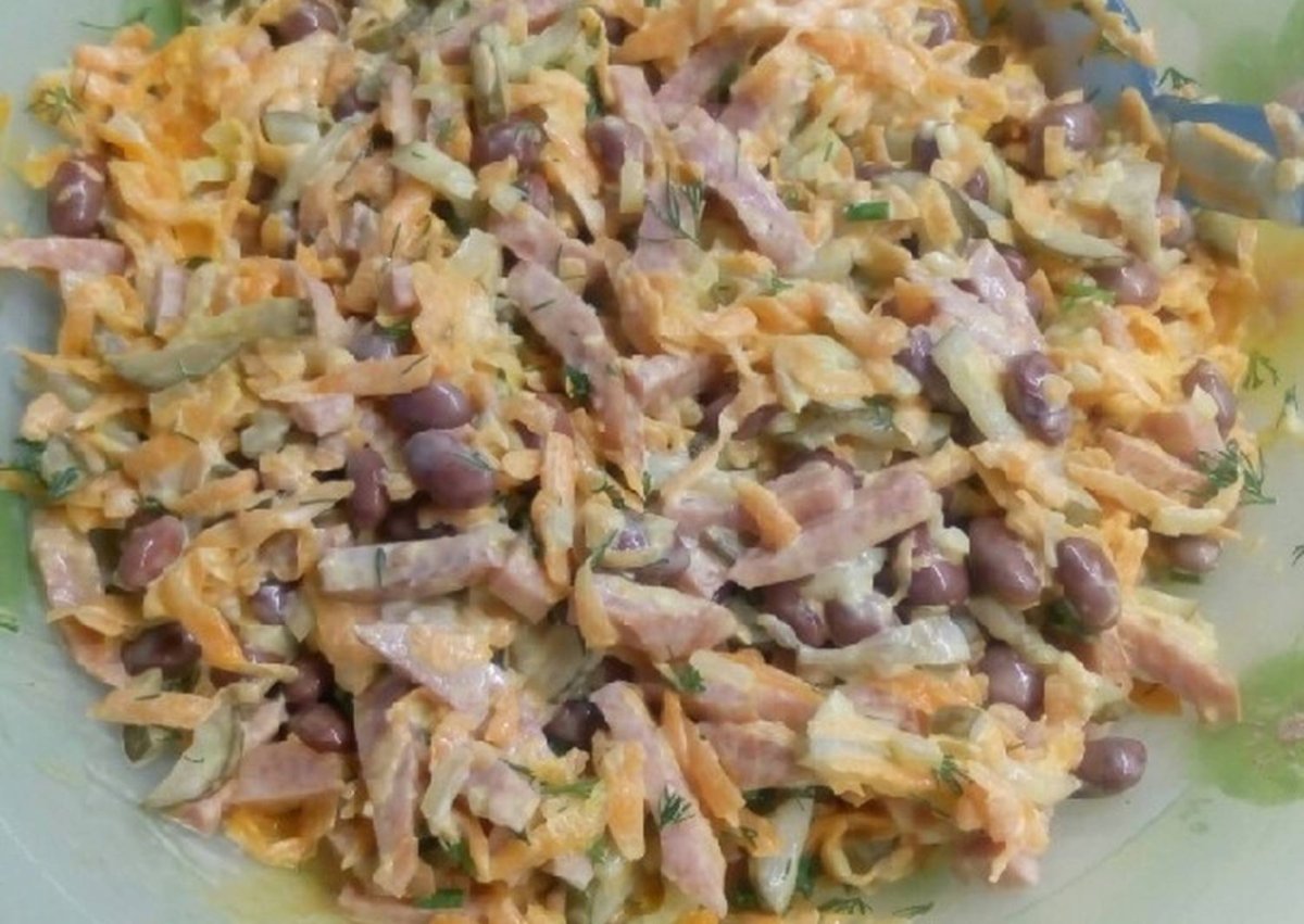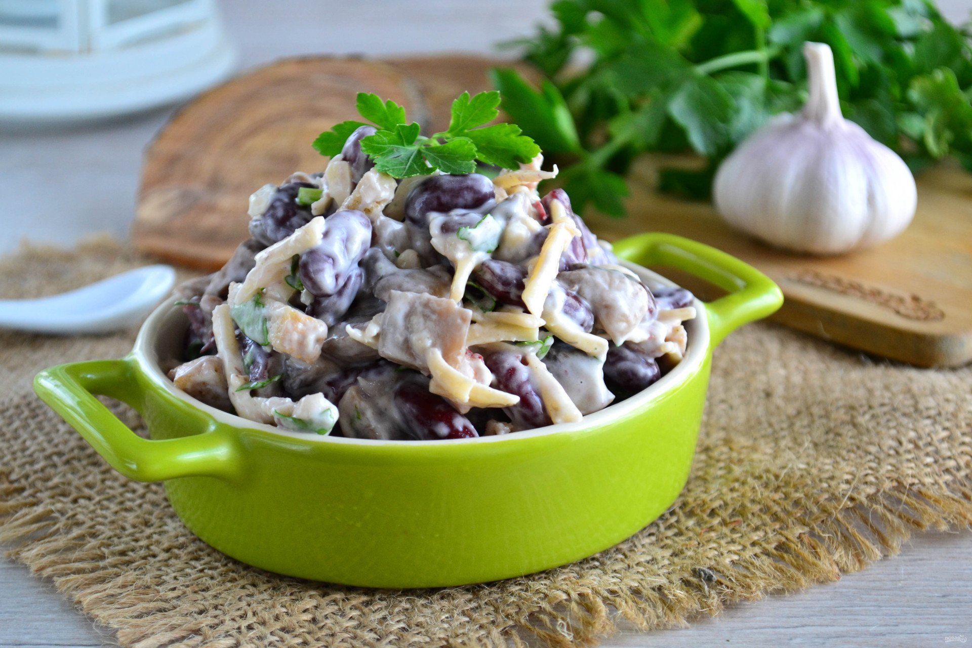 Салат с красной фасолью и куриной грудкой и корейской морковью