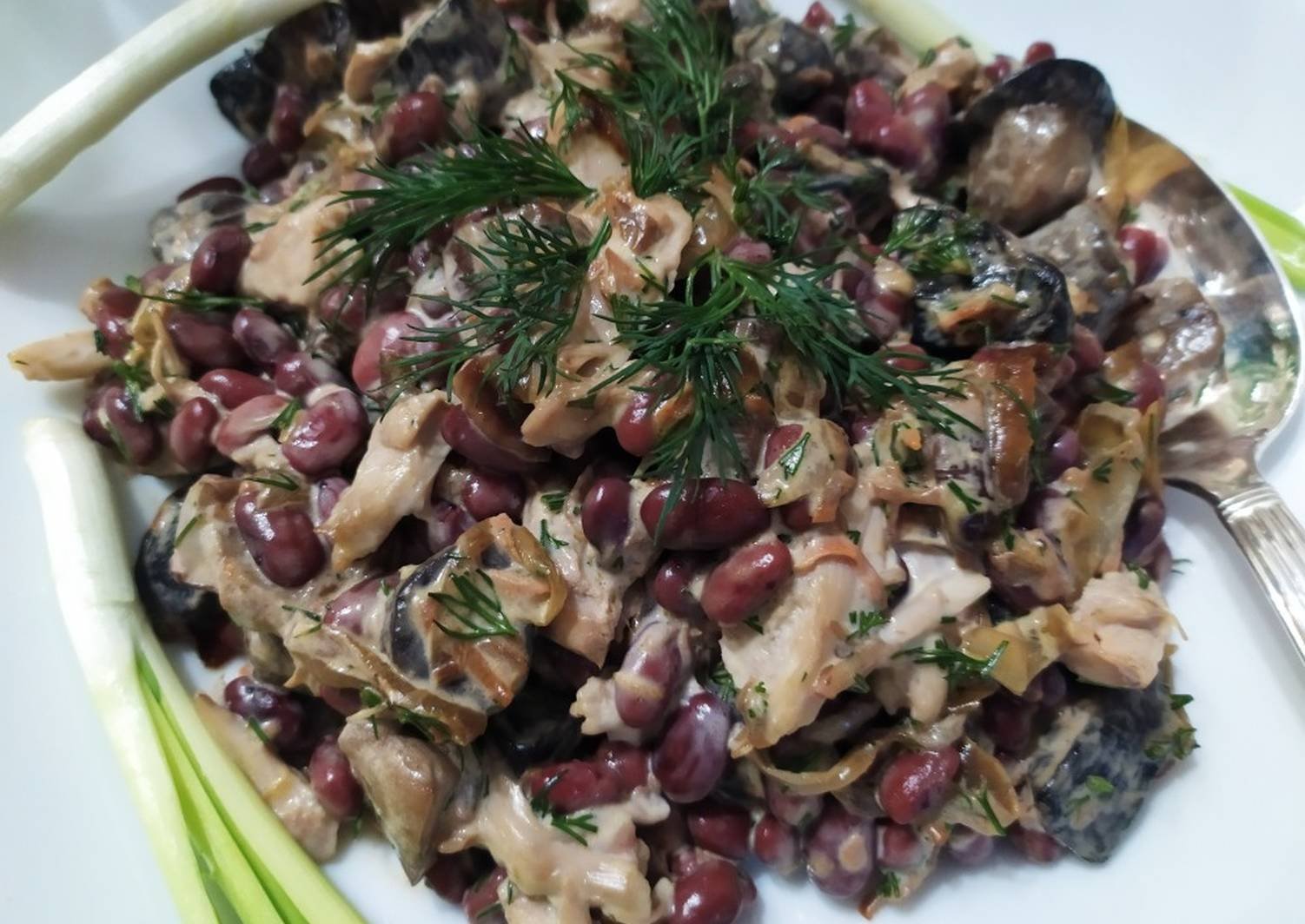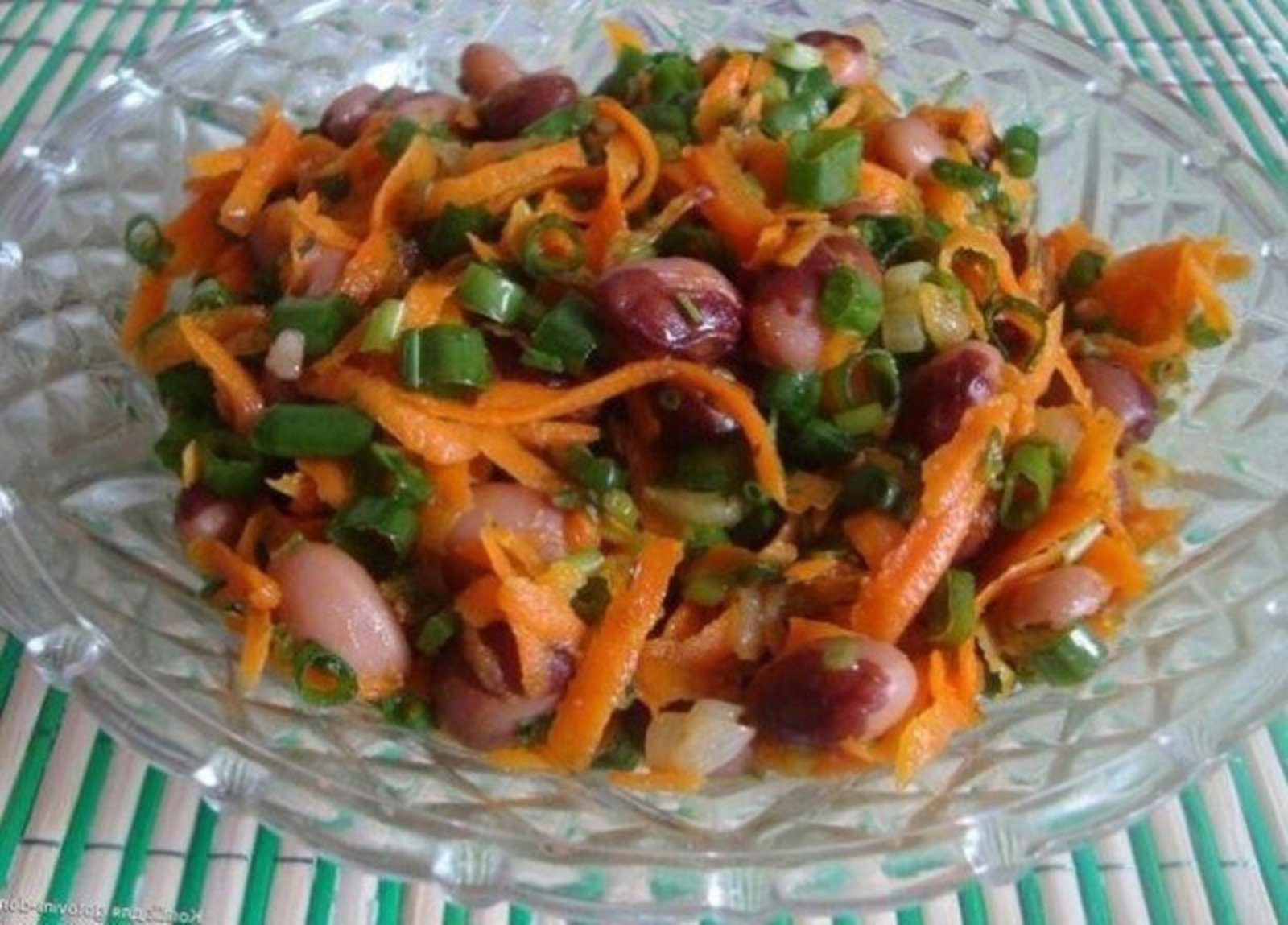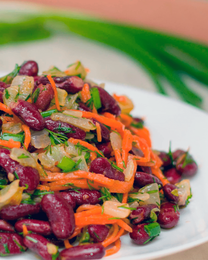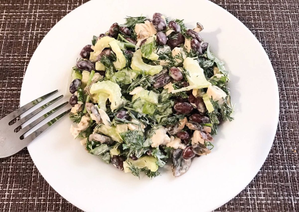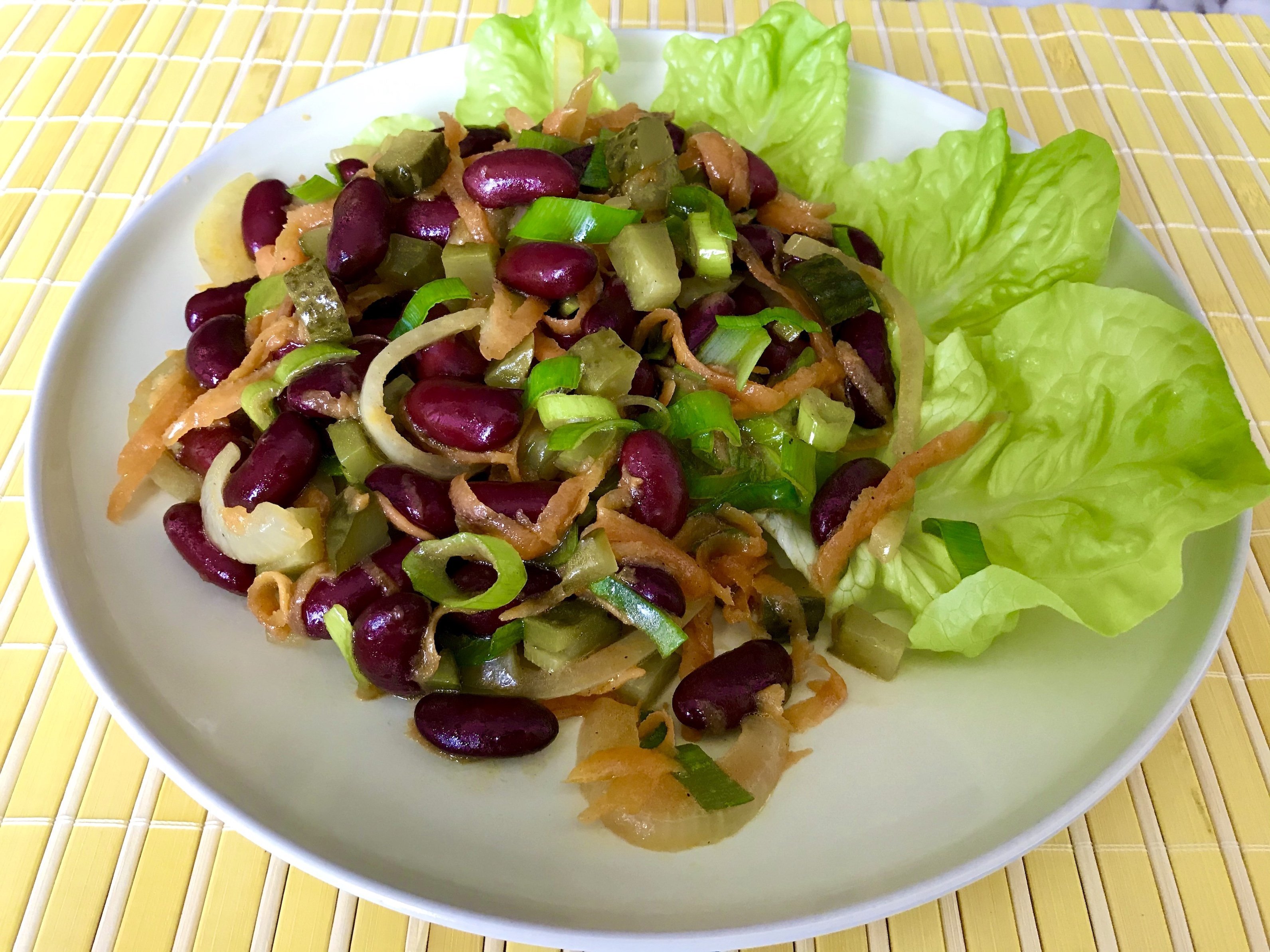 Салат с красной фасолью и куриной грудкой и корейской морковью