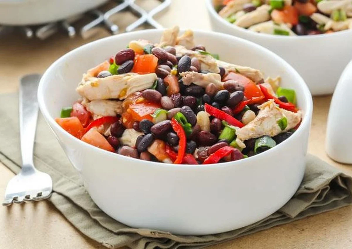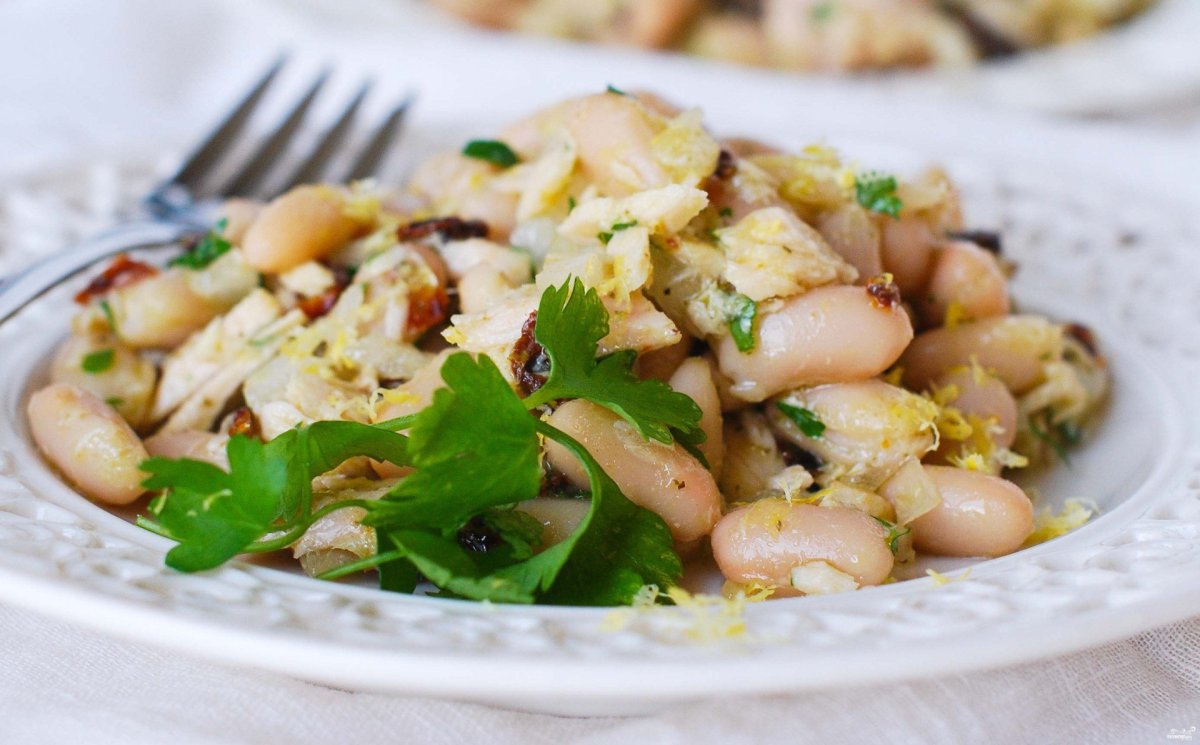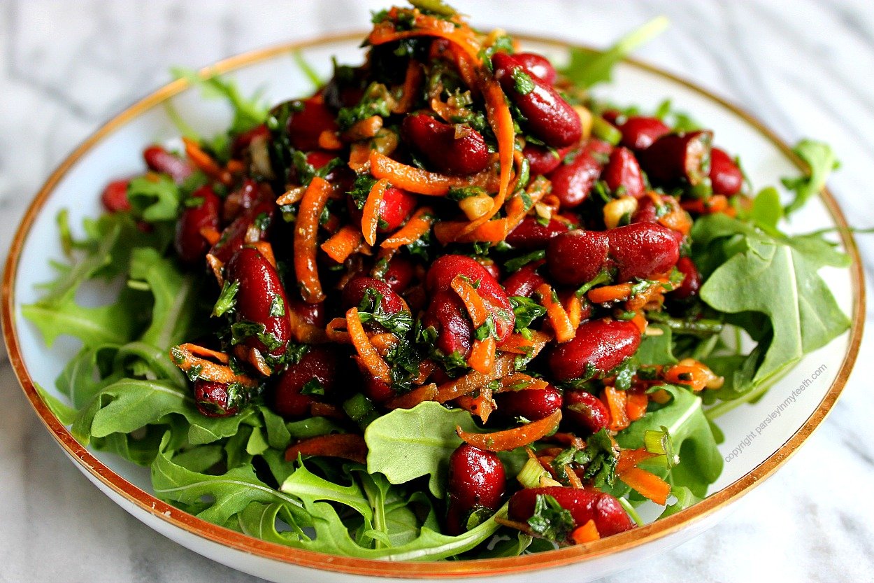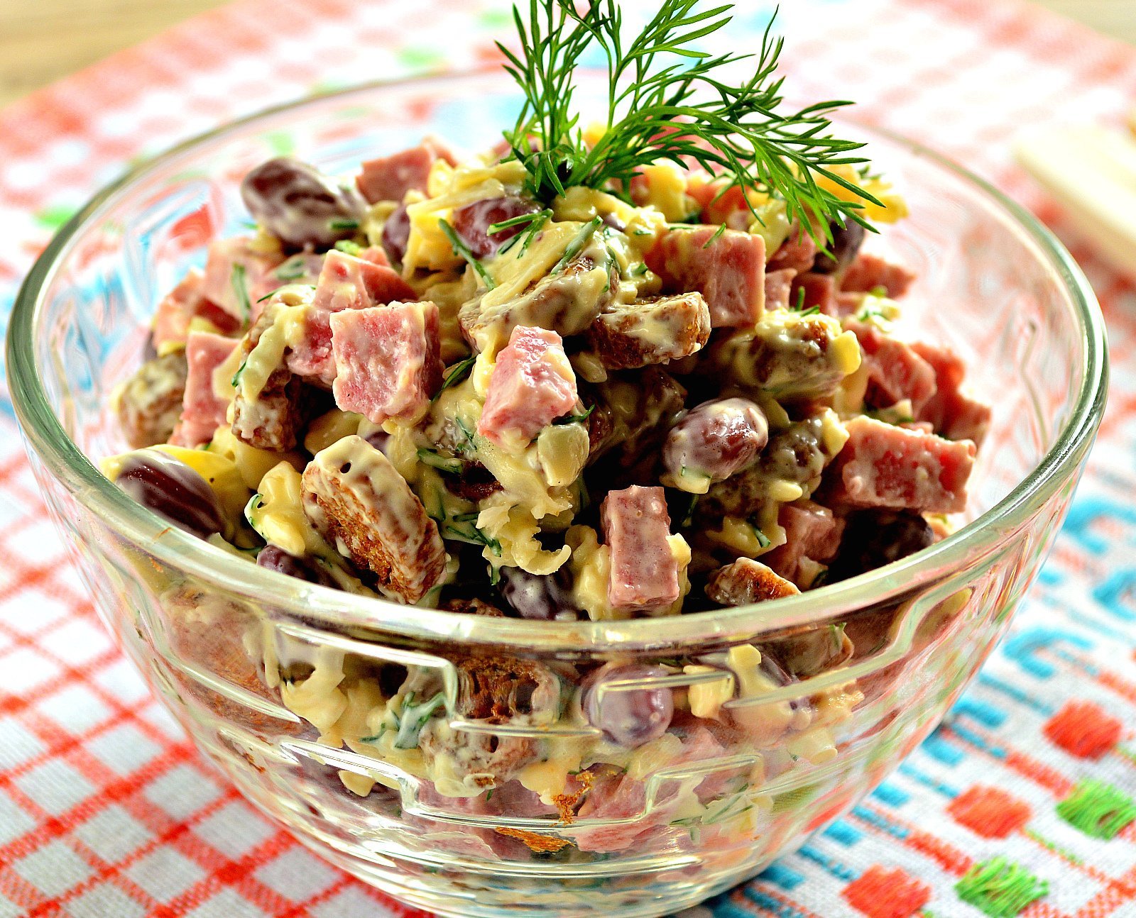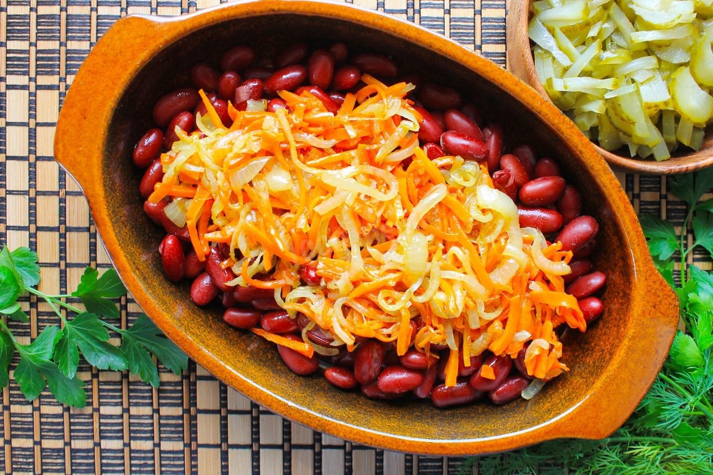 Салат с красной фасолью и куриной грудкой и корейской морковью