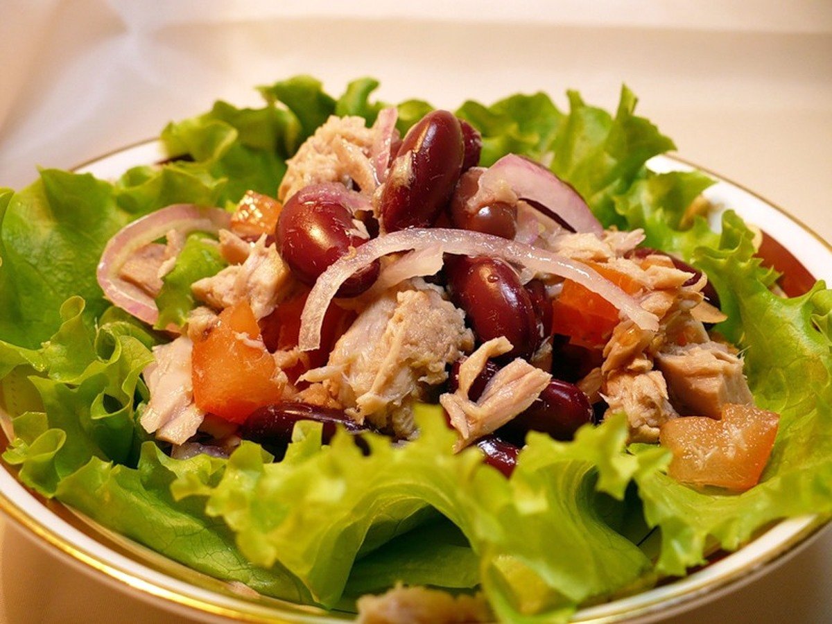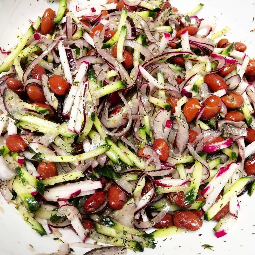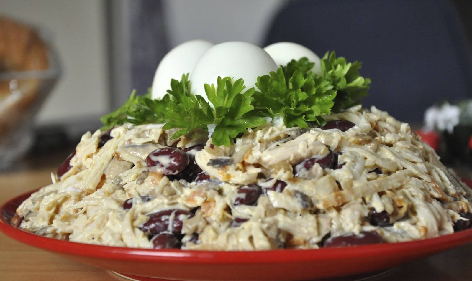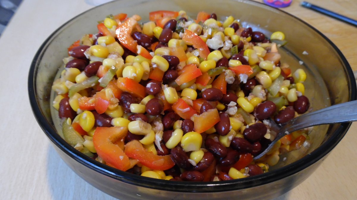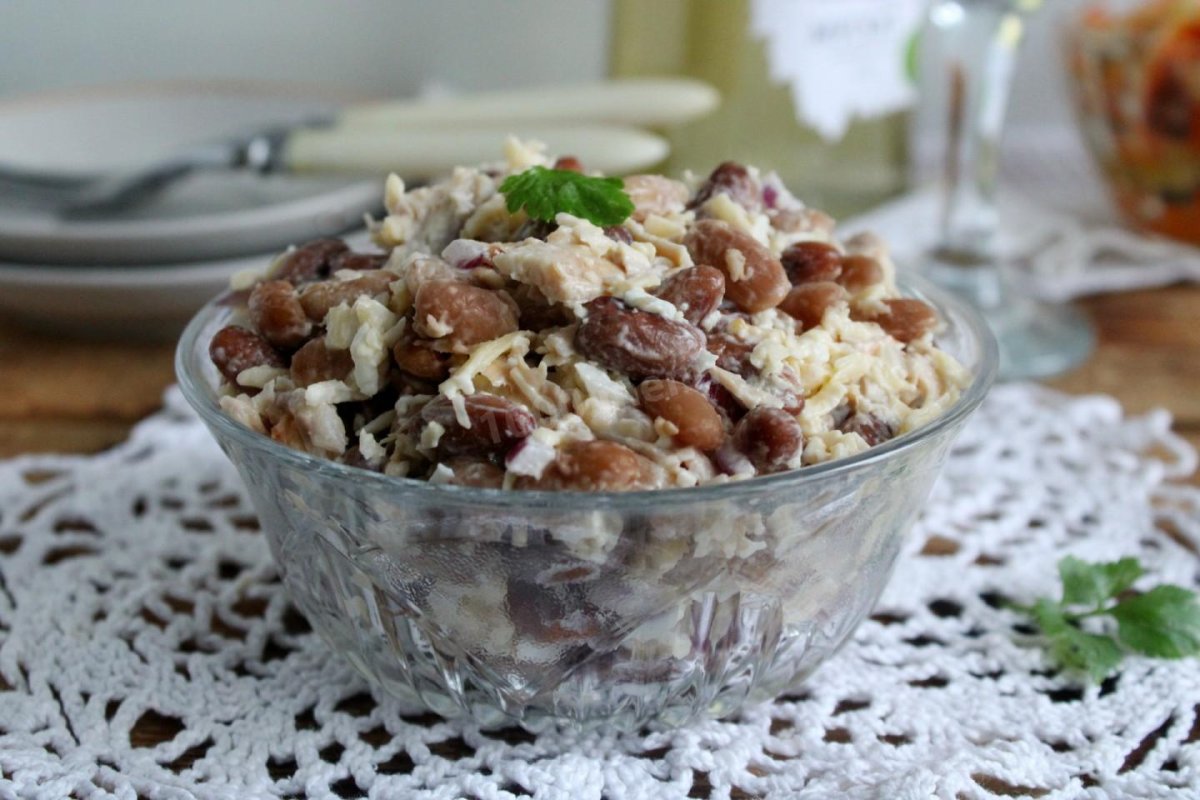 Салат с красной фасолью и куриной грудкой и корейской морковью