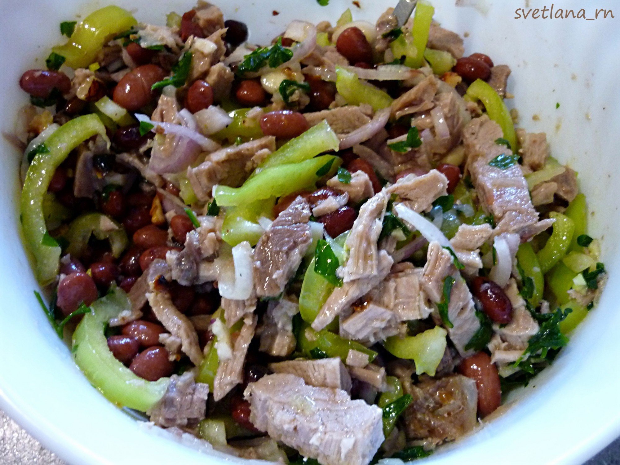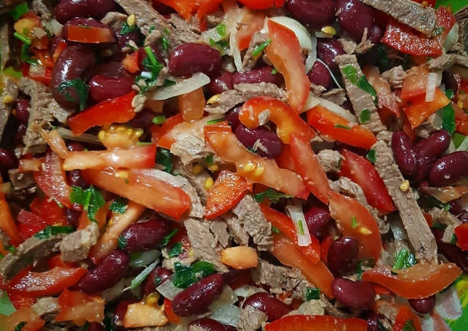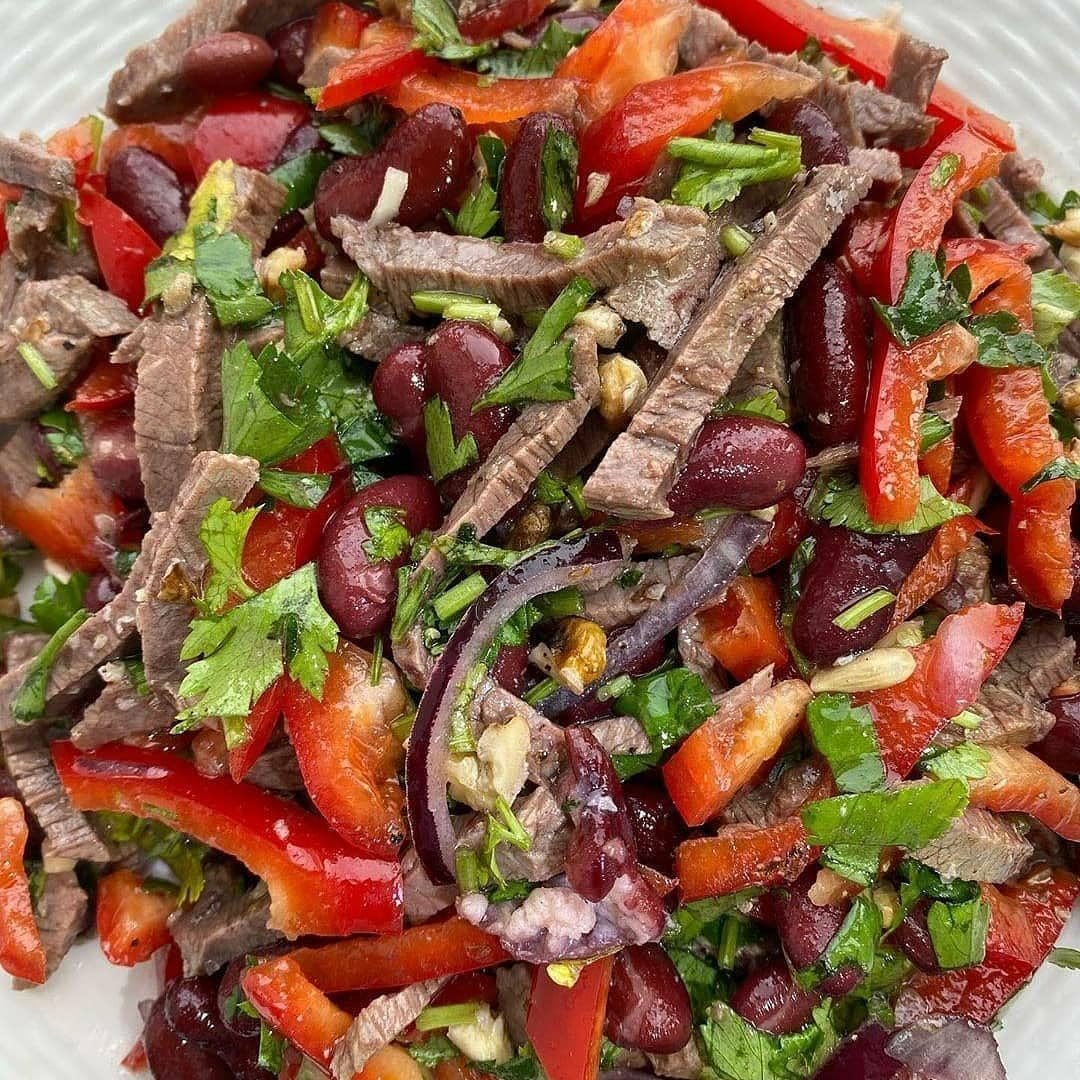 Салат Тбилиси с говядиной и фасолью и болгарским перцем