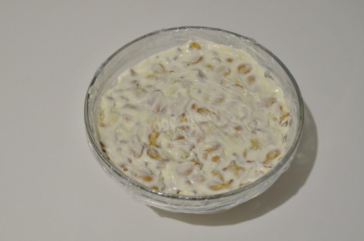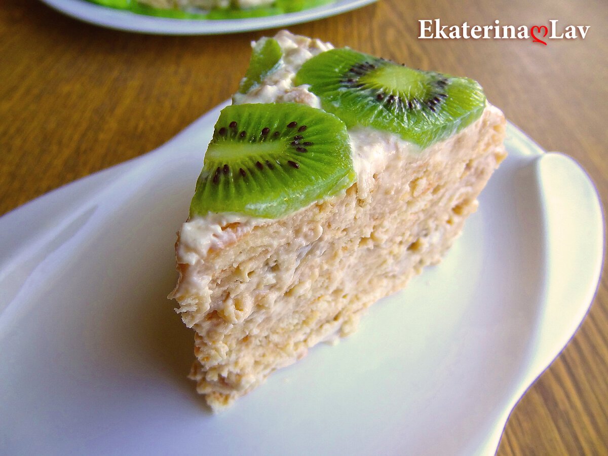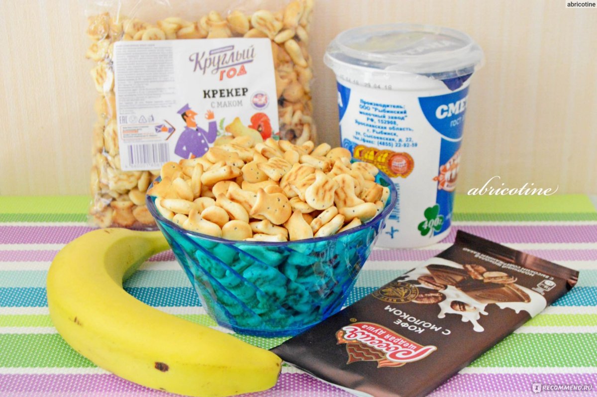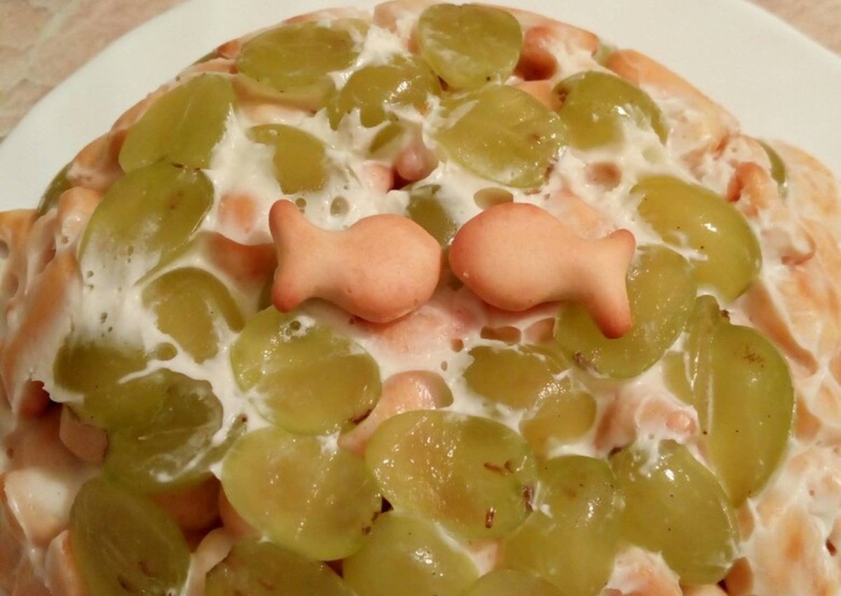 Торт из печенья рыбки без выпечки со сметаной и бананом