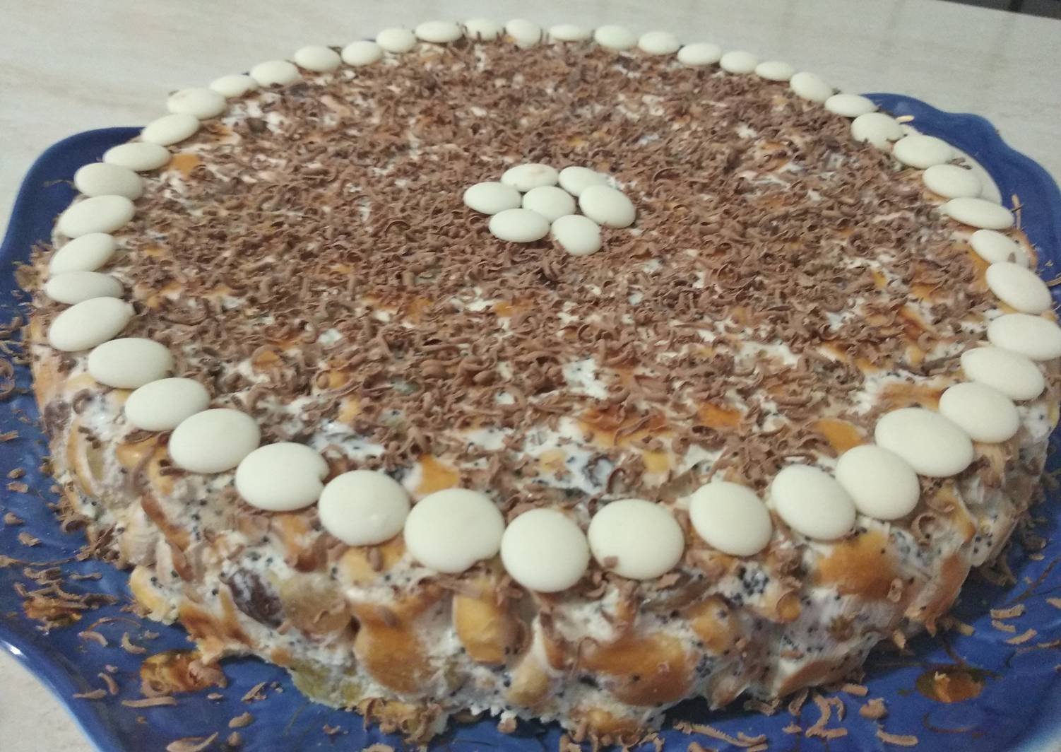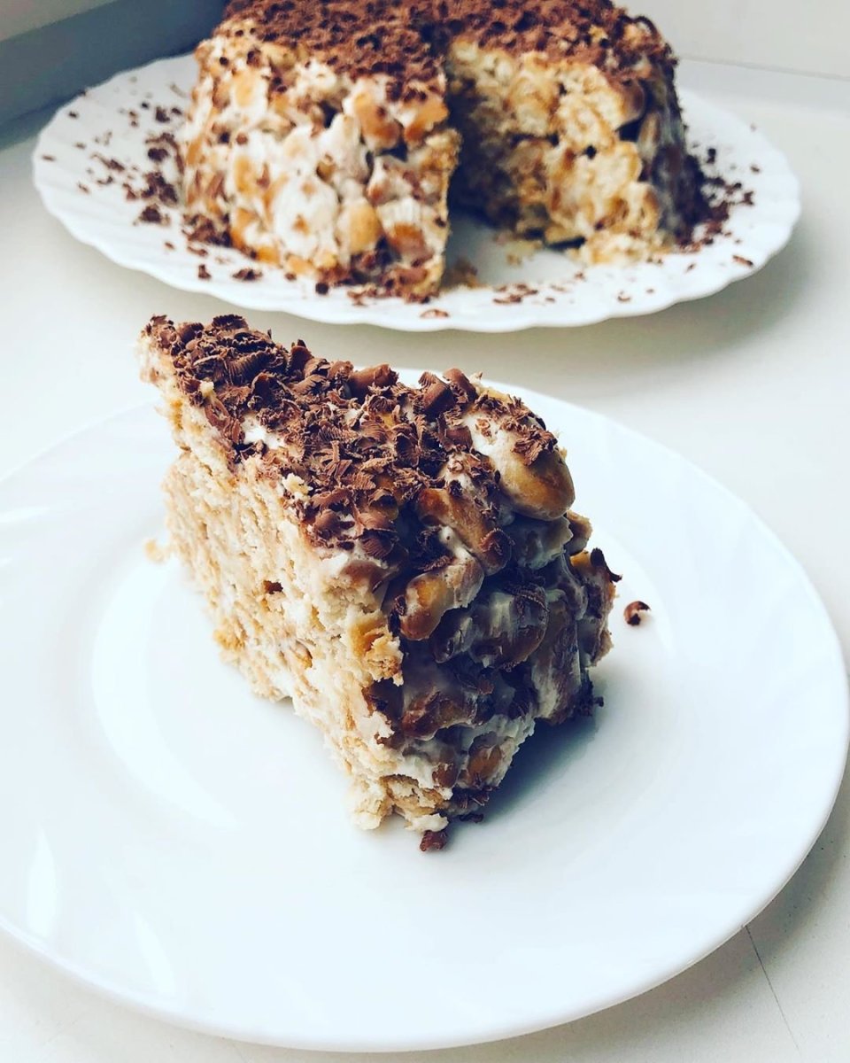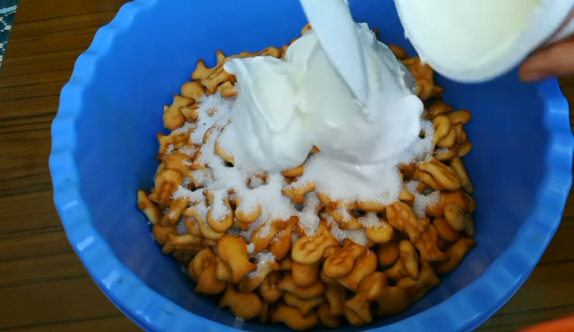 Торт из печенья рыбки без выпечки со сметаной и бананом