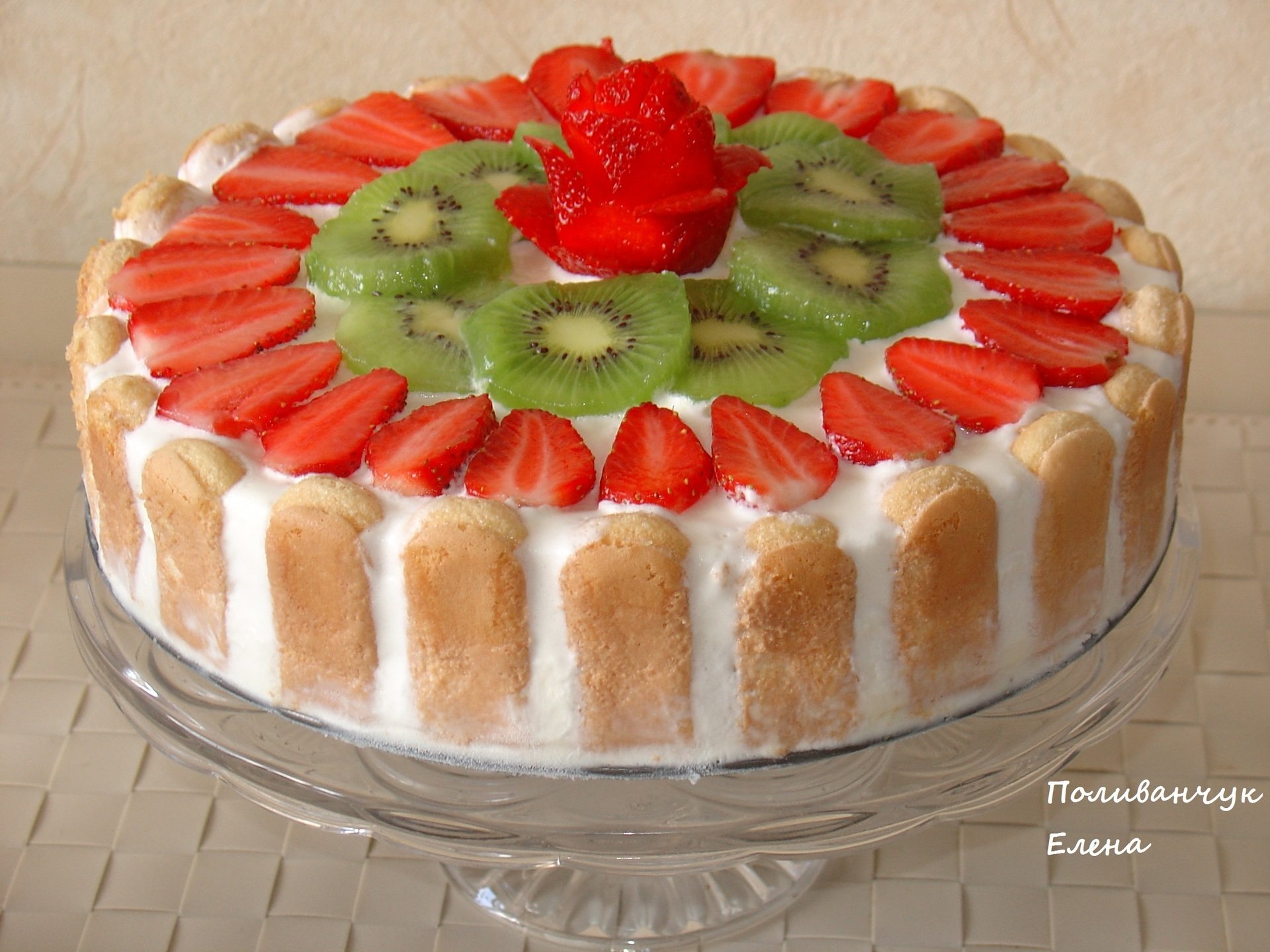 Украшение торта савоярди и фруктами