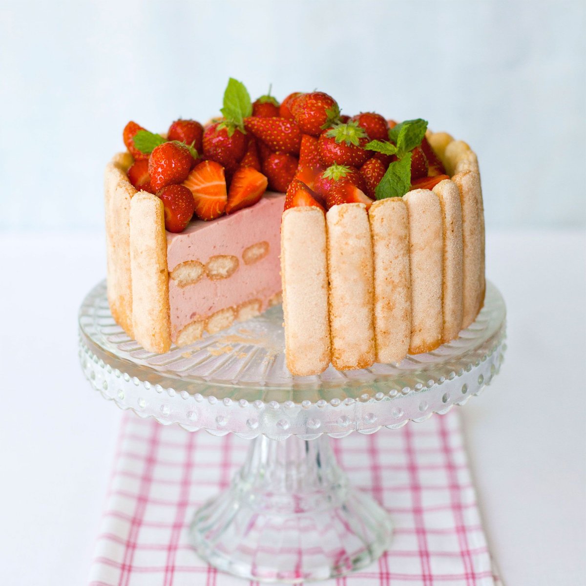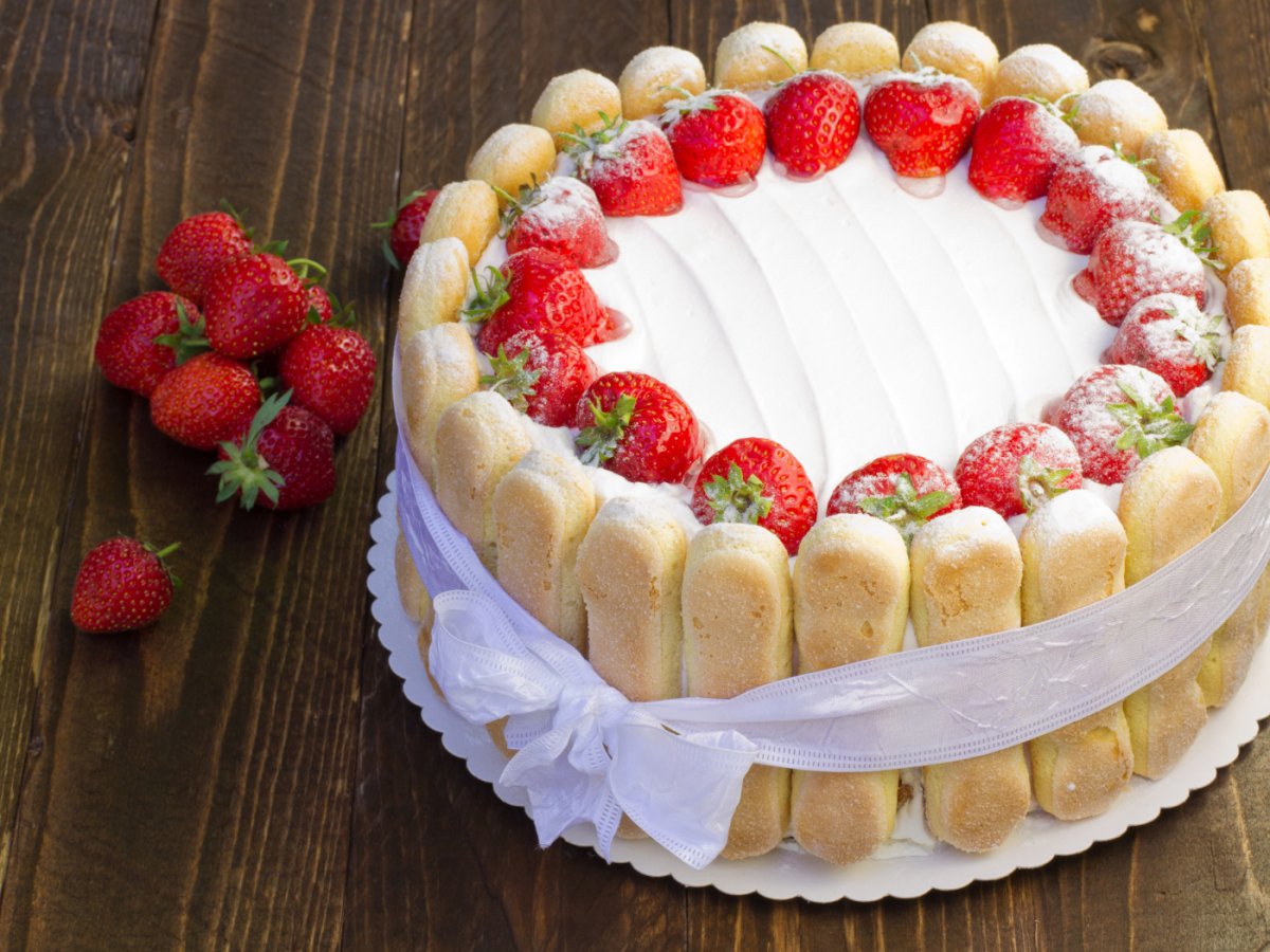 Торт с печеньем савоярди и клубникой
