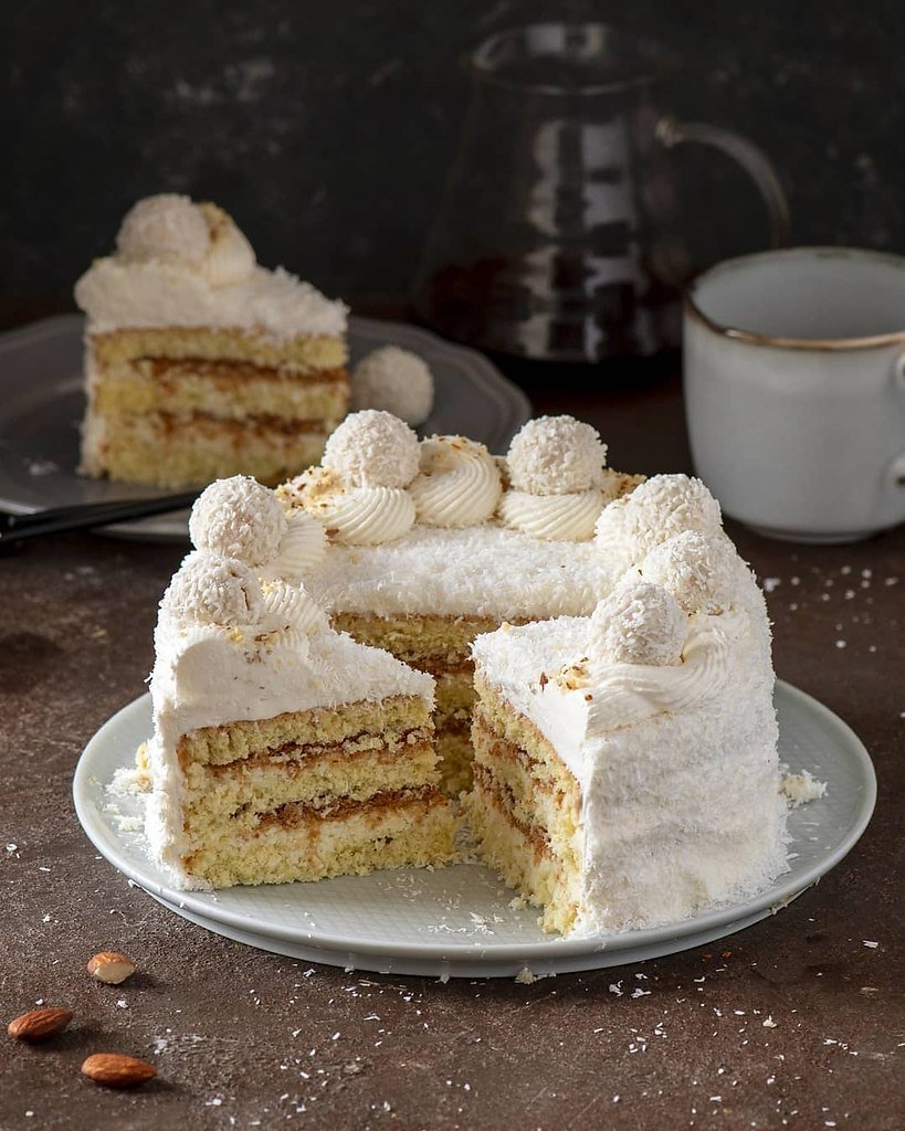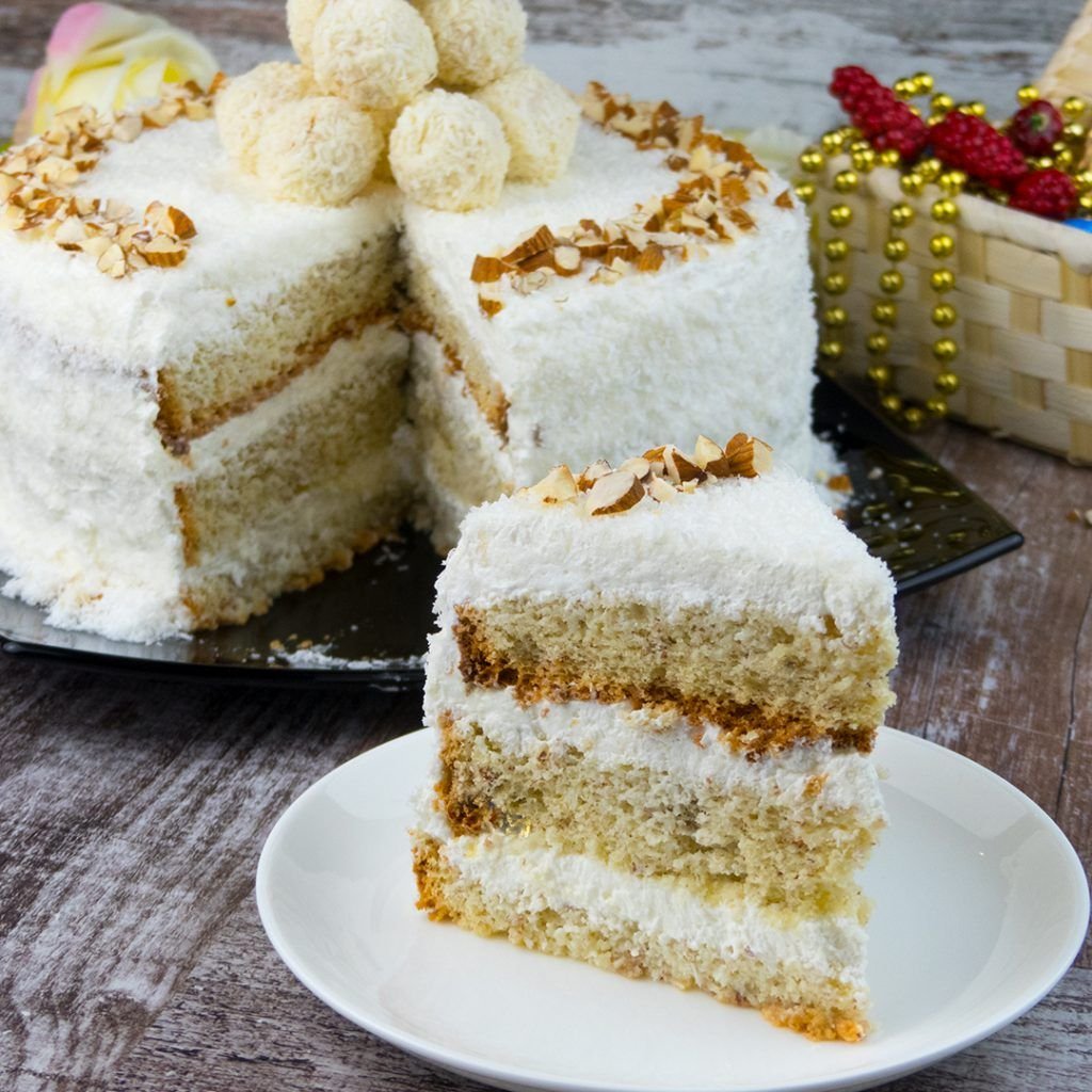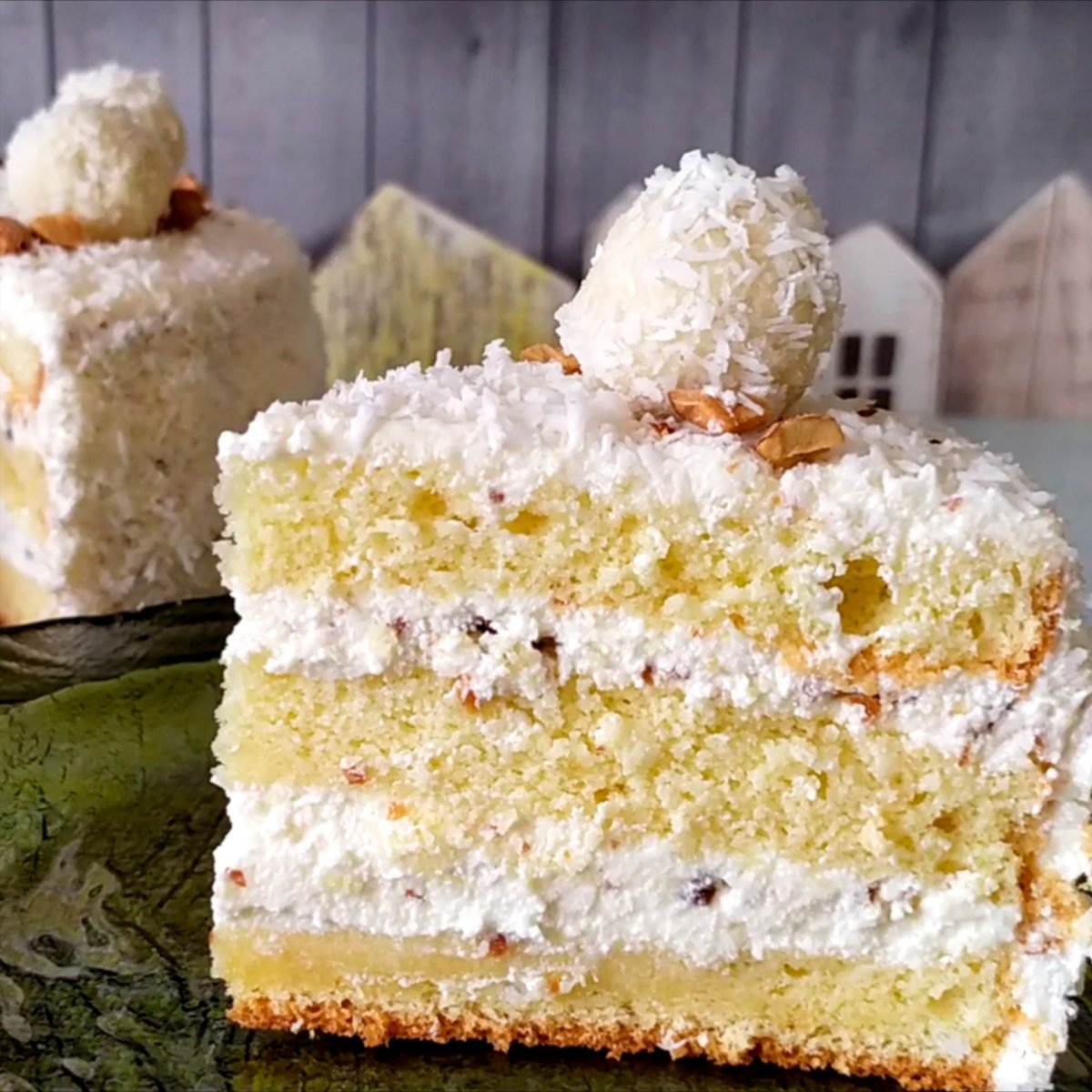 Торт Рафаэлло с кокосовой стружкой без выпечки