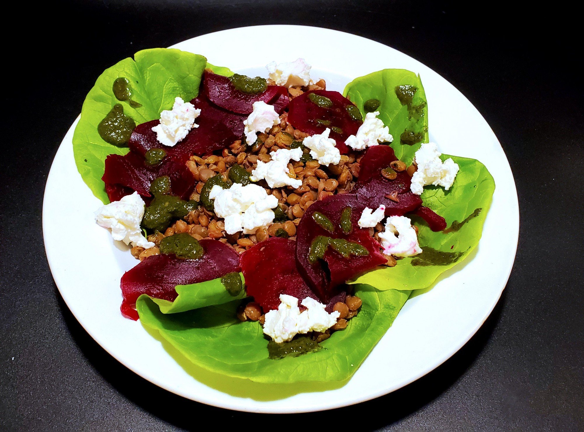 Салат со свеклой и виноградом и козьим сыром красивая подача