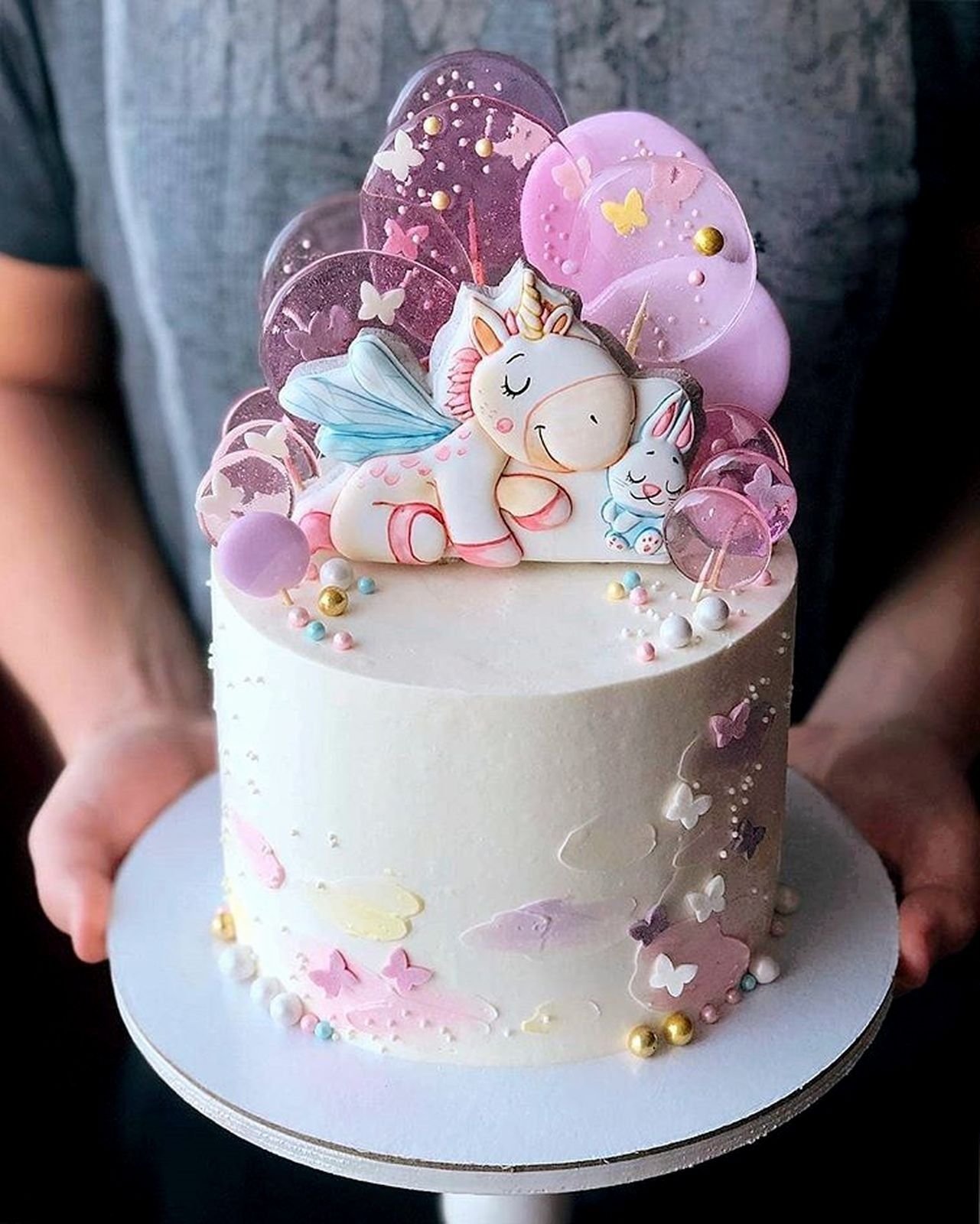 Торт с единорогом и леденцами