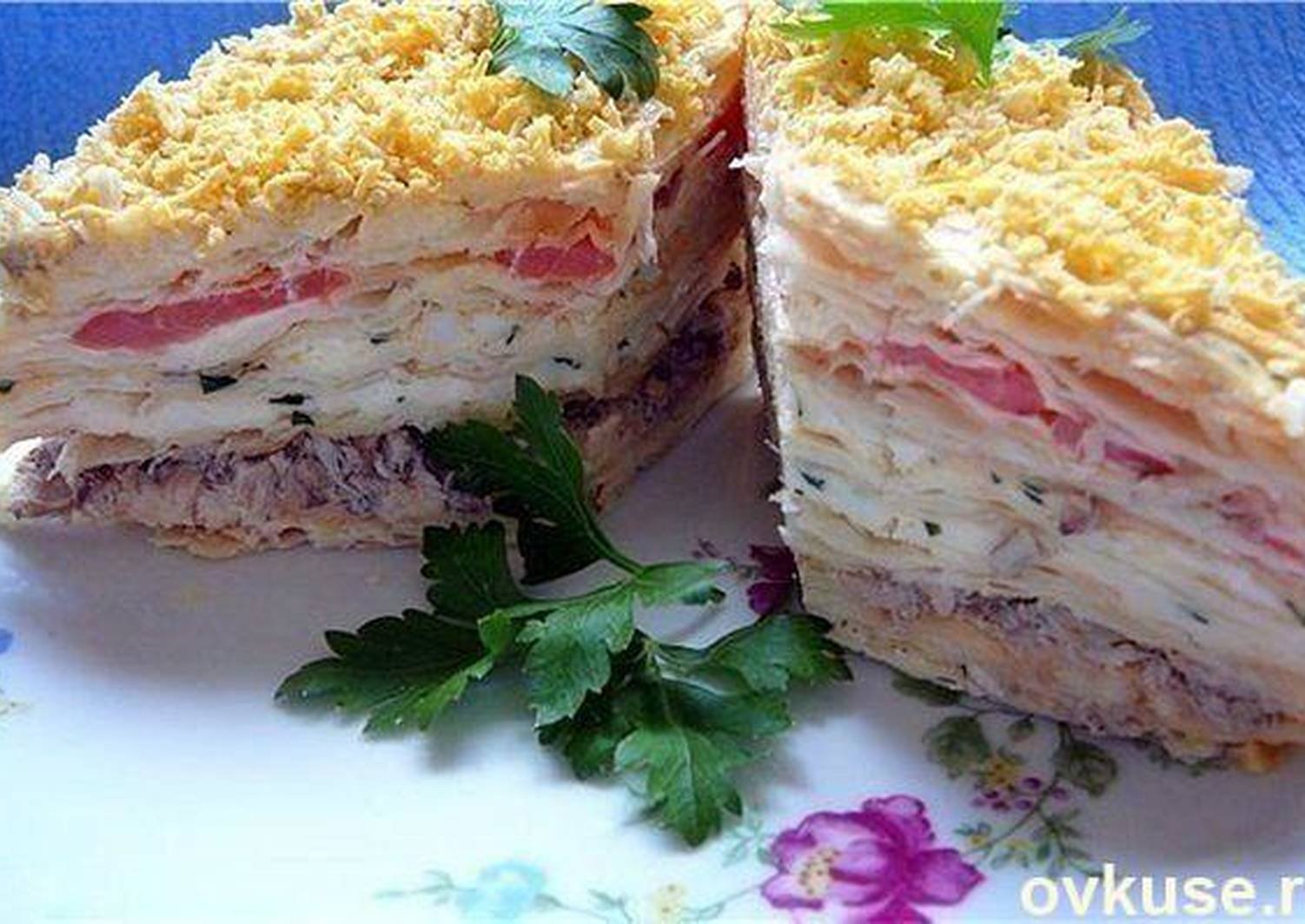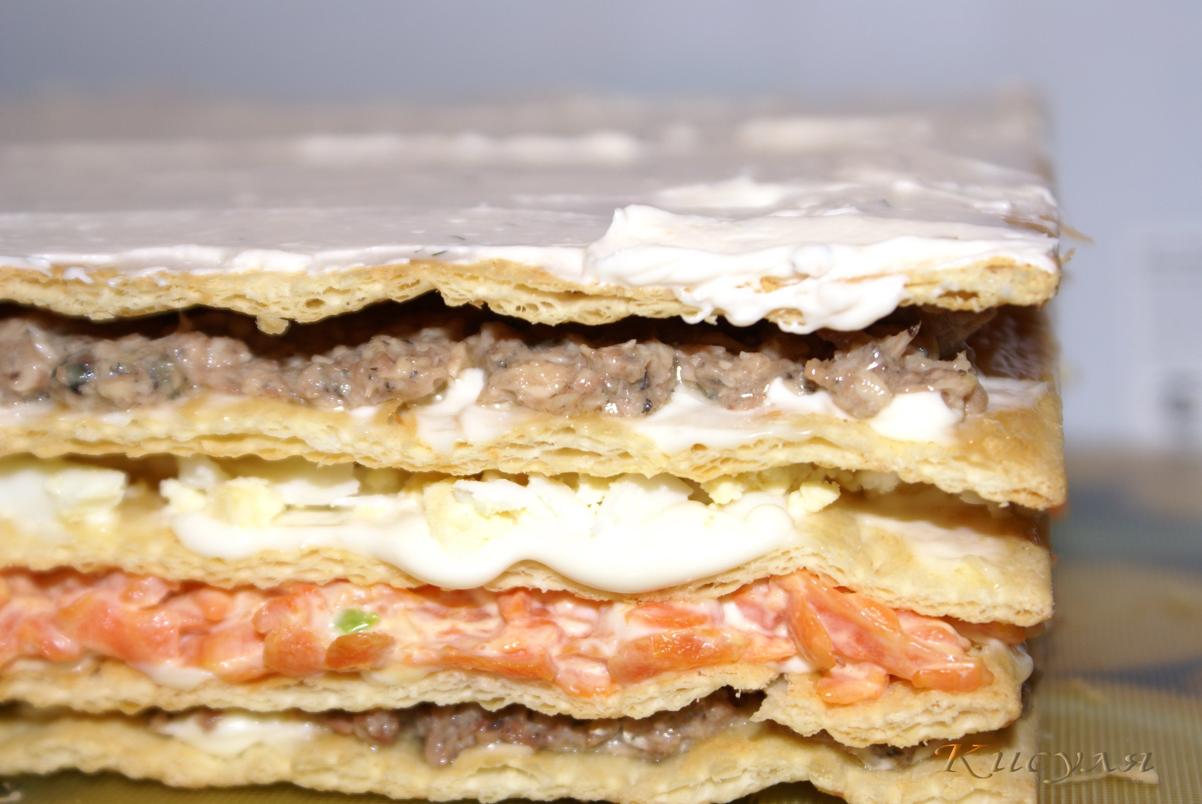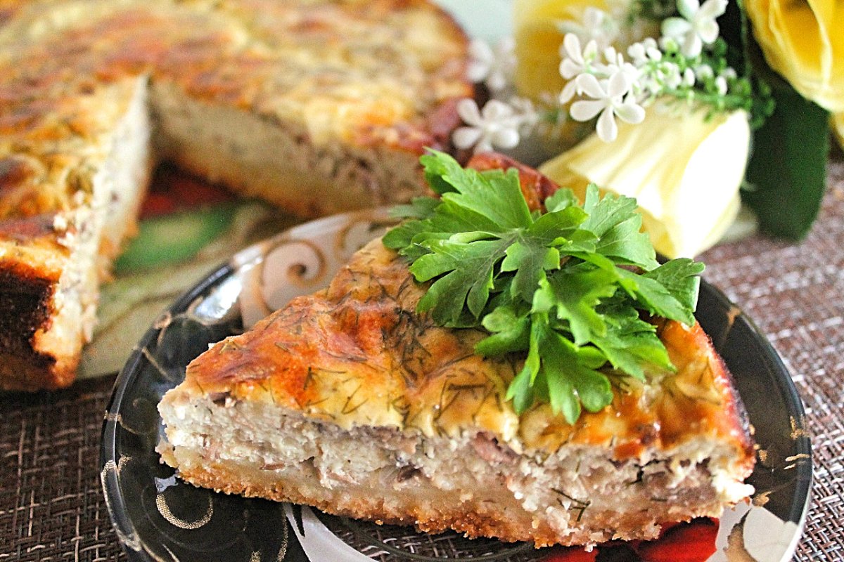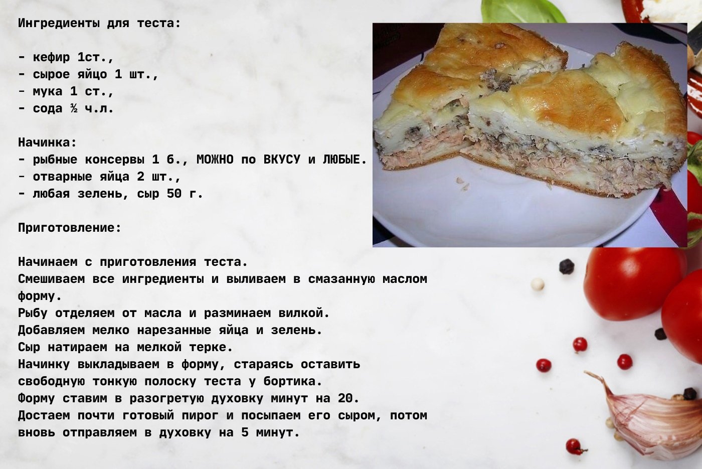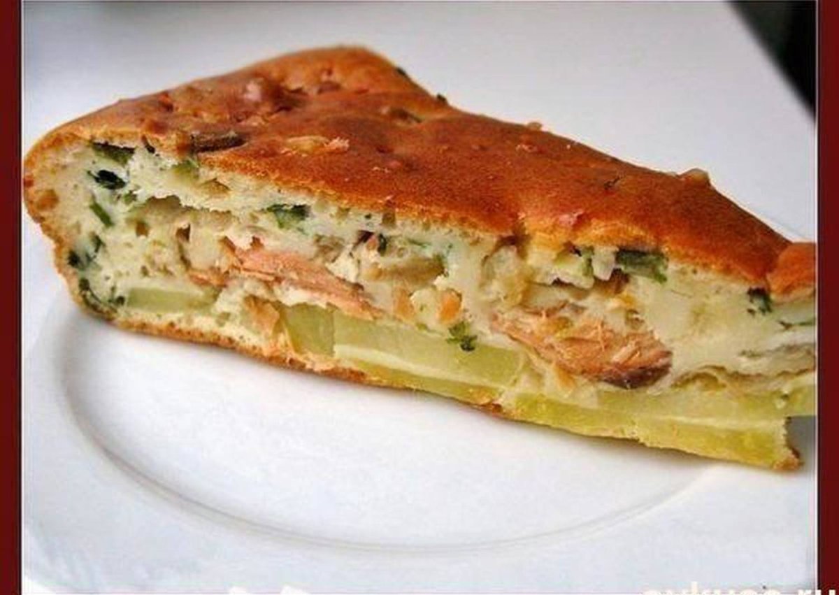 Заливной пирог на кефире с рыбной консервой и яйцом