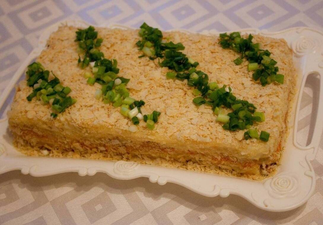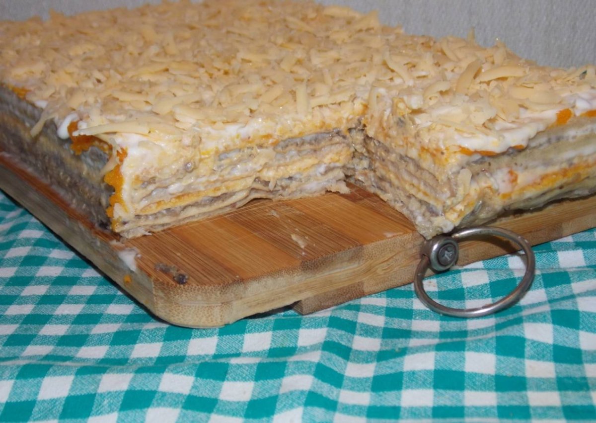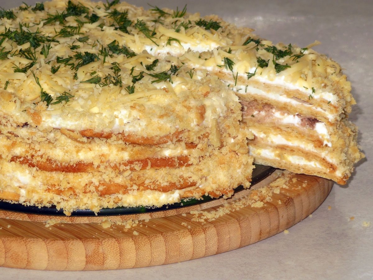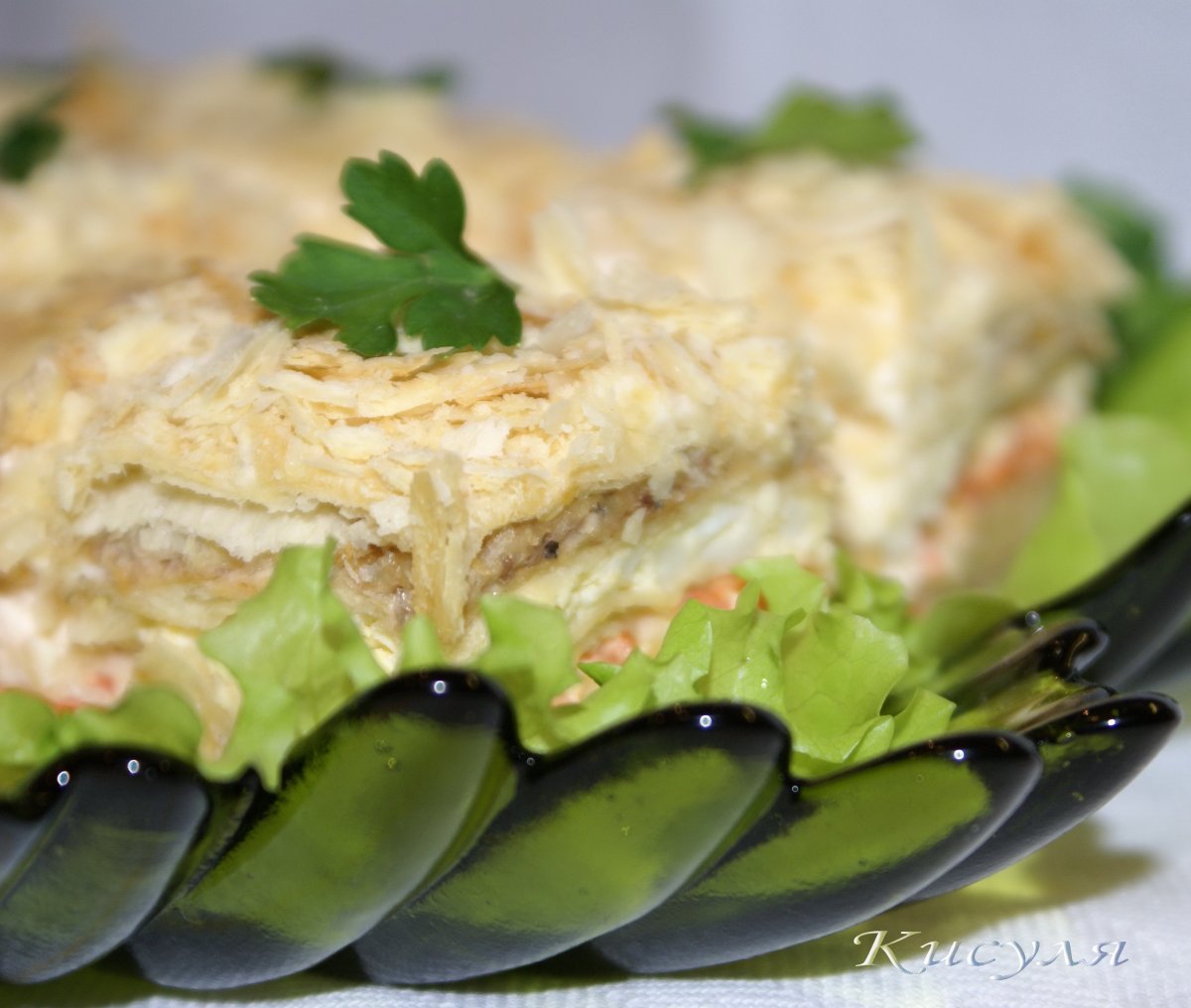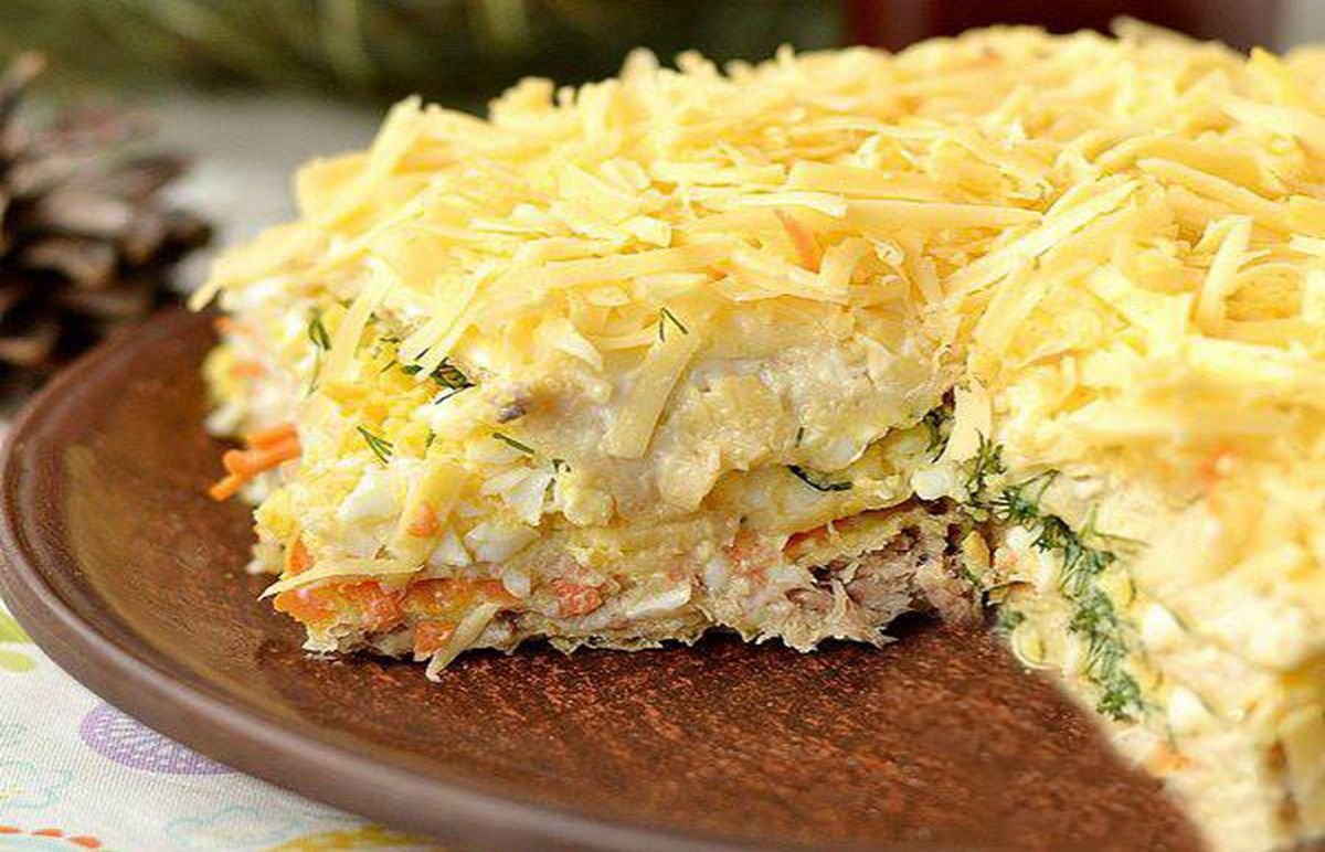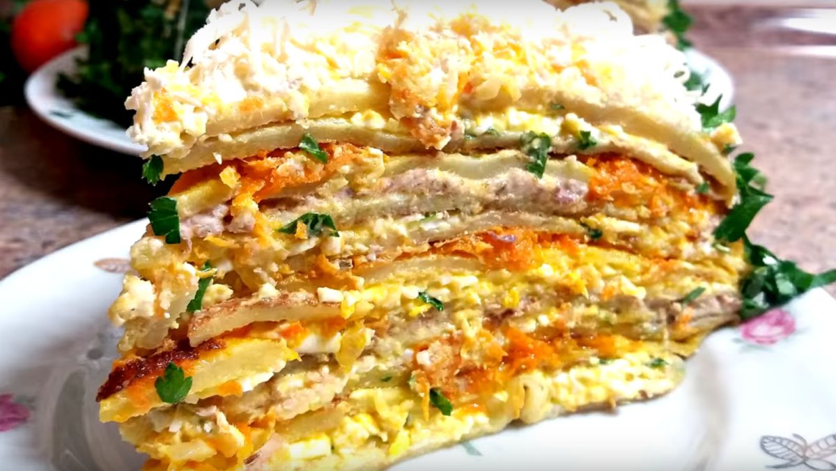 Заливной пирог на кефире с рыбной консервой и яйцом