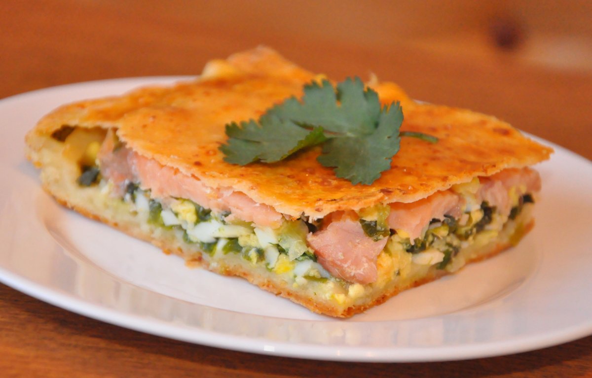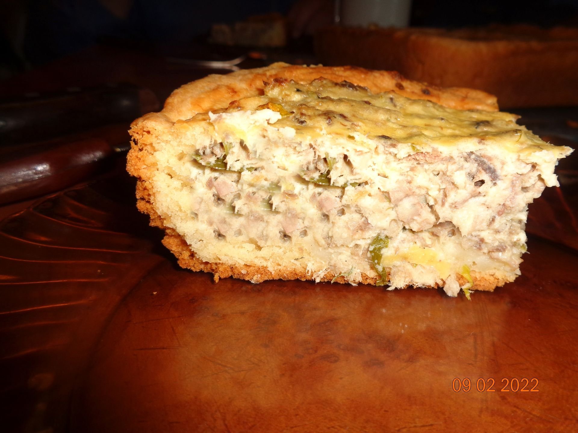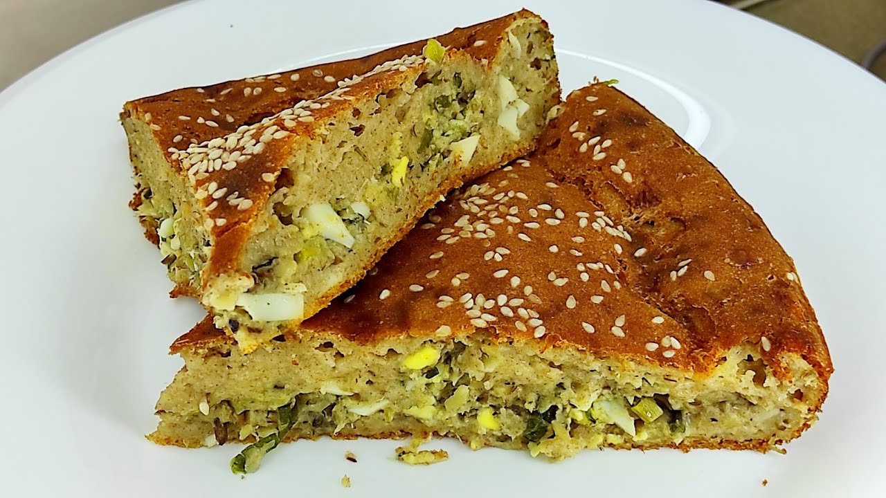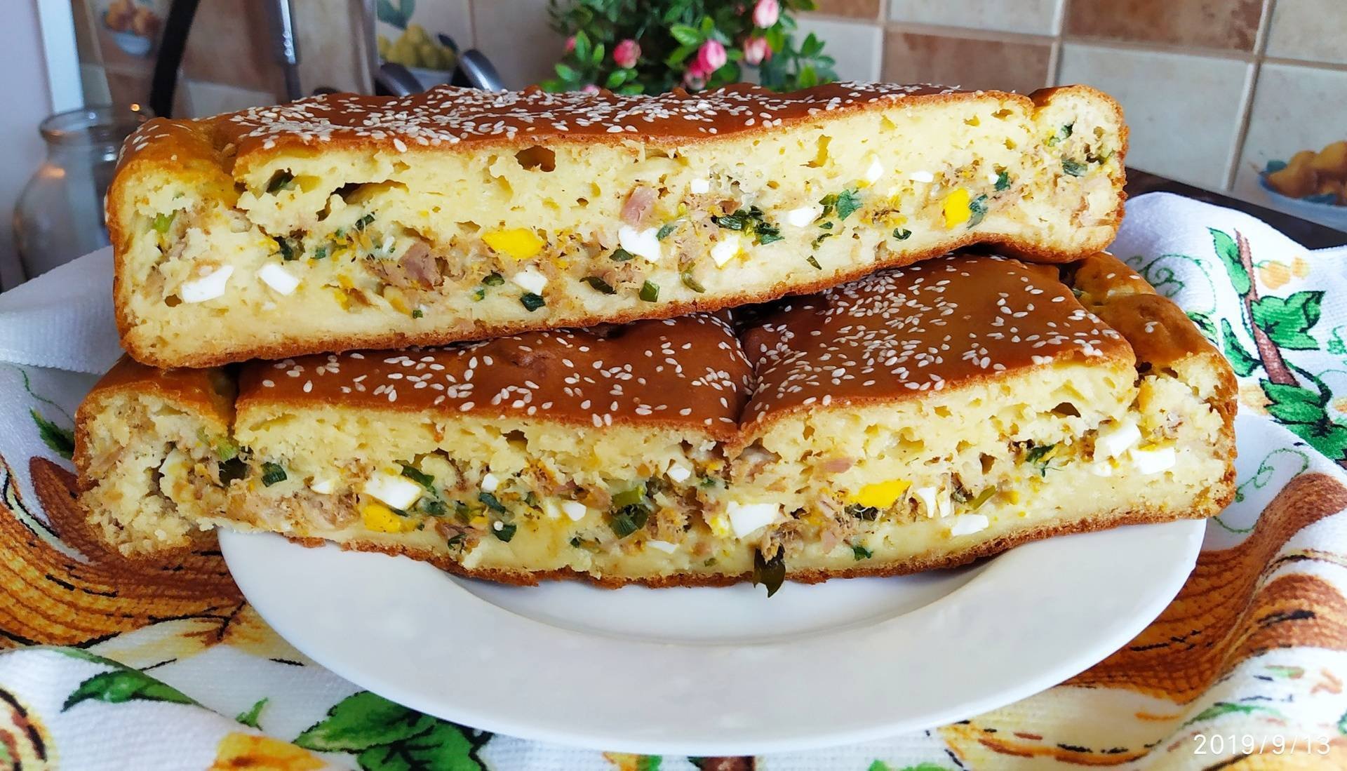 Быстрый пирог с тунцом, яйцом и зеленым луком