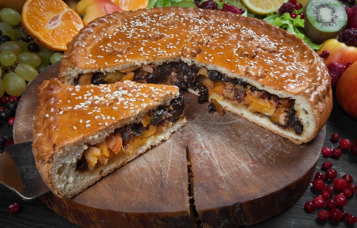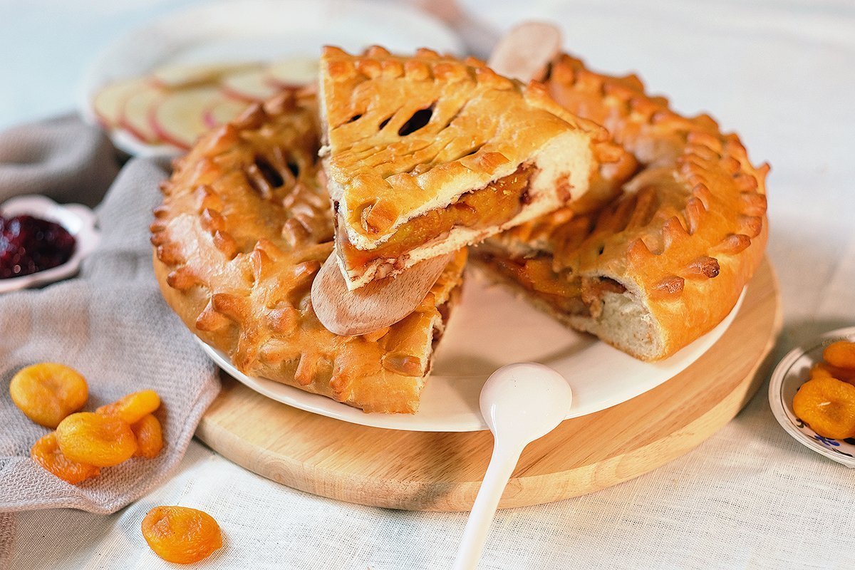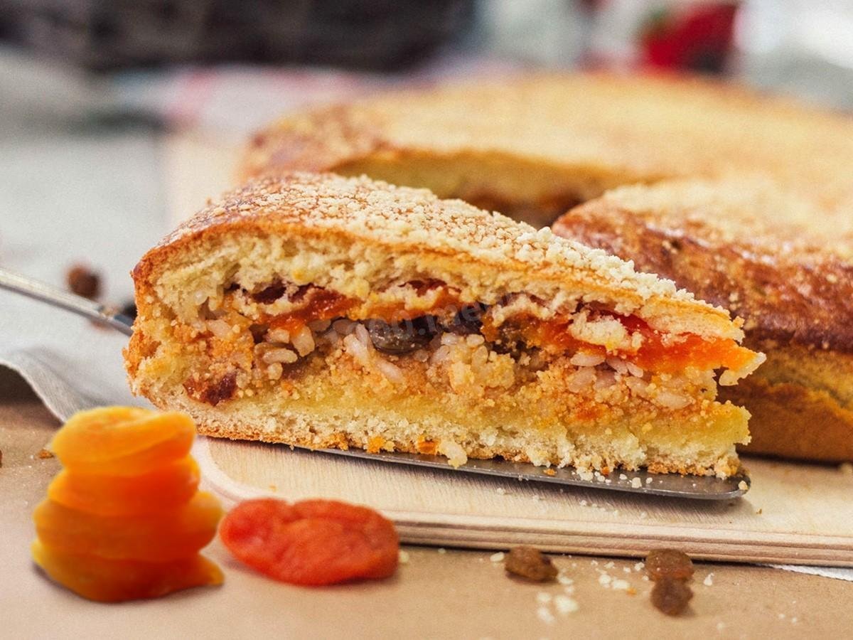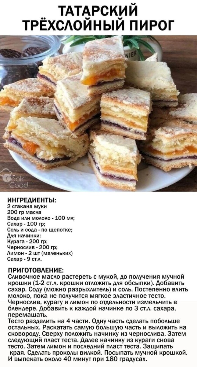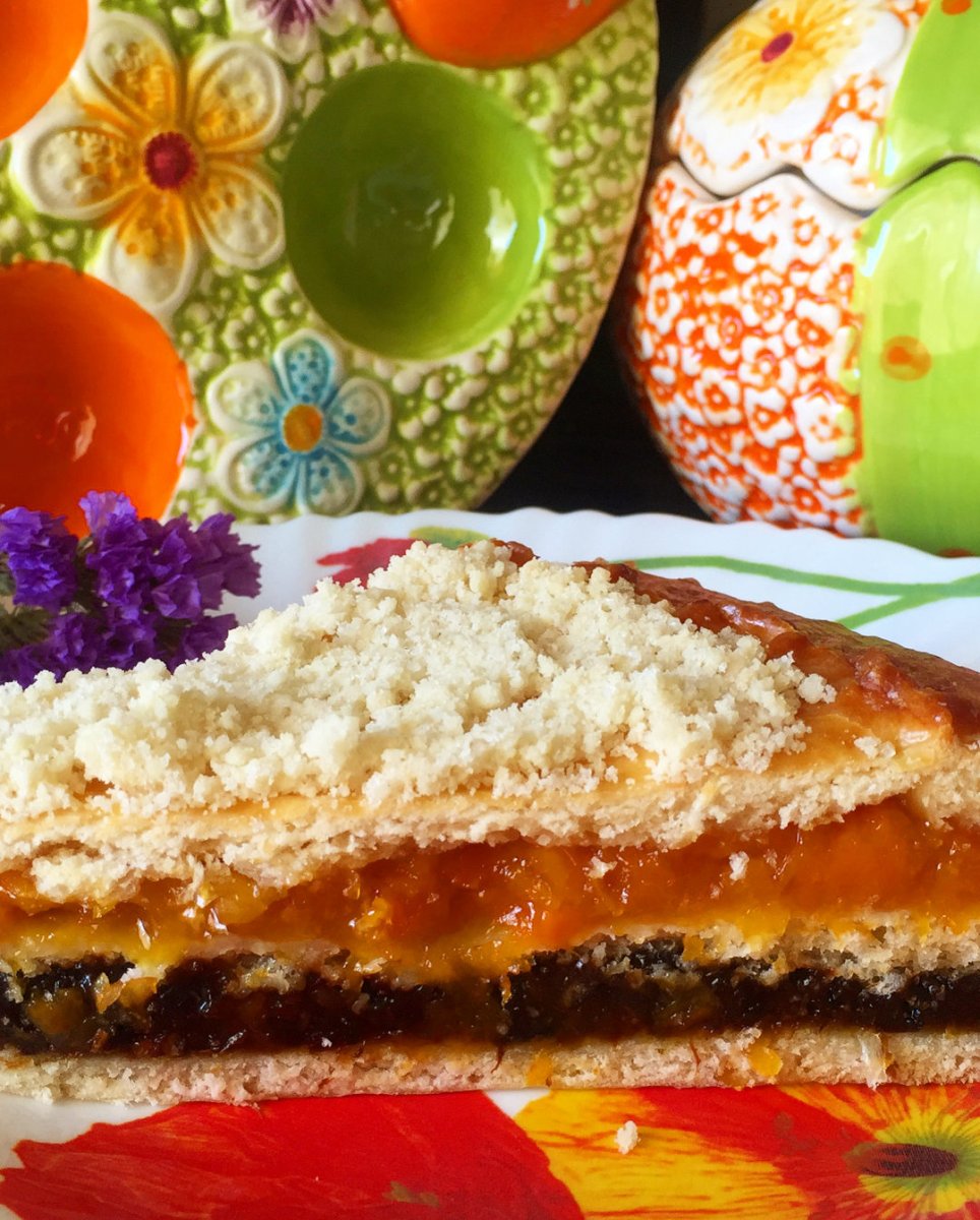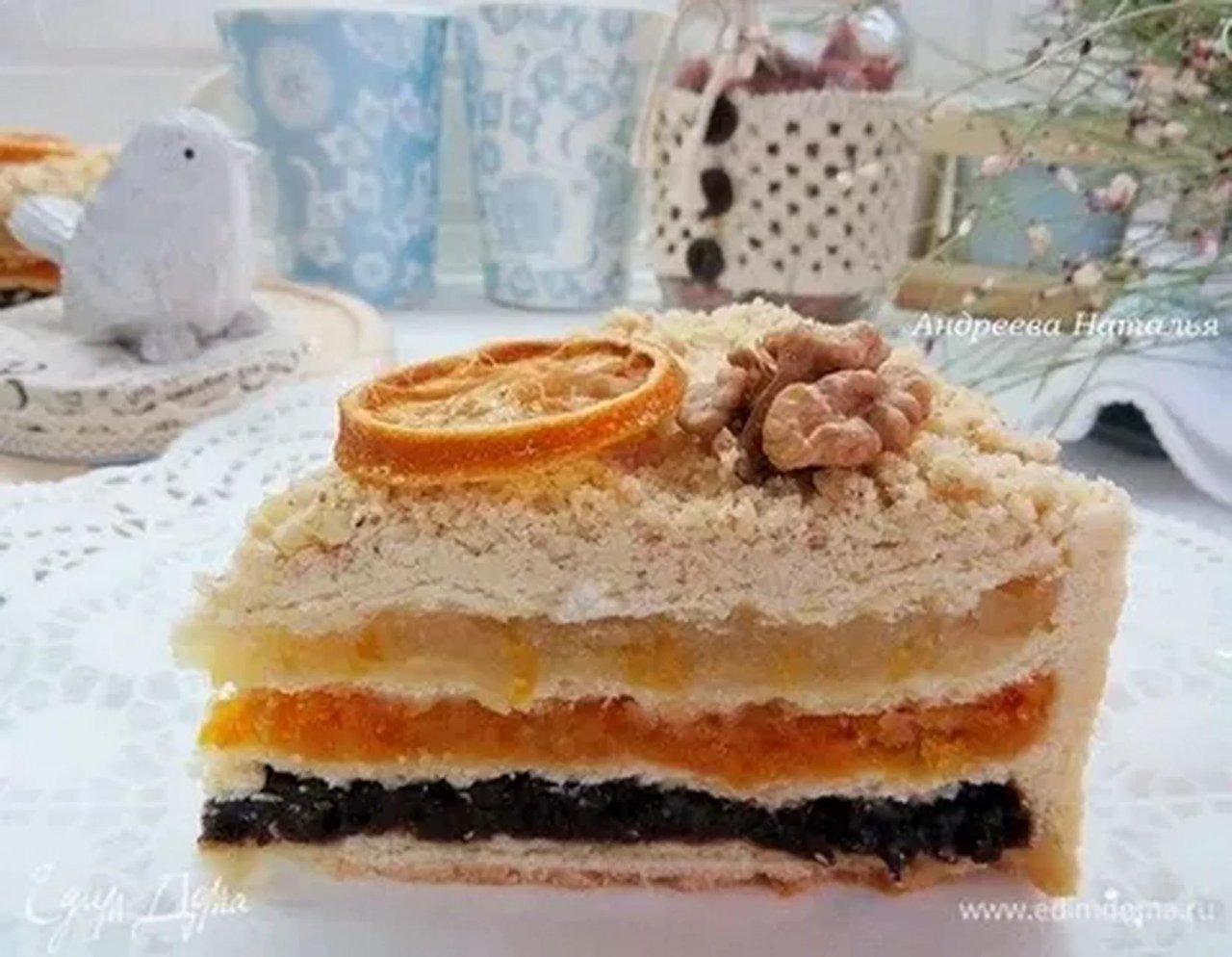 Трёхслойный пирог с курагой и черносливом и лимоном