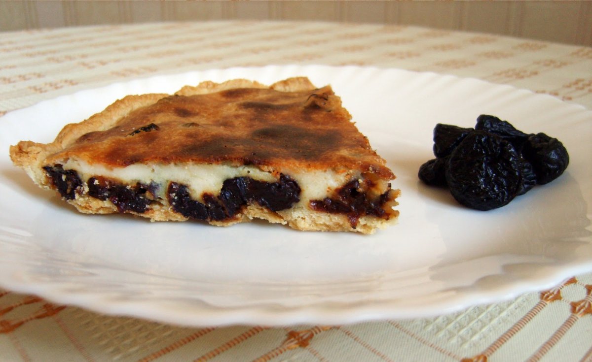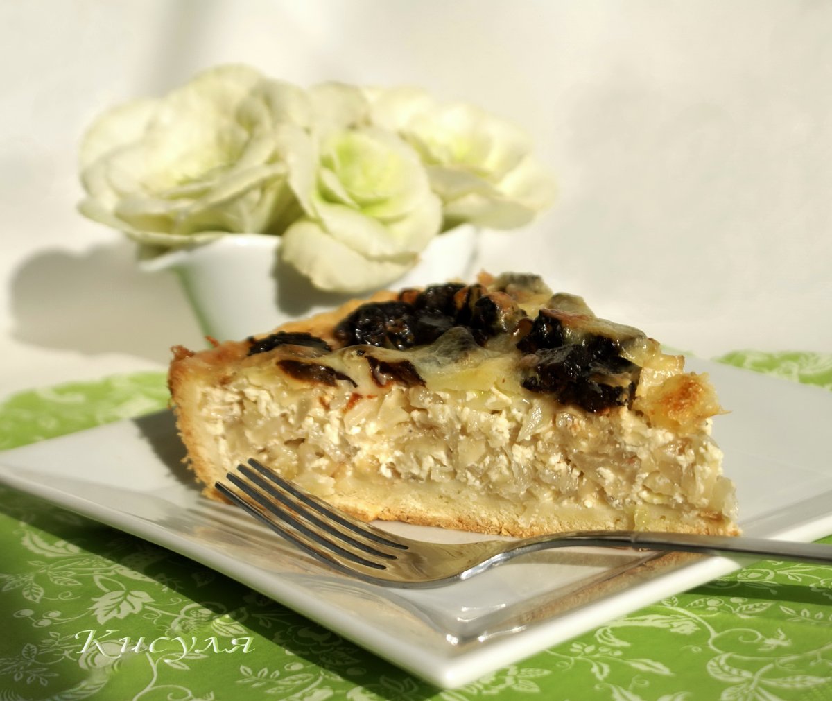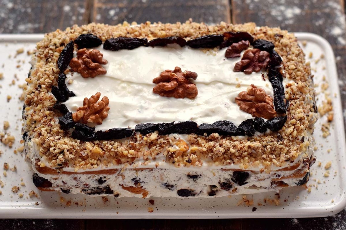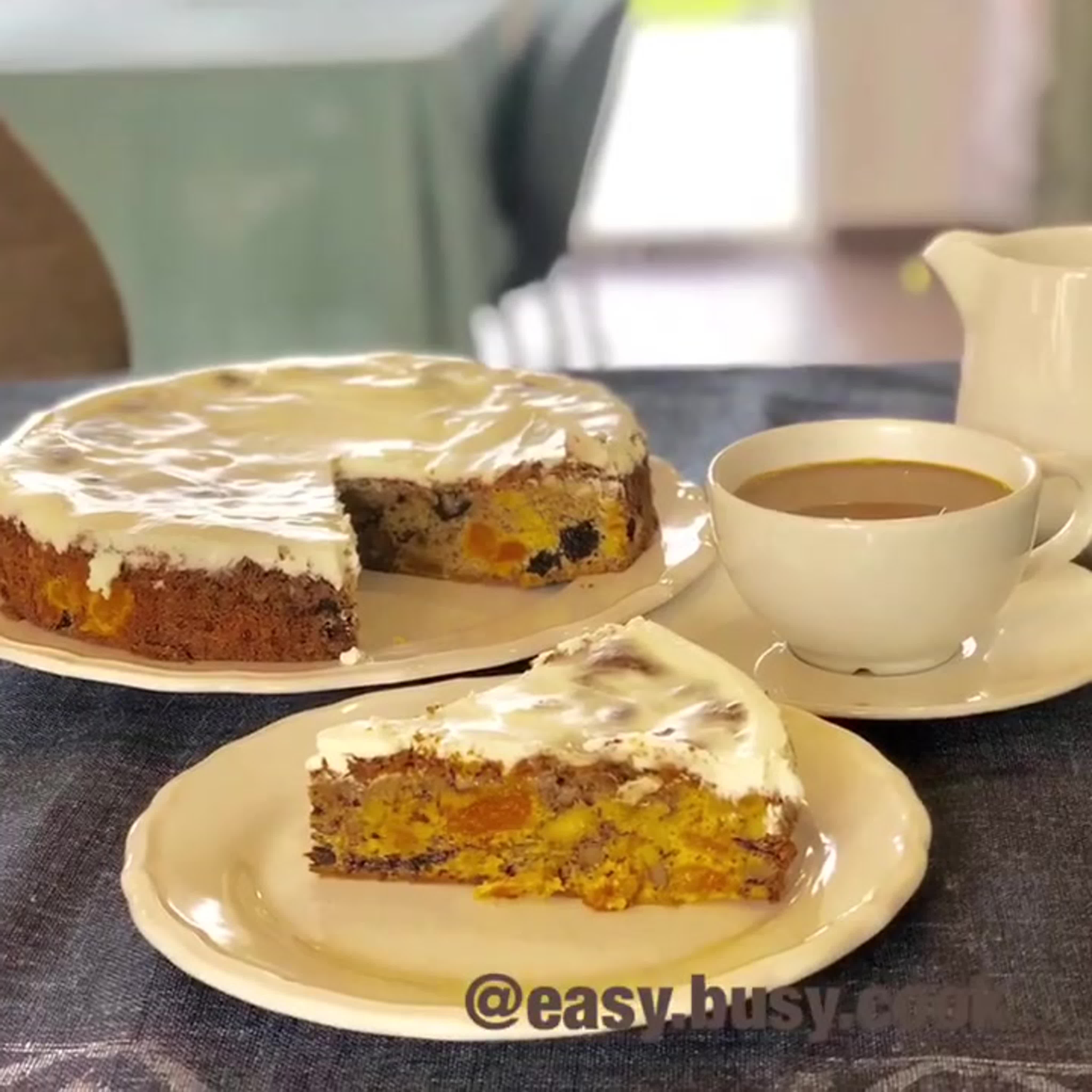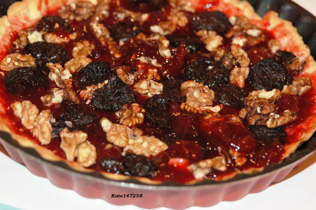 Трёхслойный пирог с курагой и черносливом и лимоном