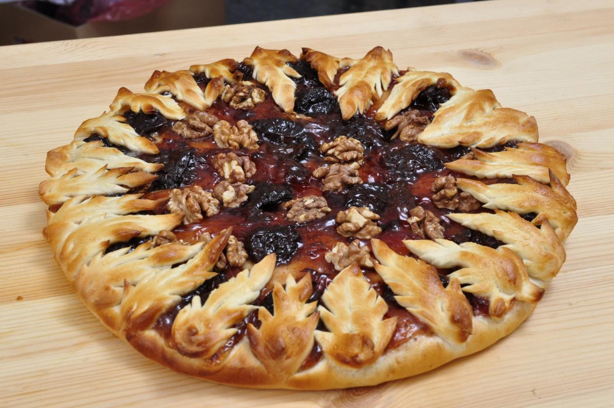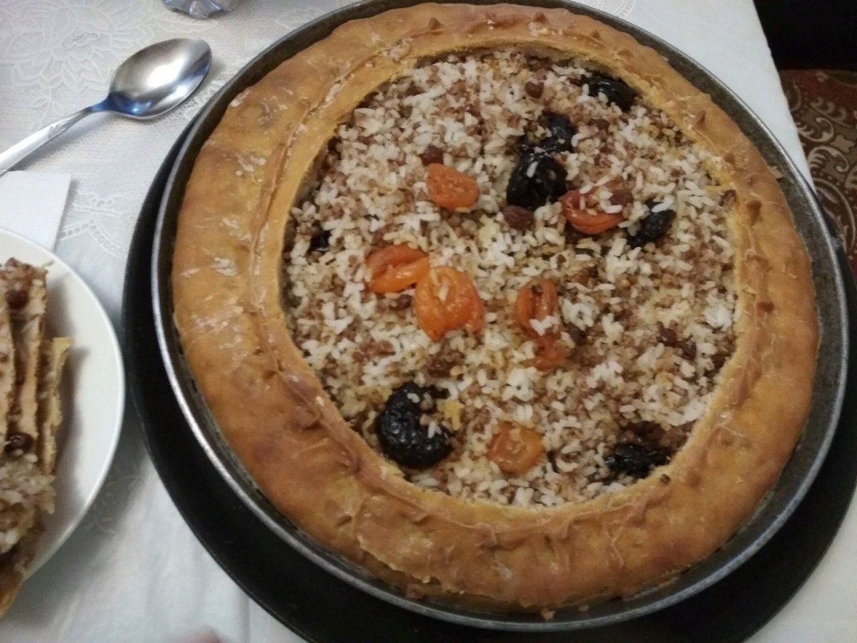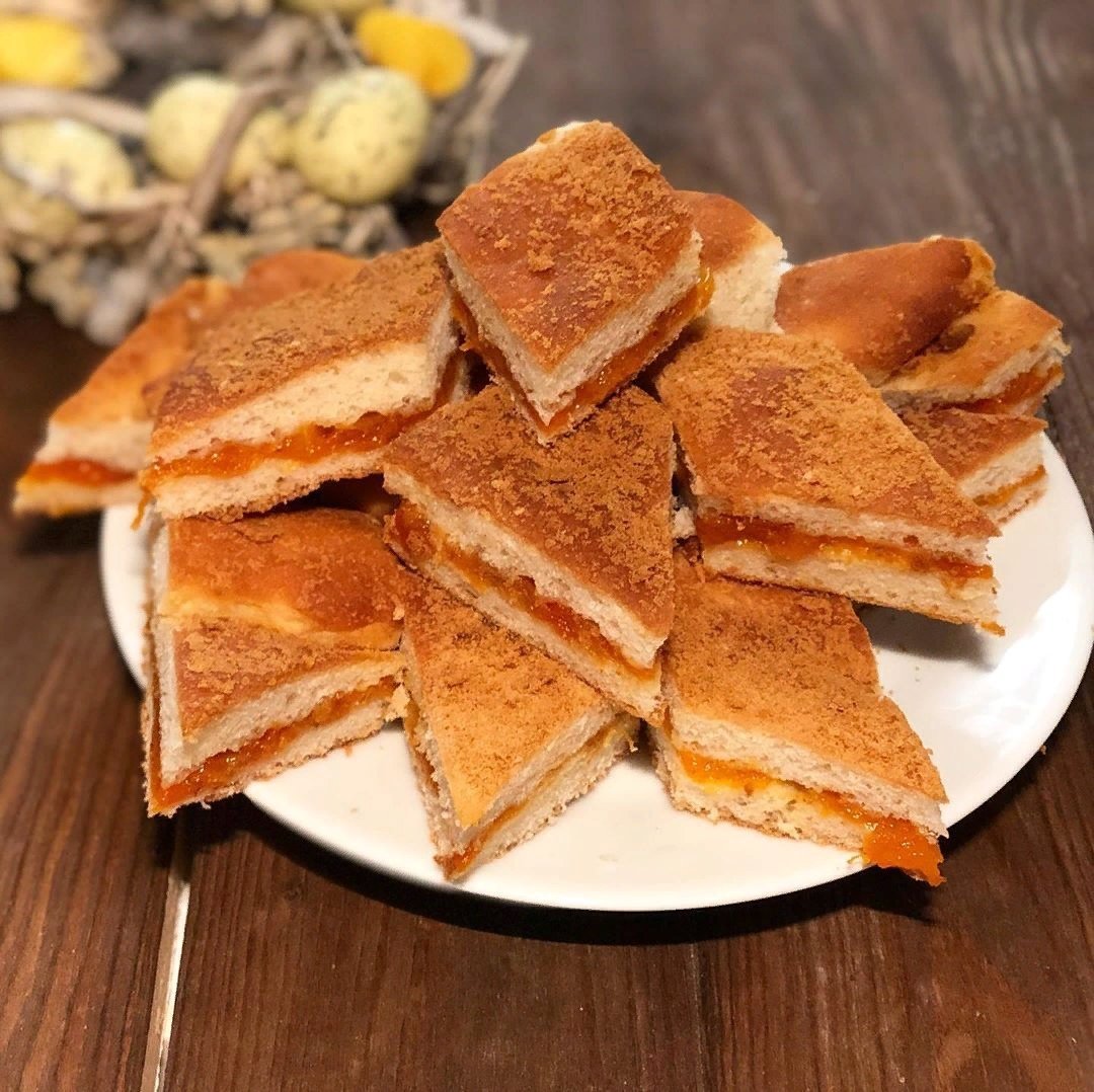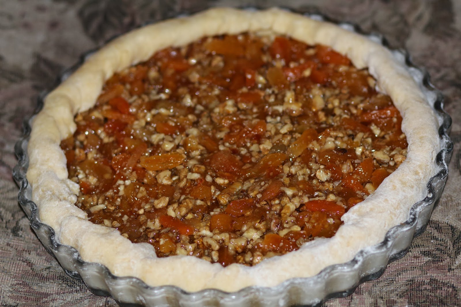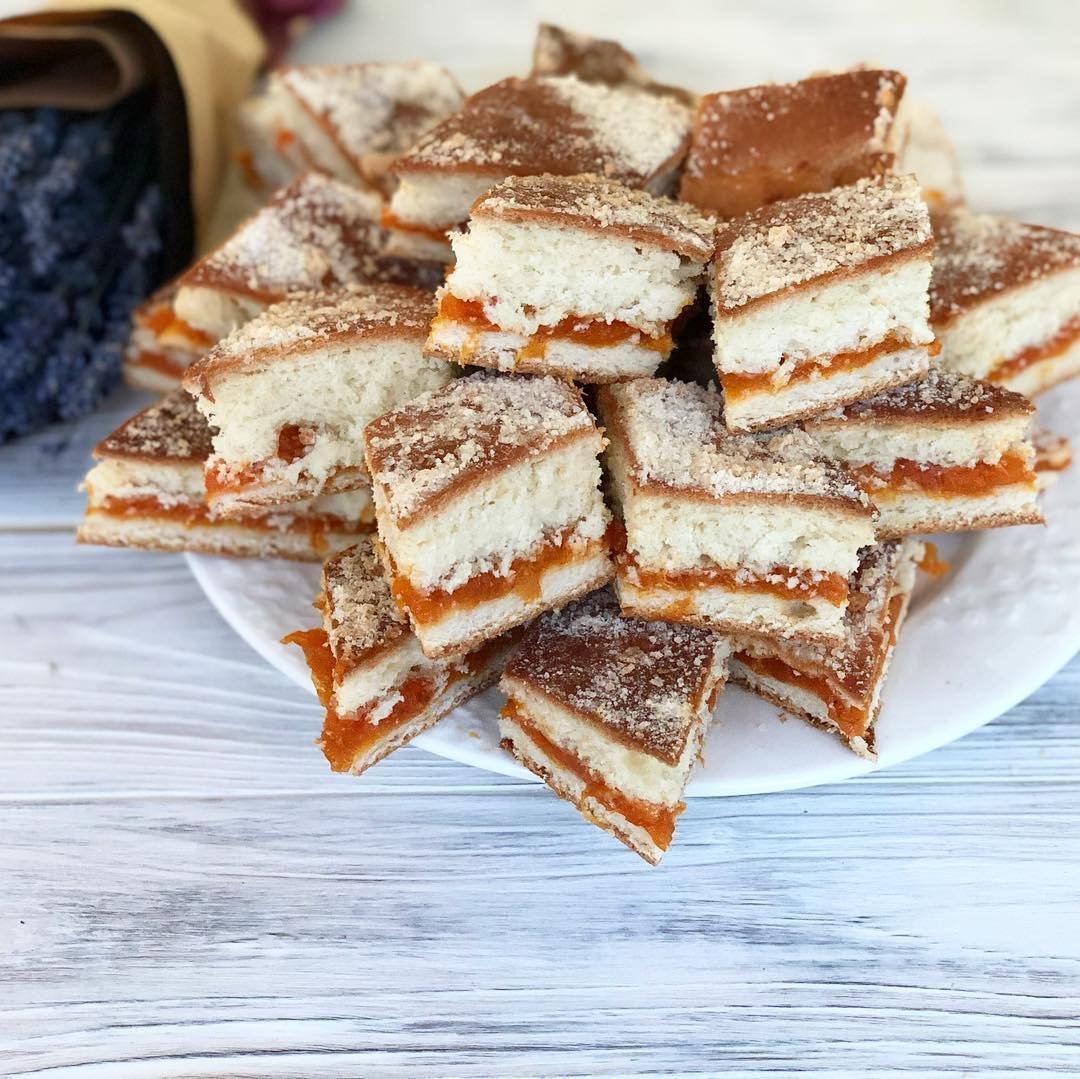 Трёхслойный пирог с курагой и черносливом и лимоном