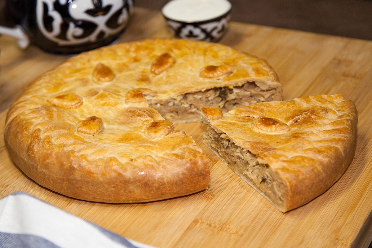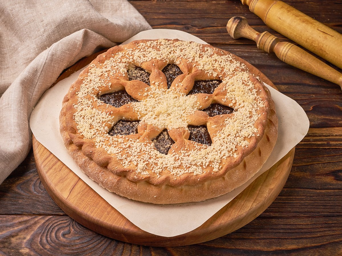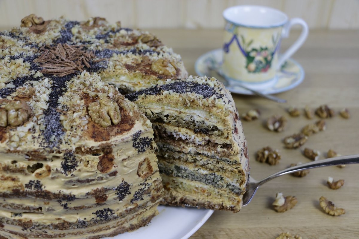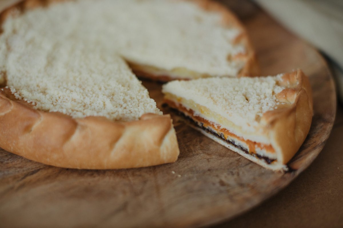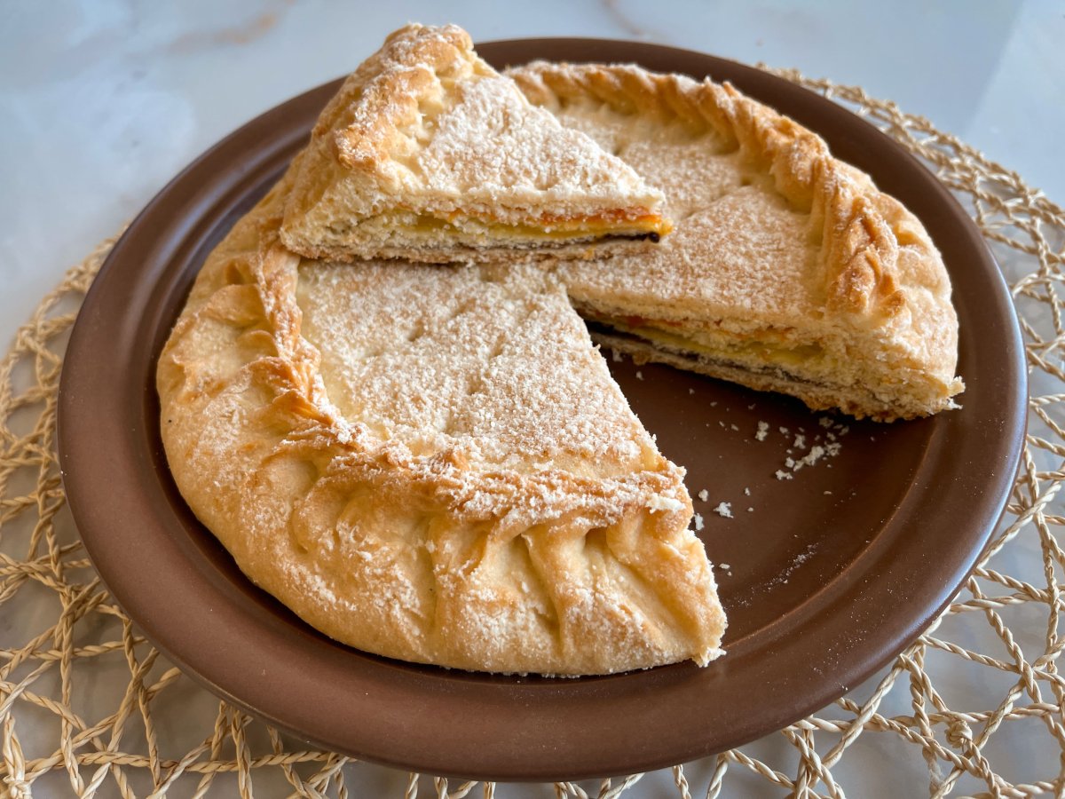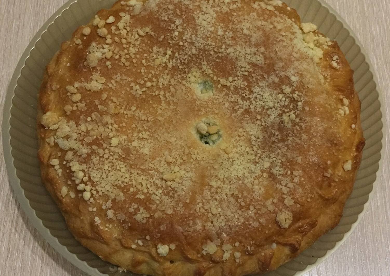 Трёхслойный пирог с курагой и черносливом и лимоном
