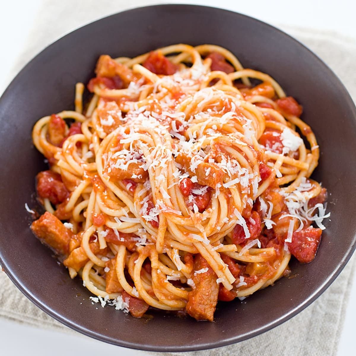 Паста карбонара, болоньезе, спагетти с курицей и грибами фото