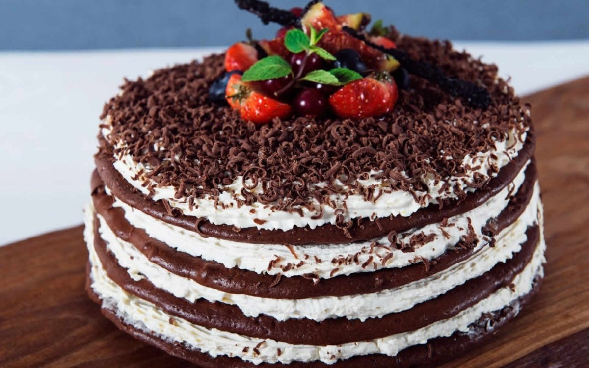 Шоколадный торт с белым кремом