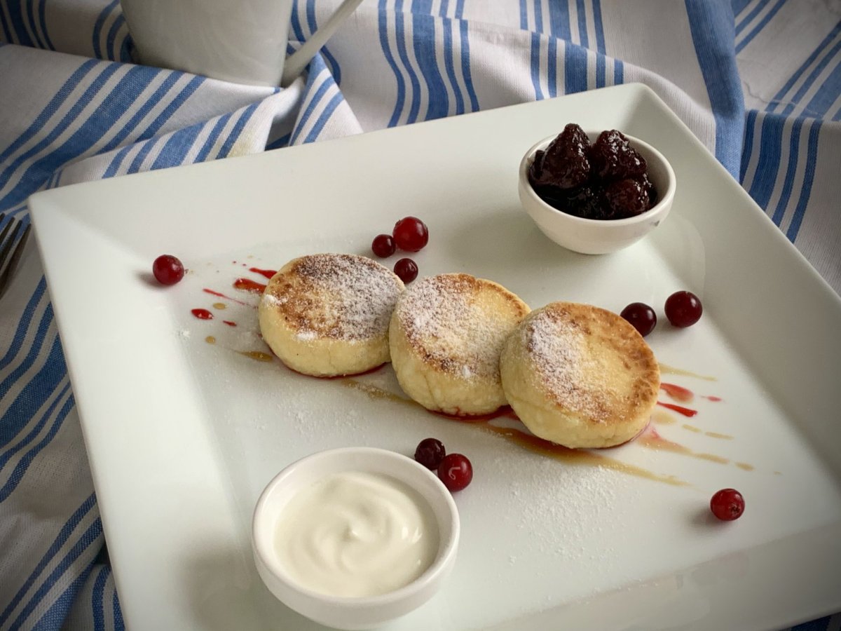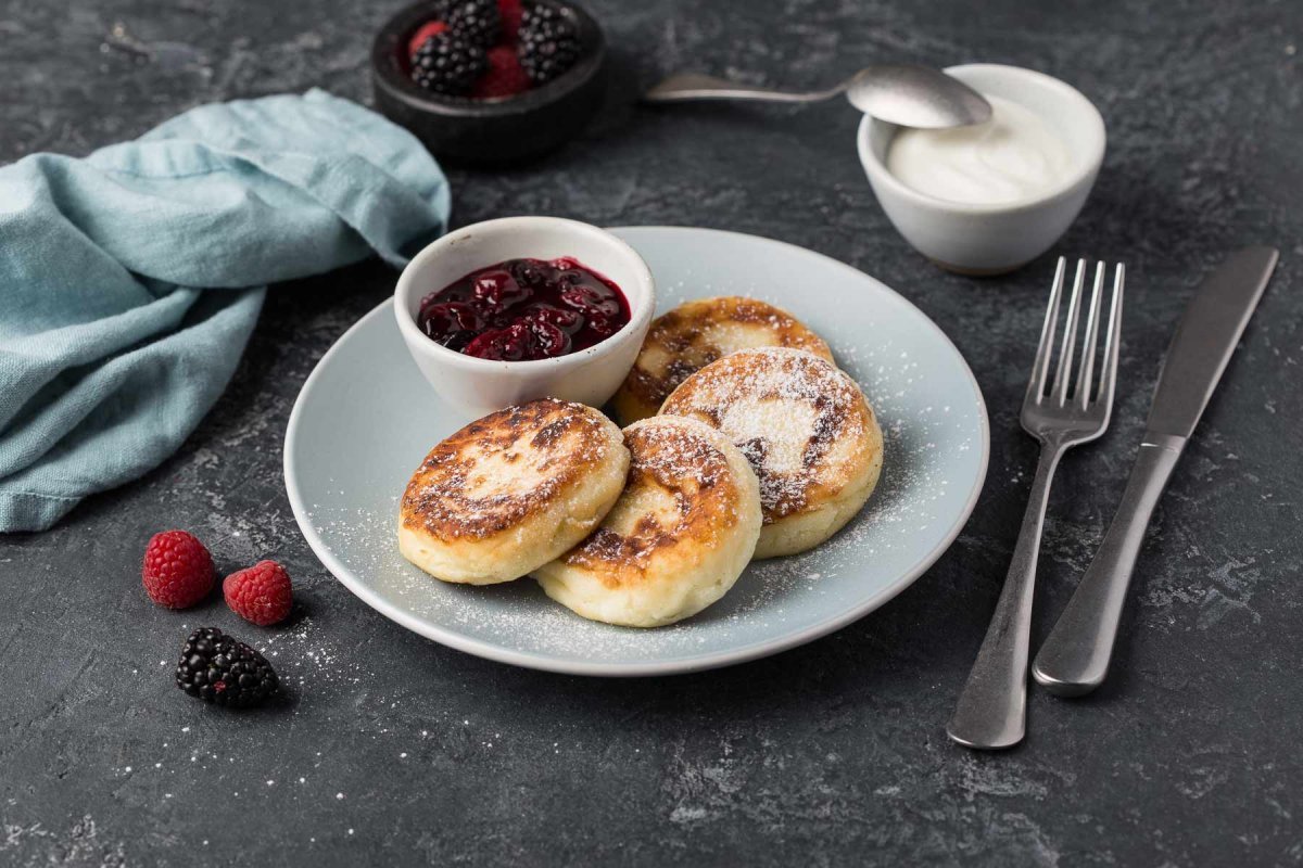 Сырники со сметаной и ягодами