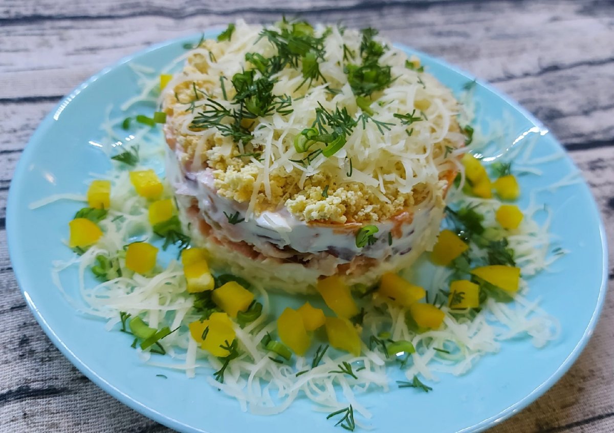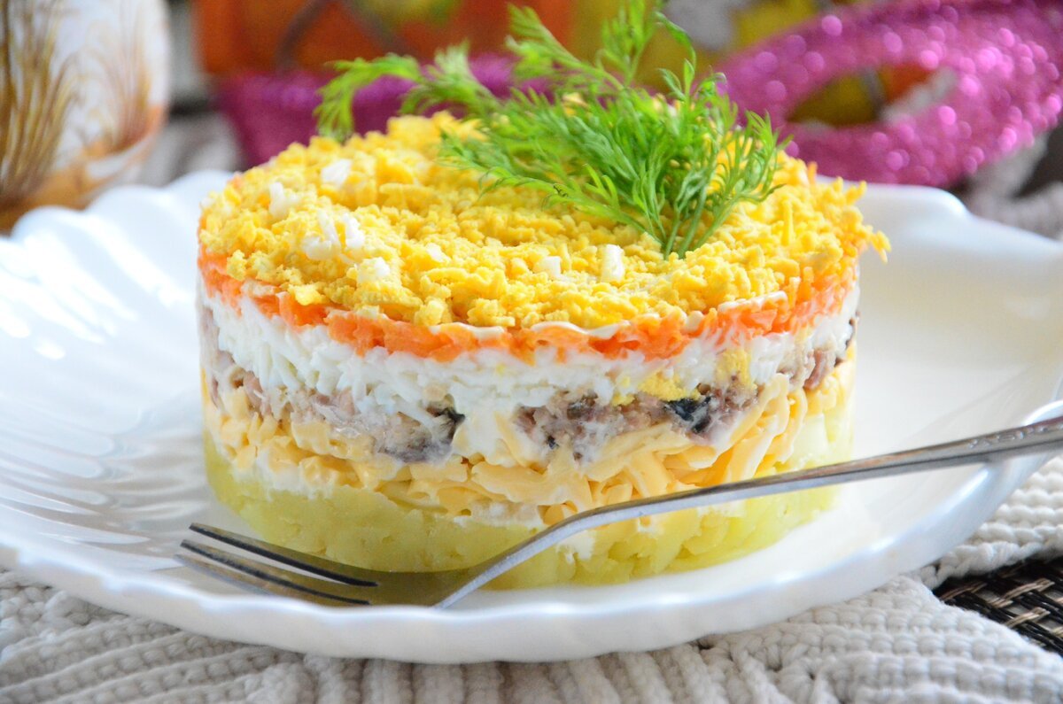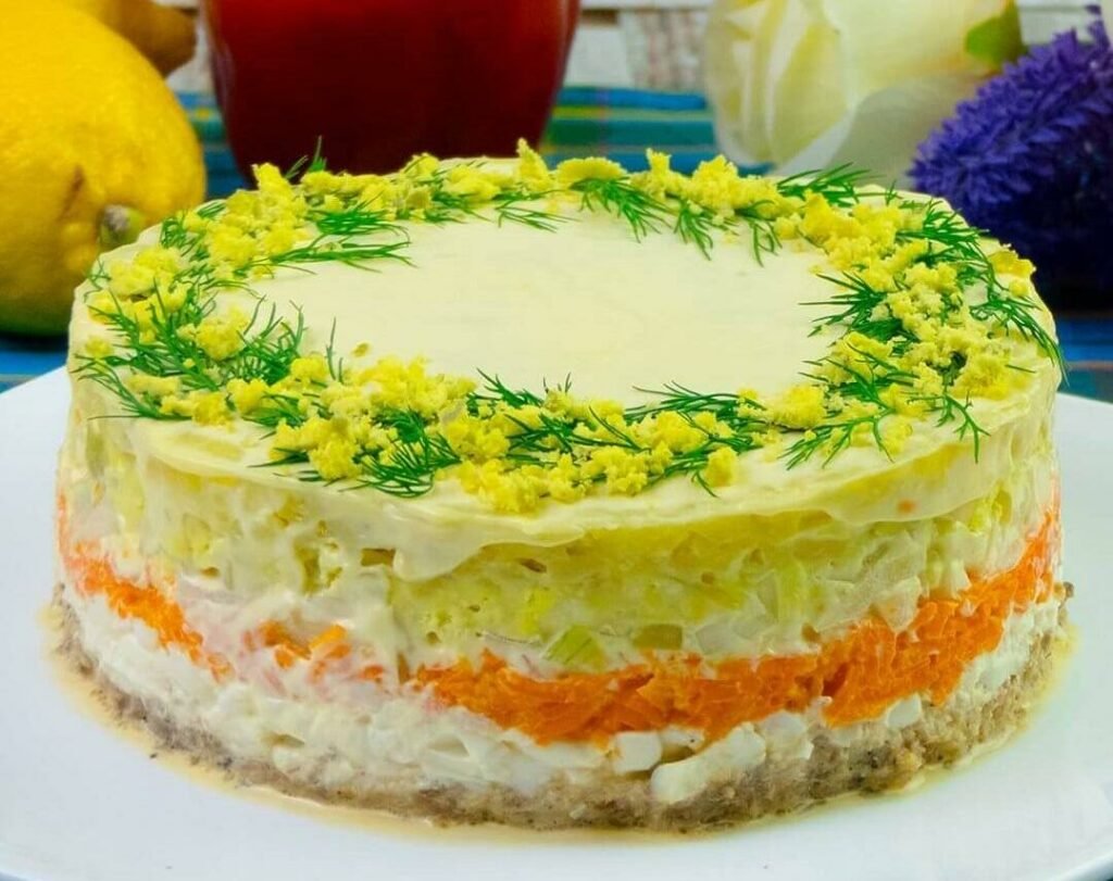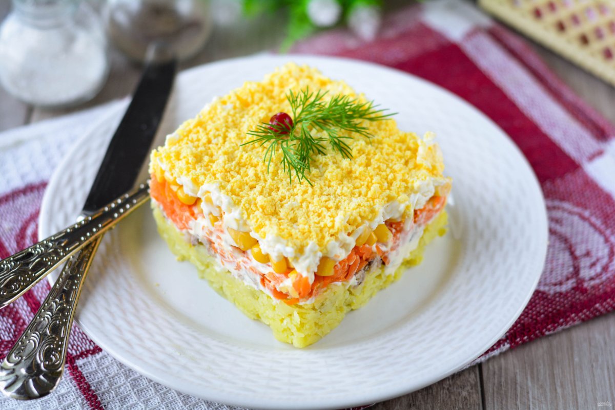 Пошаговый рецепт салата Мимоза с плавленным сыром
