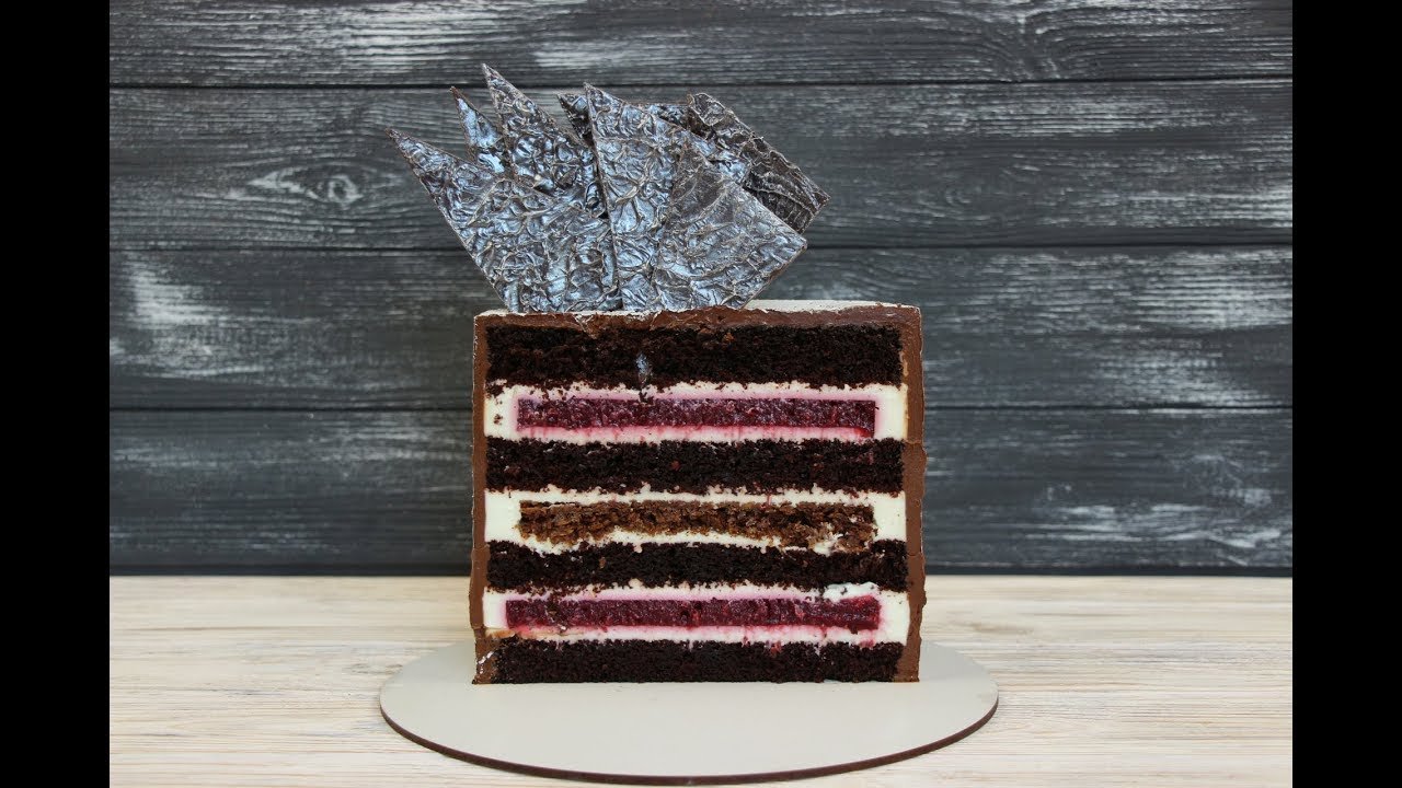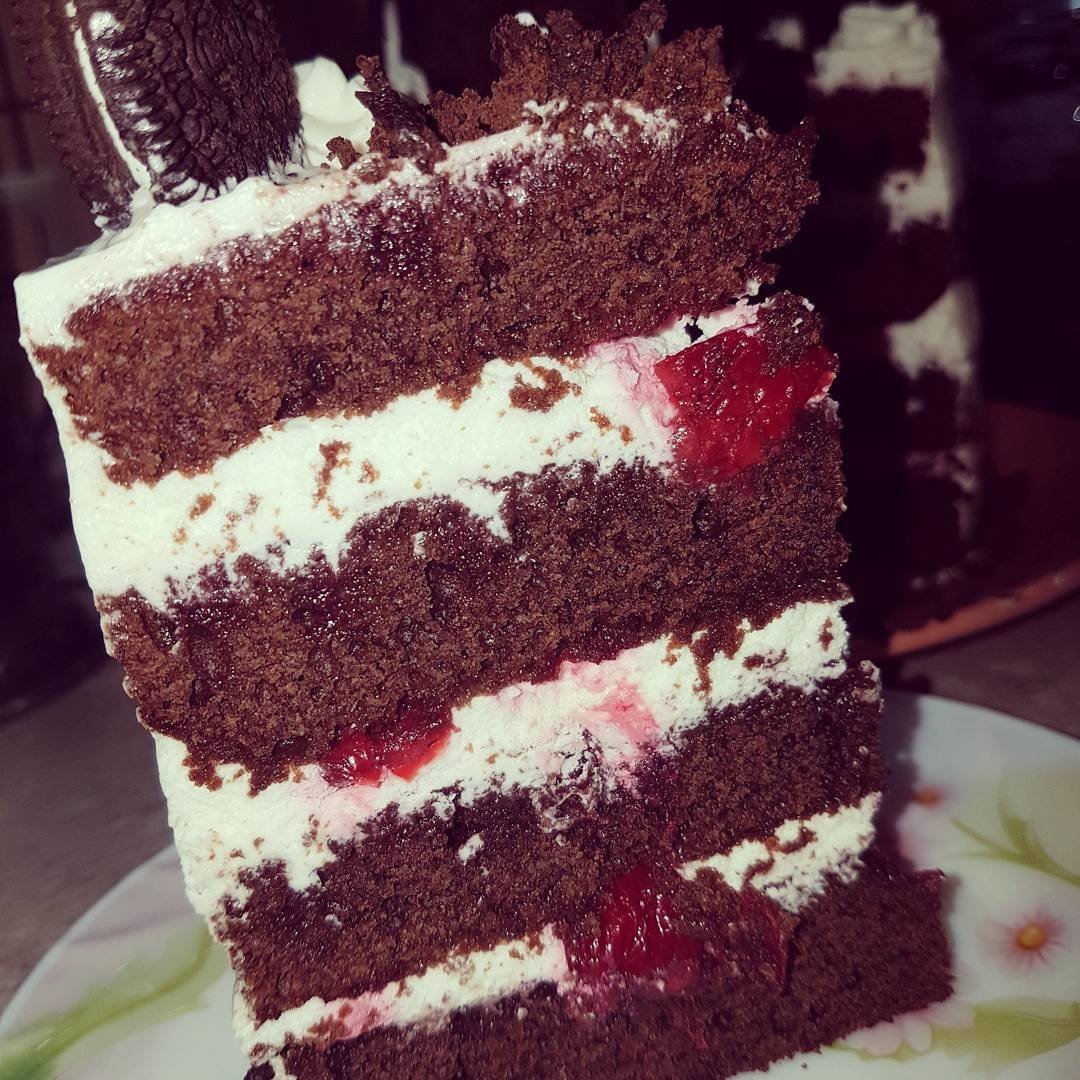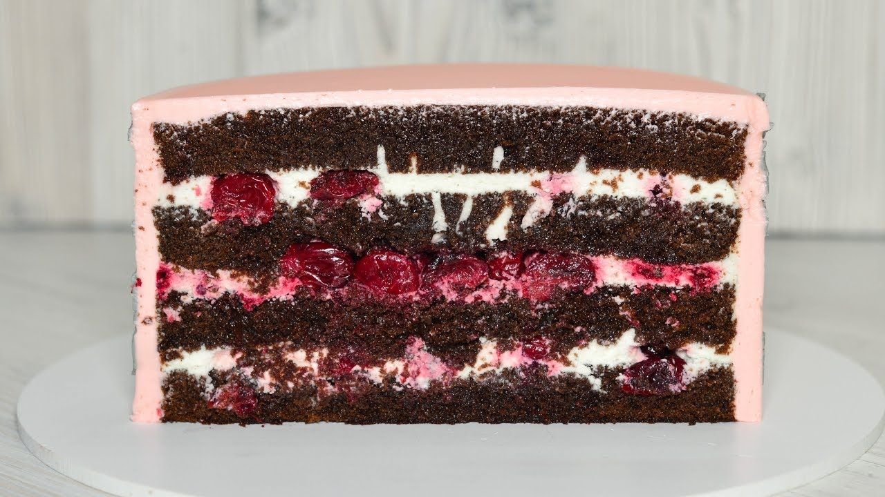 Шоколадный бисквит Вишневое конфи крем чиз вишнёвая