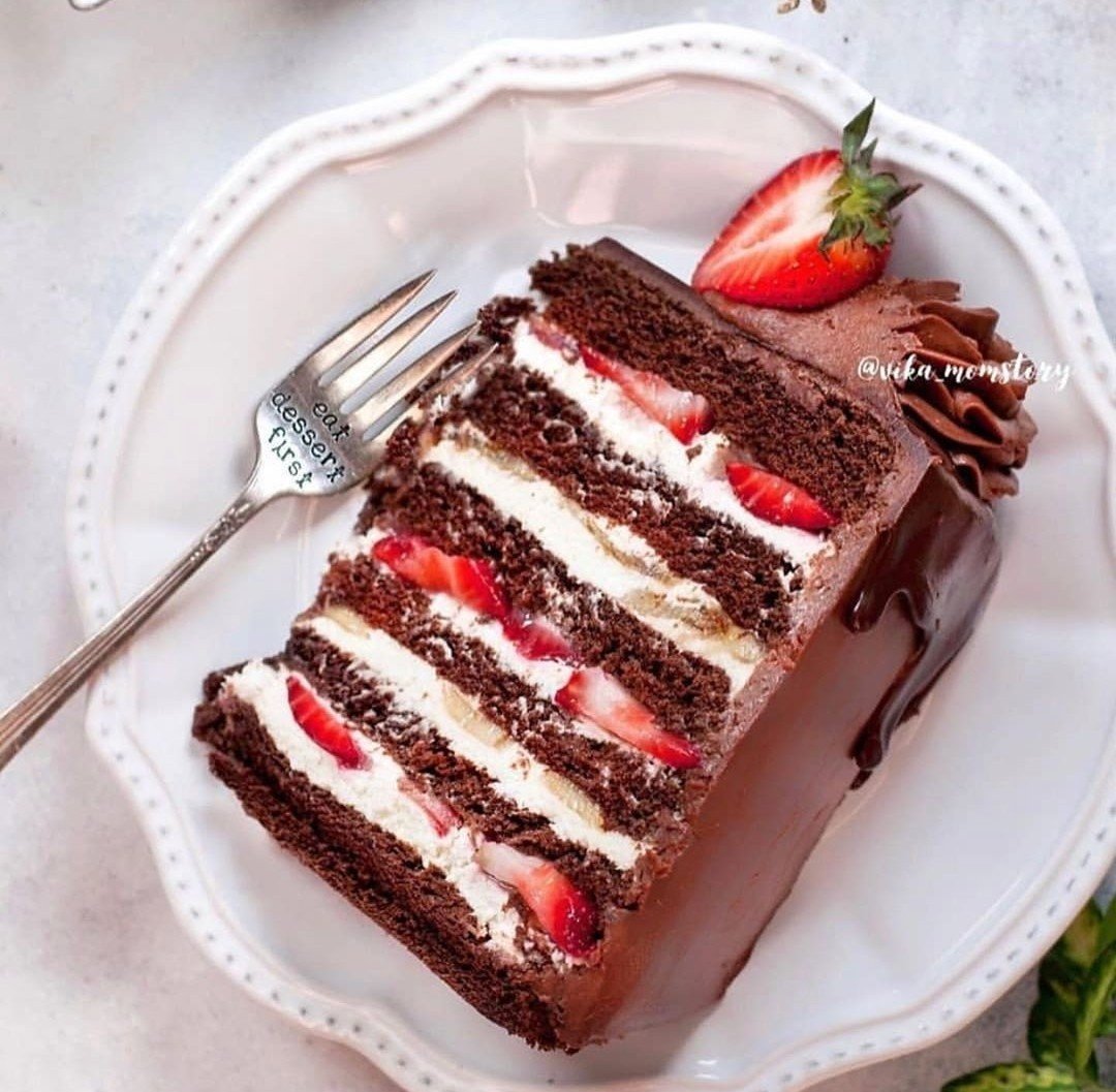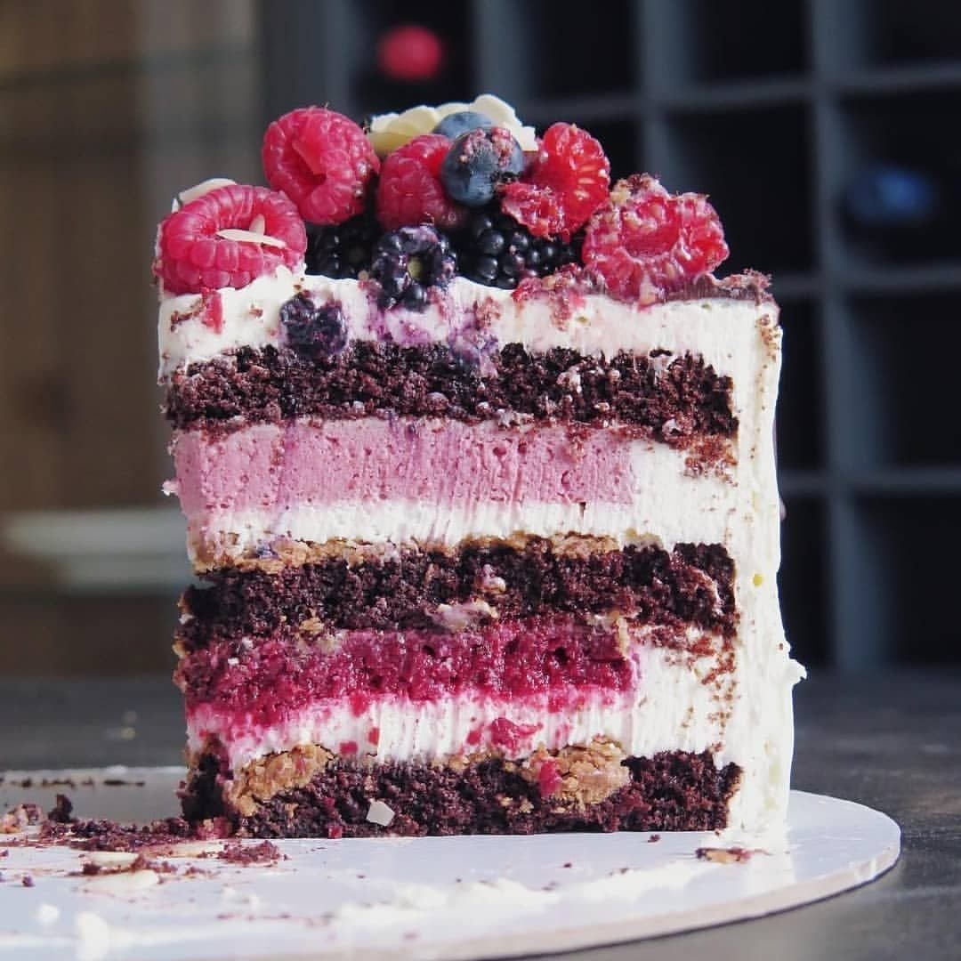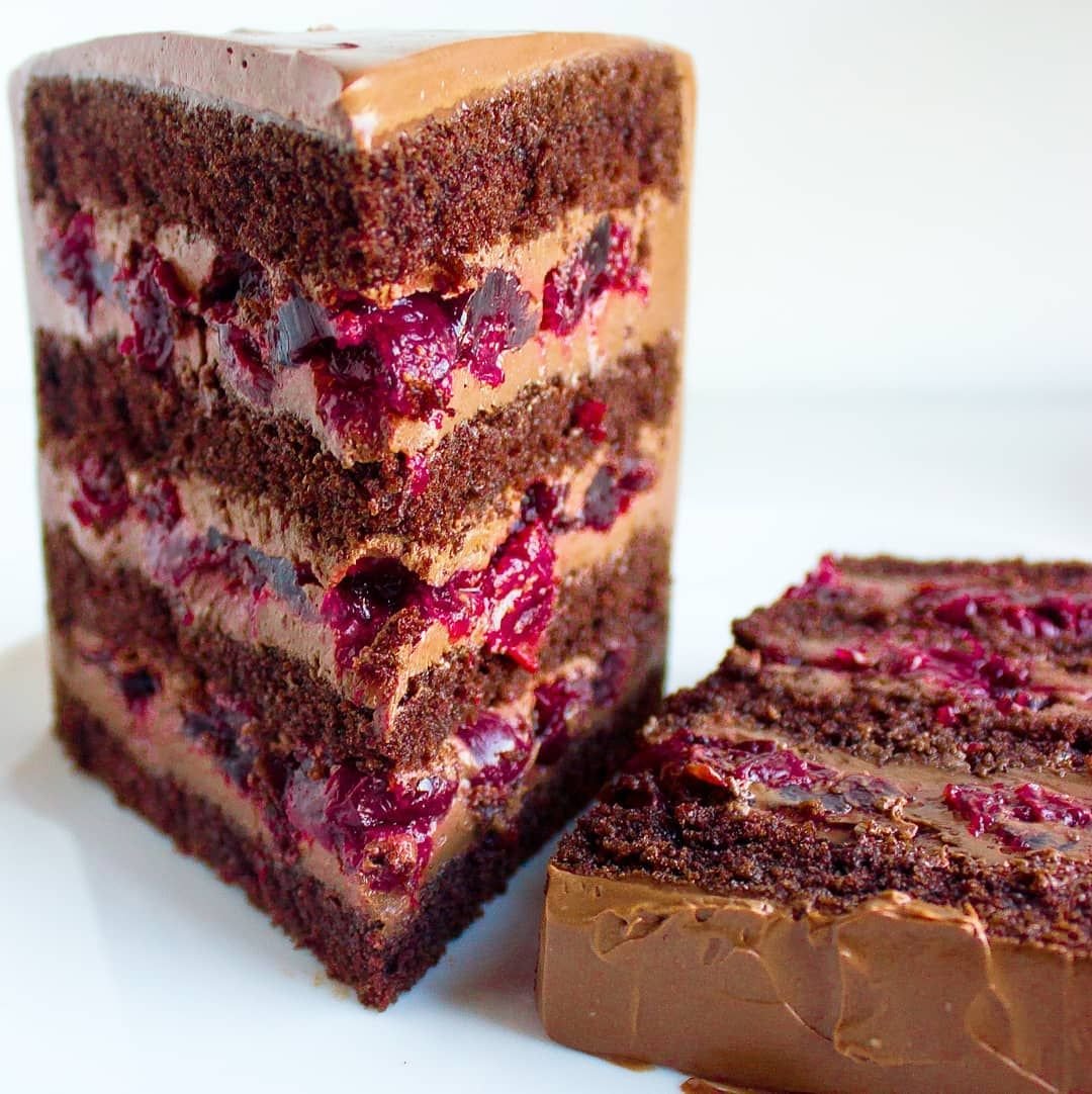 Шоколадный бисквит Вишневое конфи крем чиз вишнёвая