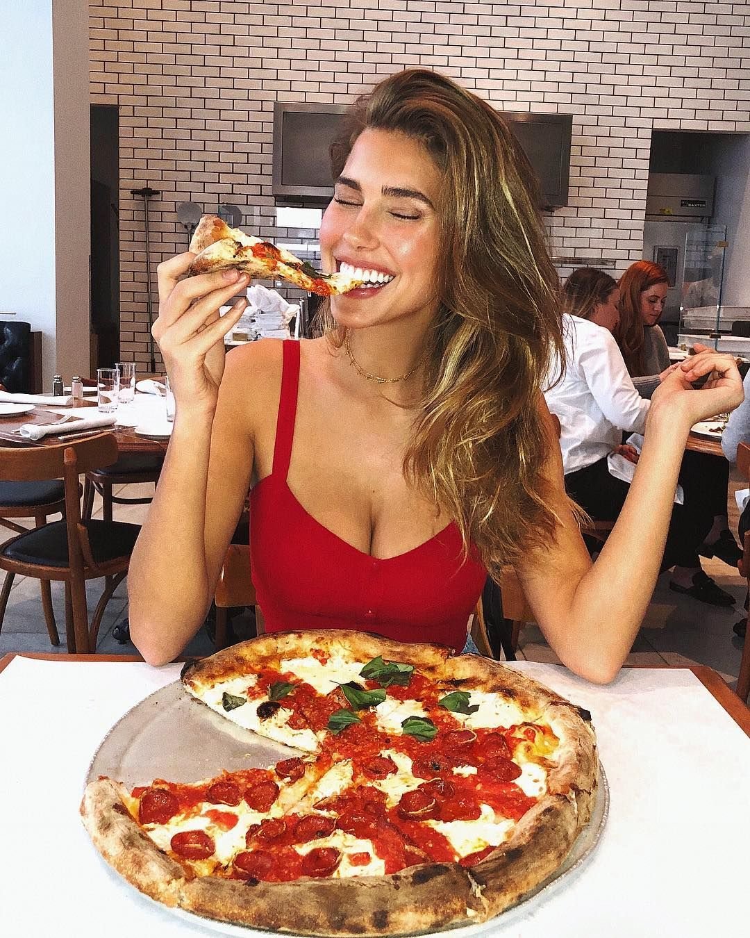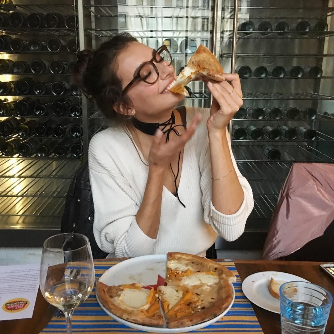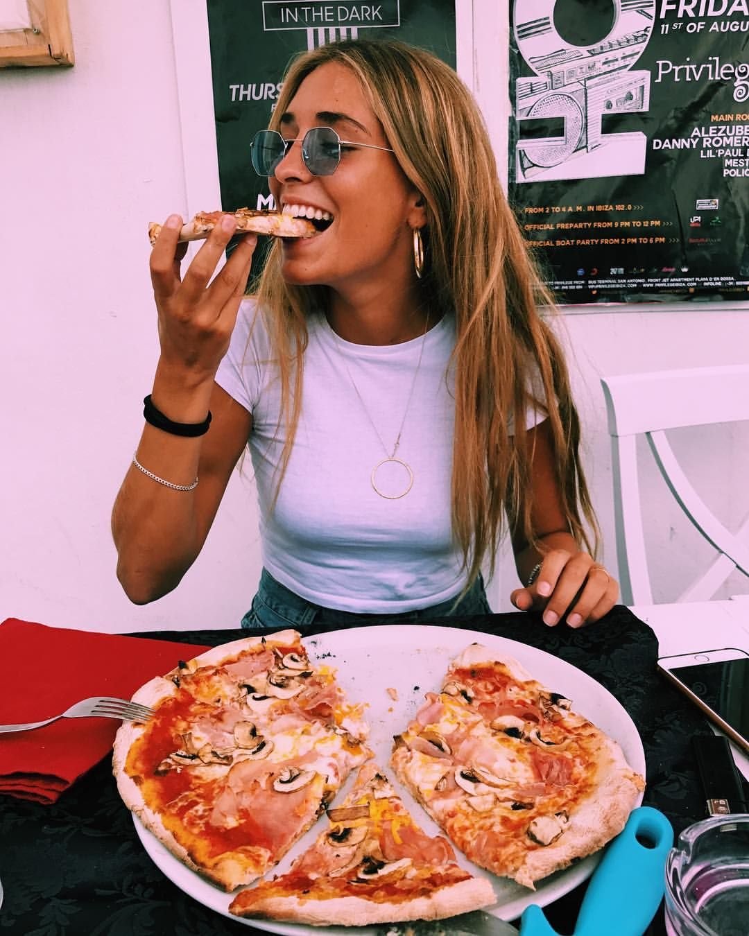 Девушка ест пиццу