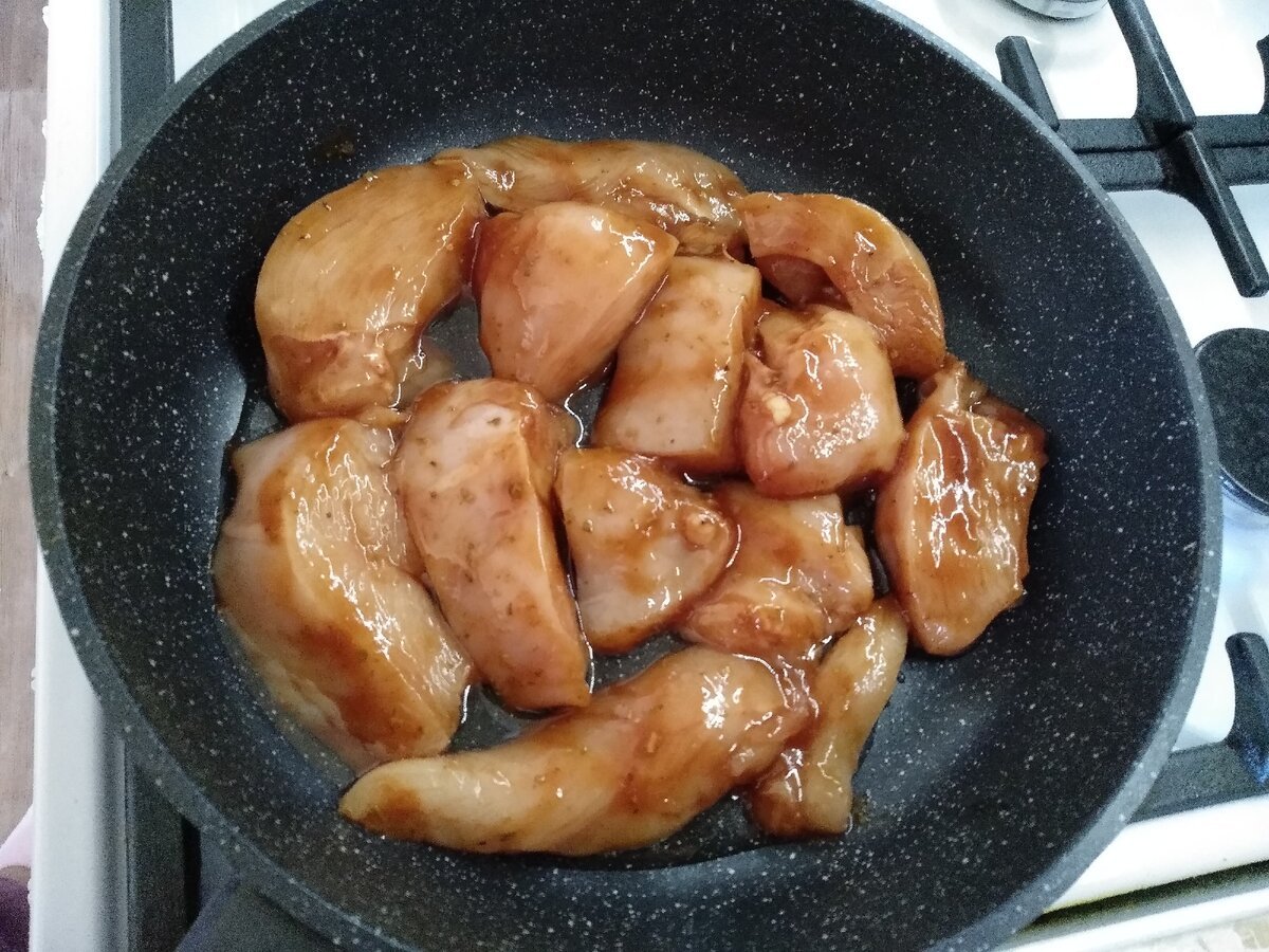 Куриная грудка в соевом соусе на сковороде