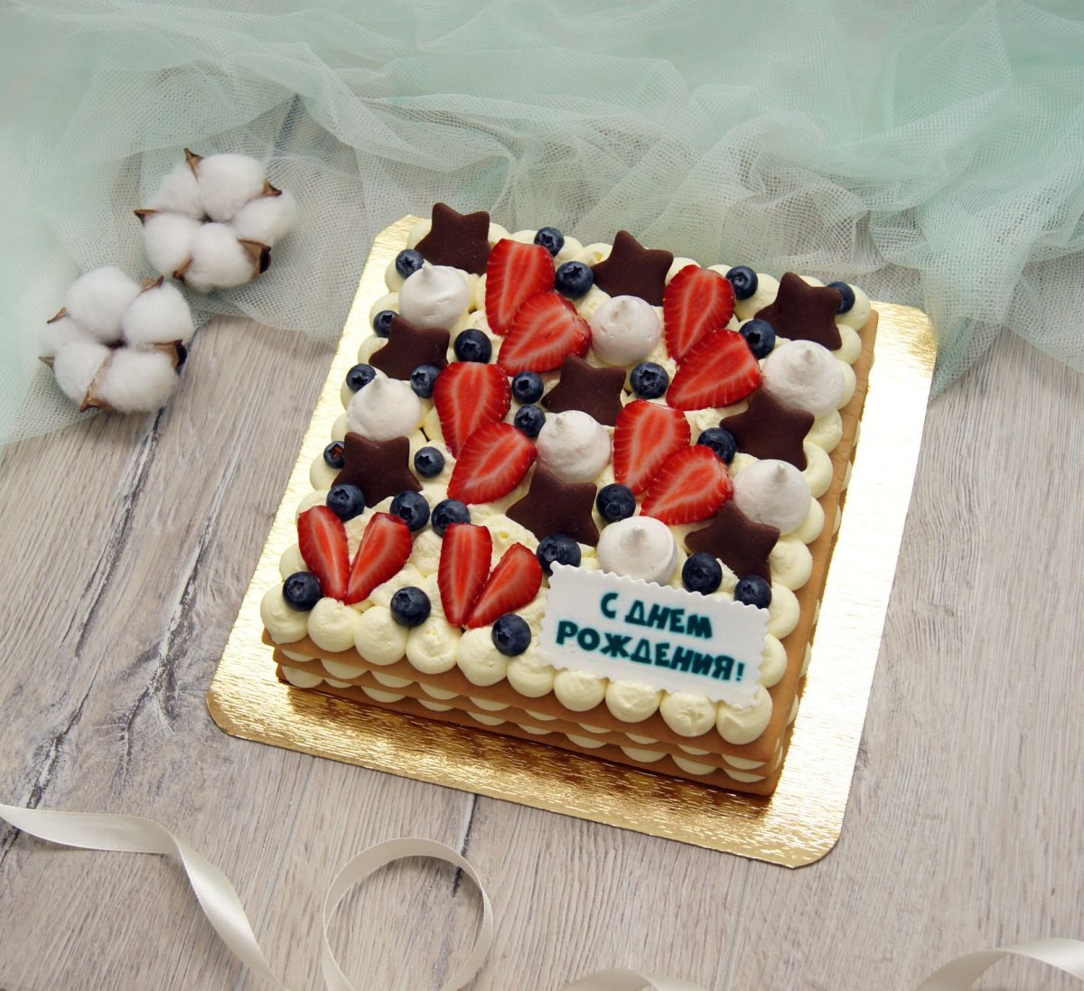 Торт квадратный с фруктами