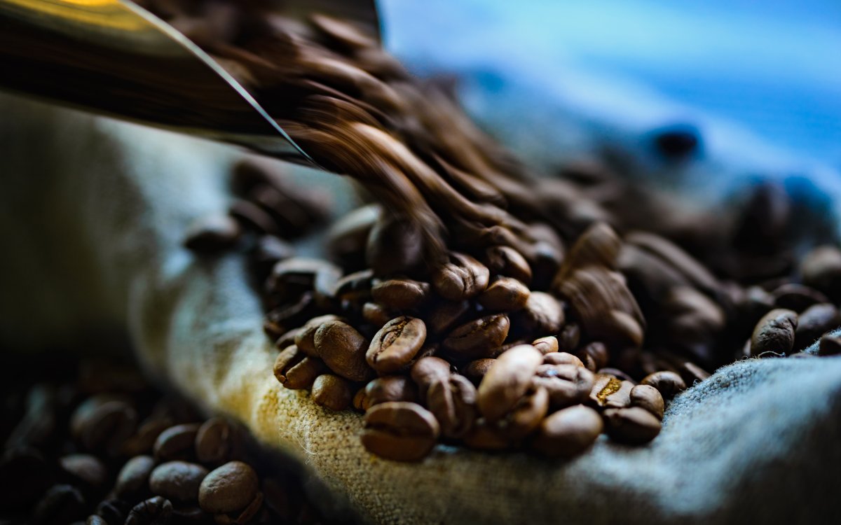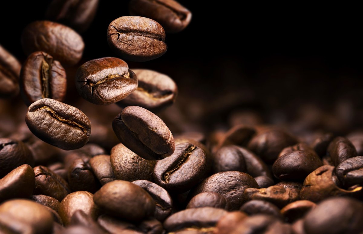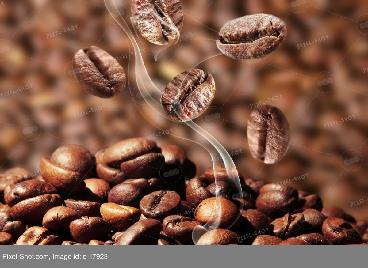 Зерна кофе падают