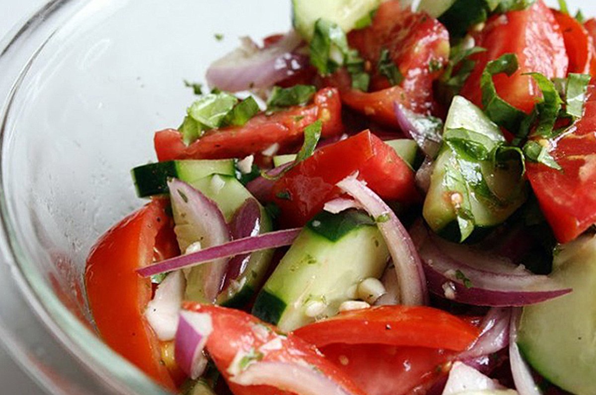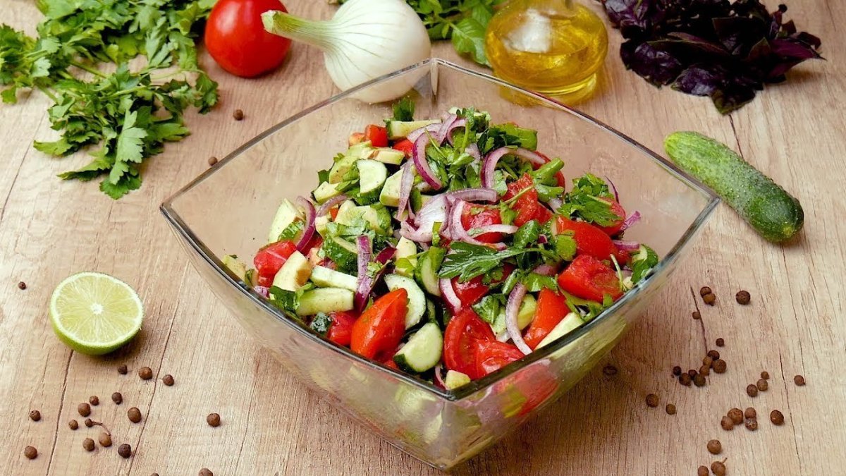 Салат огурцы помидоры лук